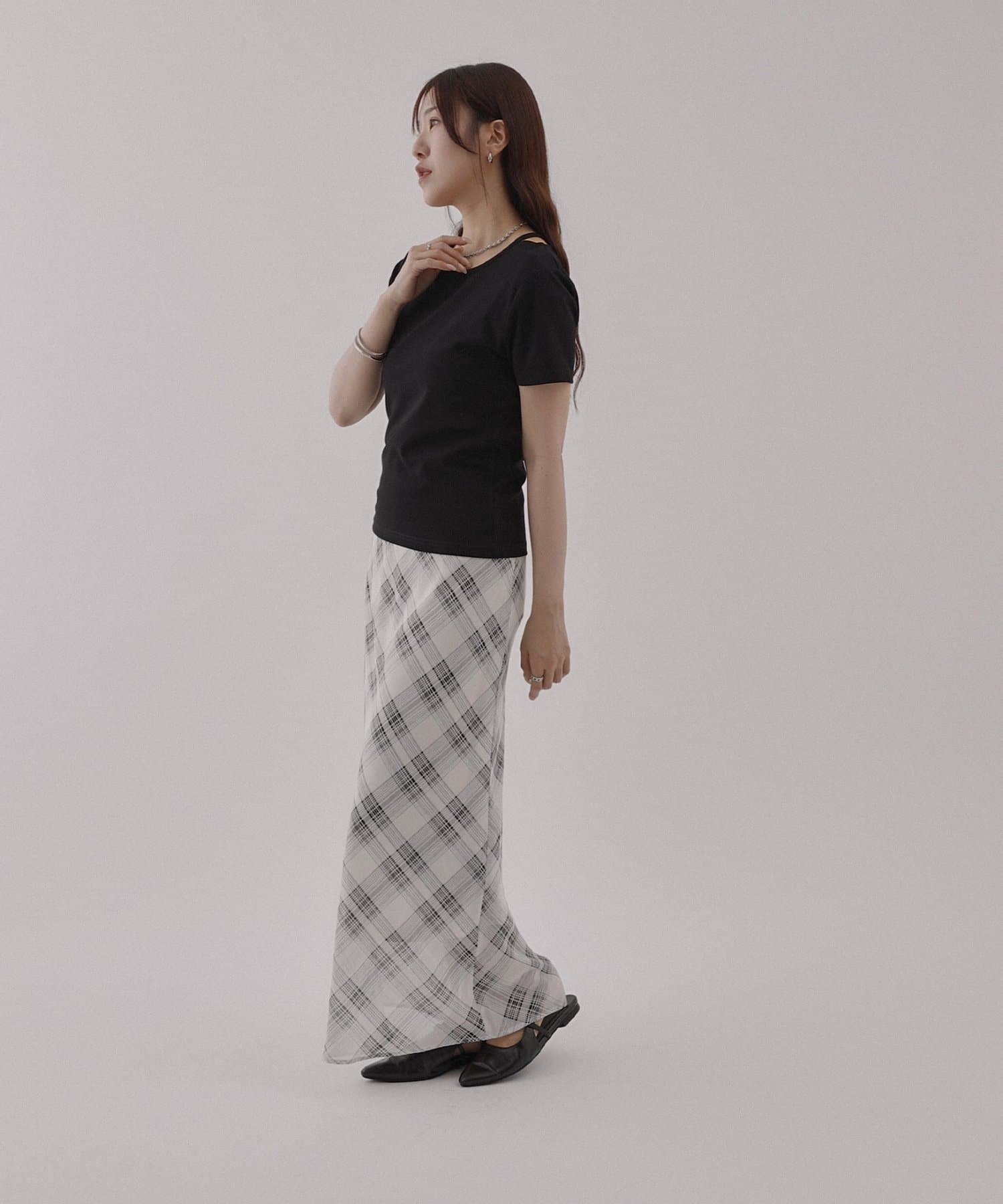 ストレスフリーな着心地で合わせられます。