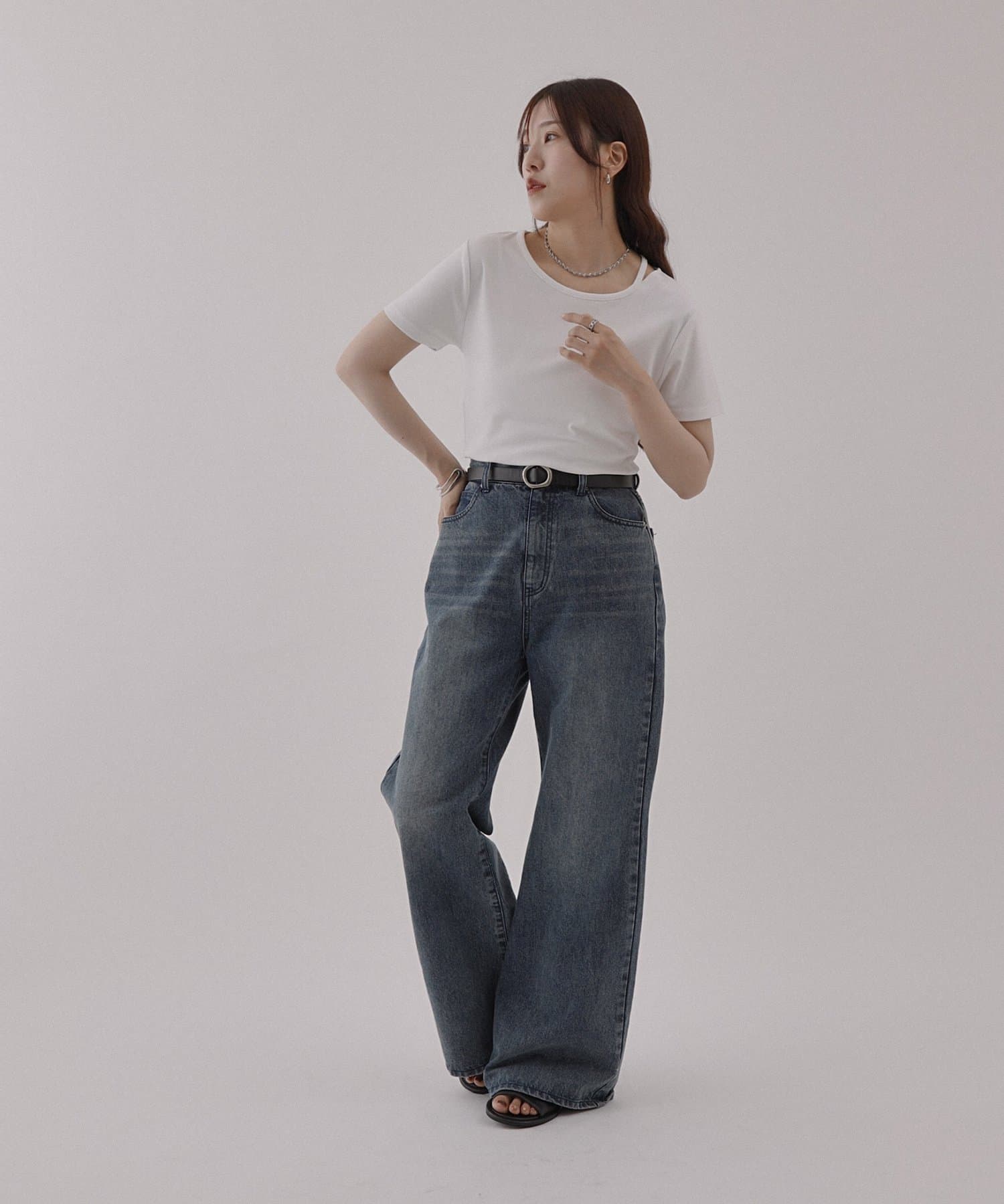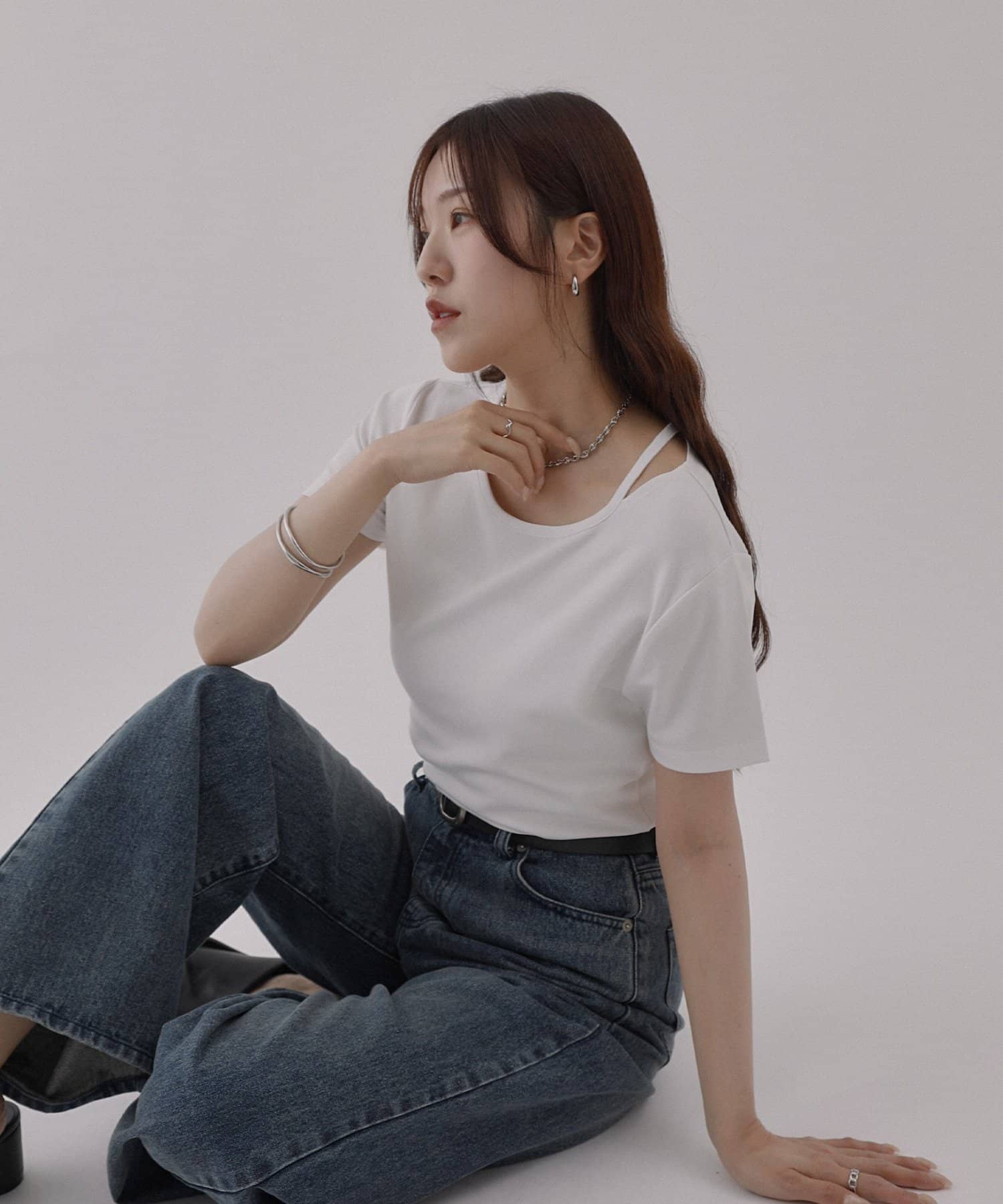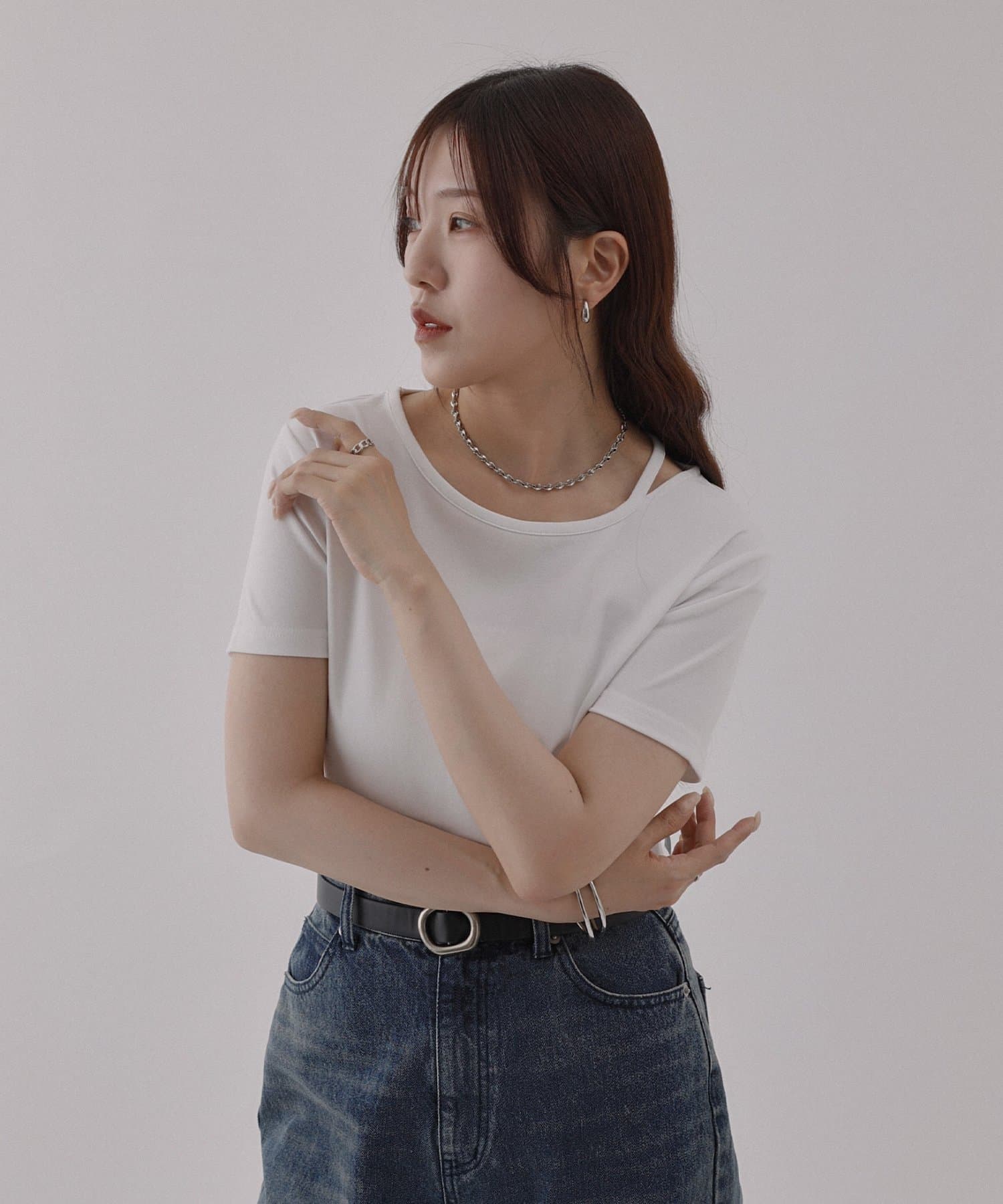 ・首元のスリットで抜け感をプラス