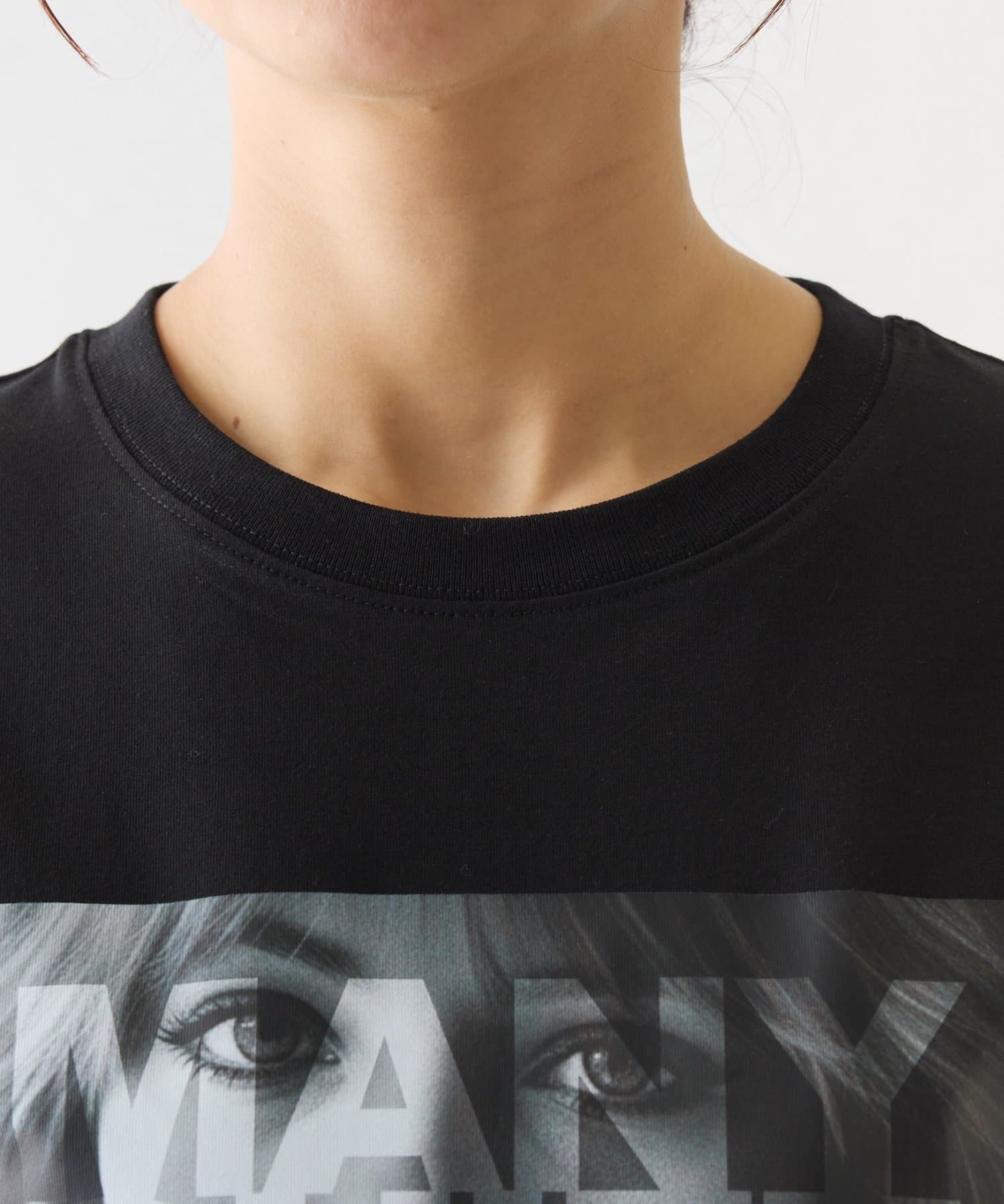 フロントに施されたMANYQUIETのロゴのプリントデザインが特徴的なTシャツです。