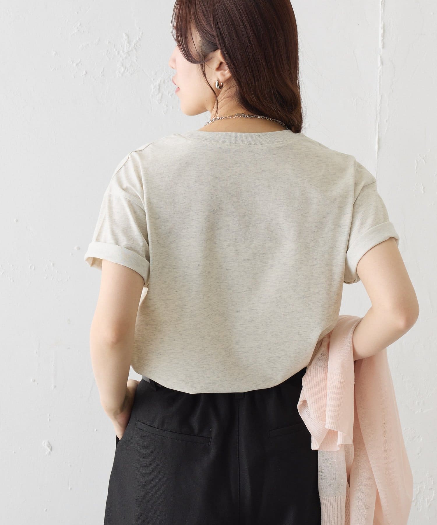 首元はクルーネックデザインなので、顔周りをすっきりと見せることができます。