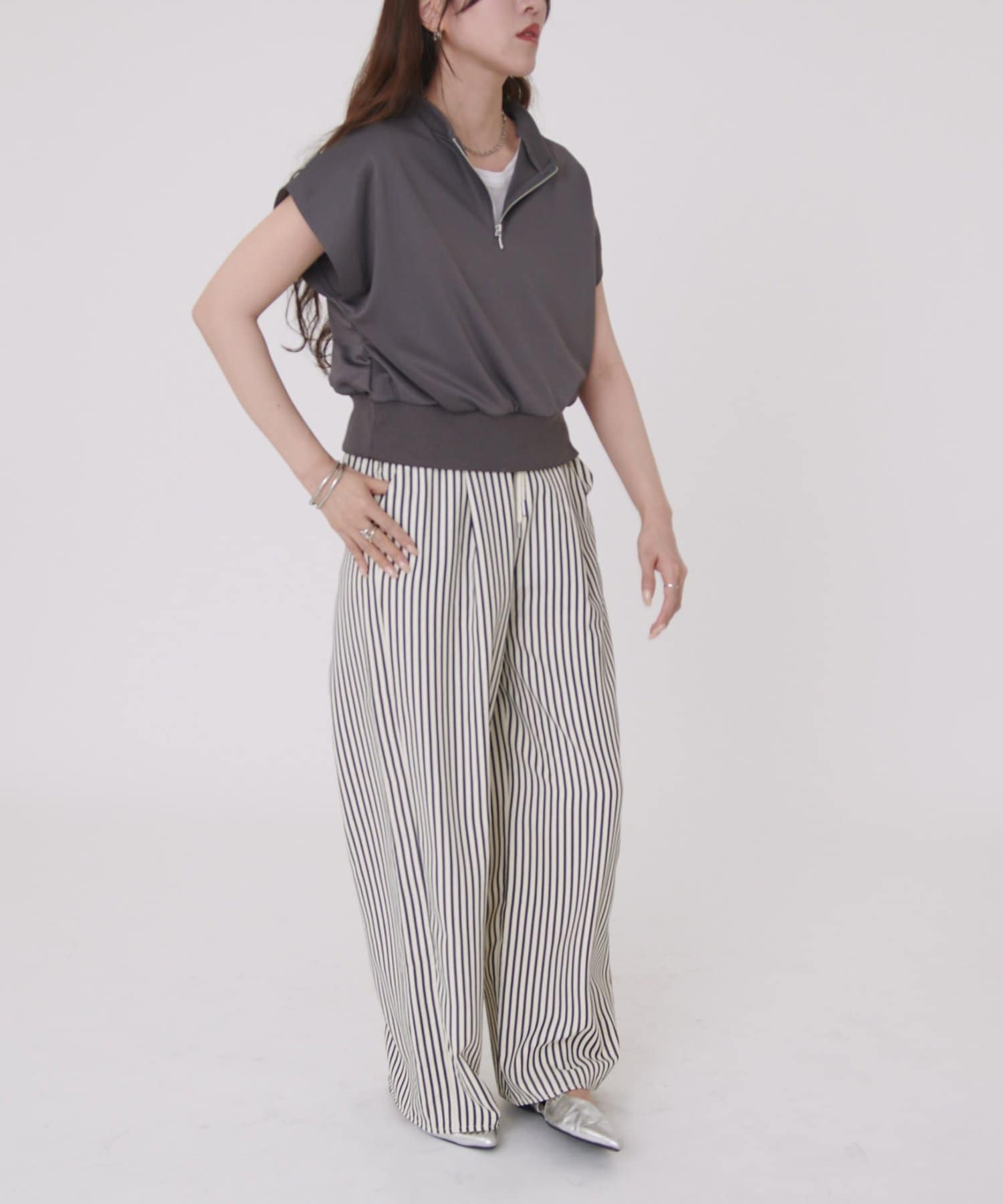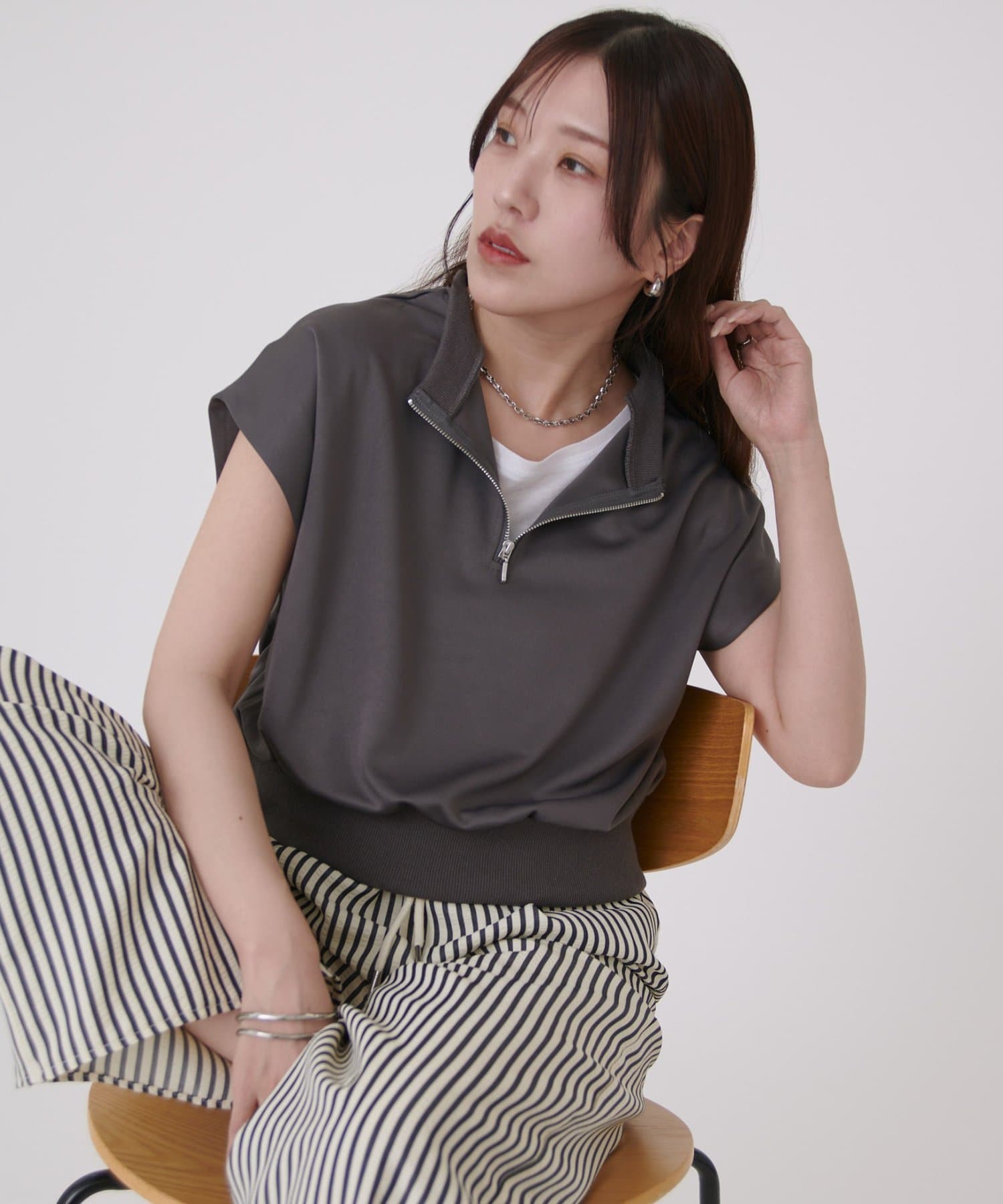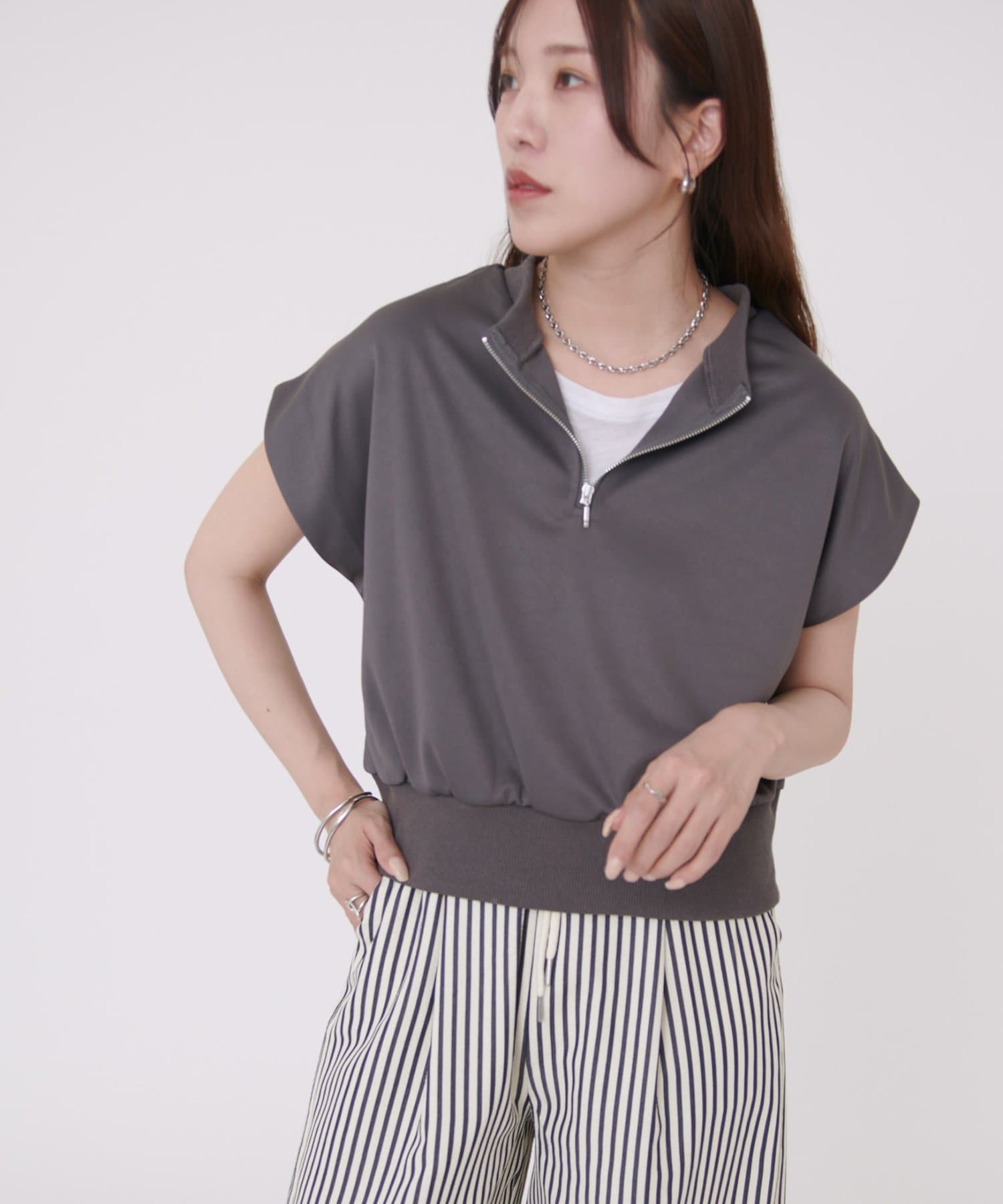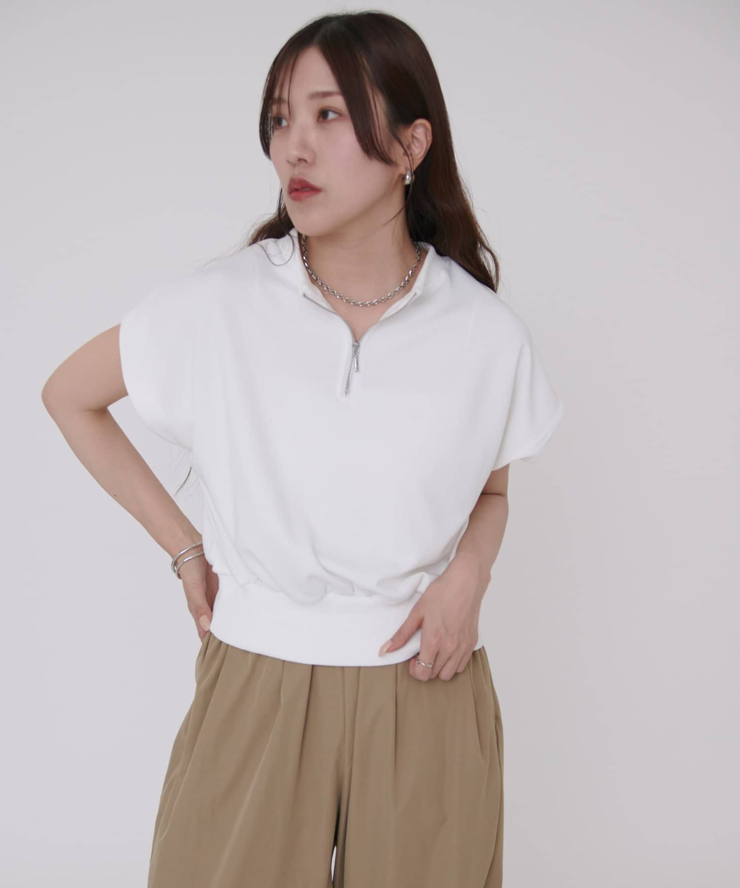 【WEB限定】2WAYフレンチスリーブZIP付トップス