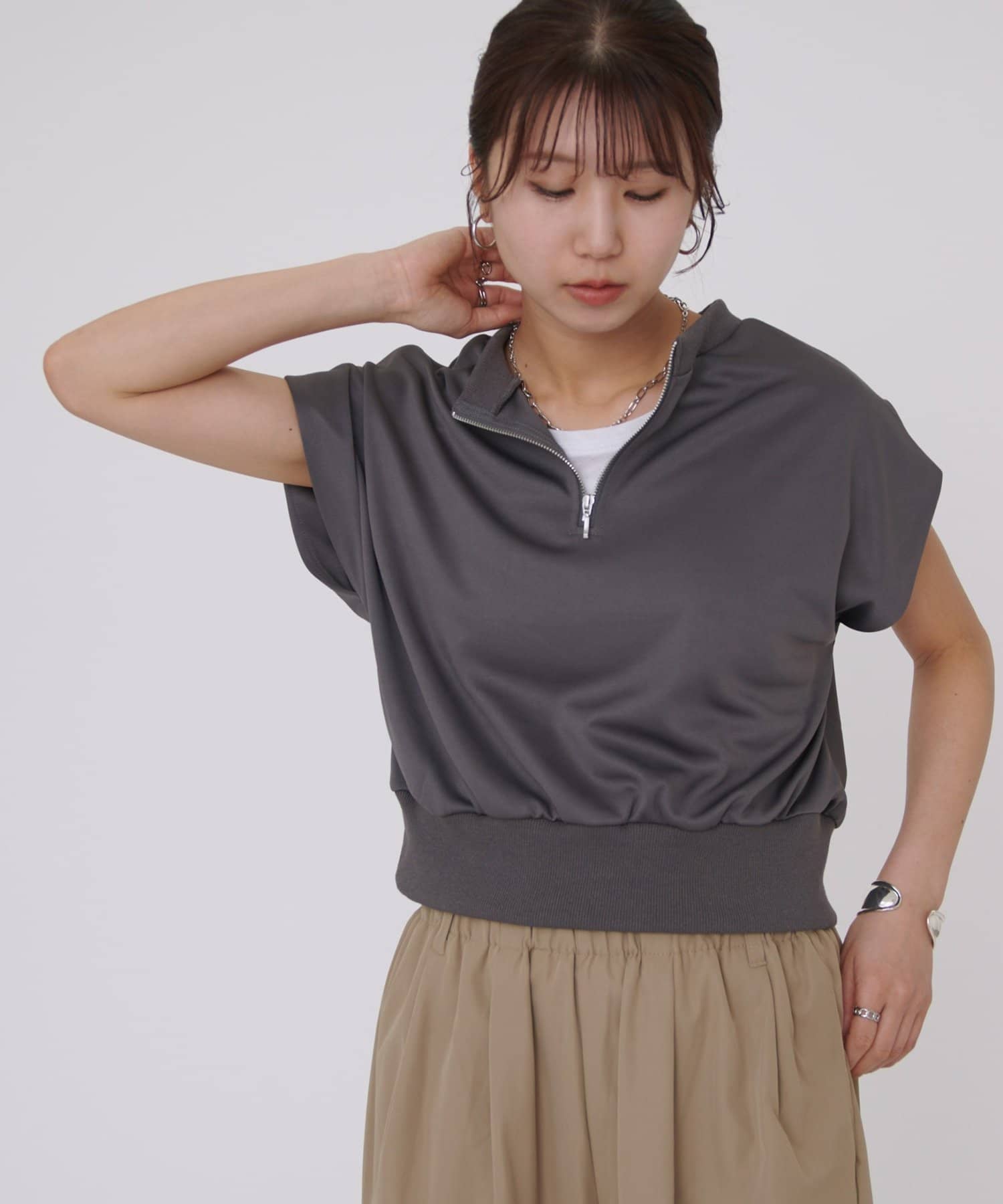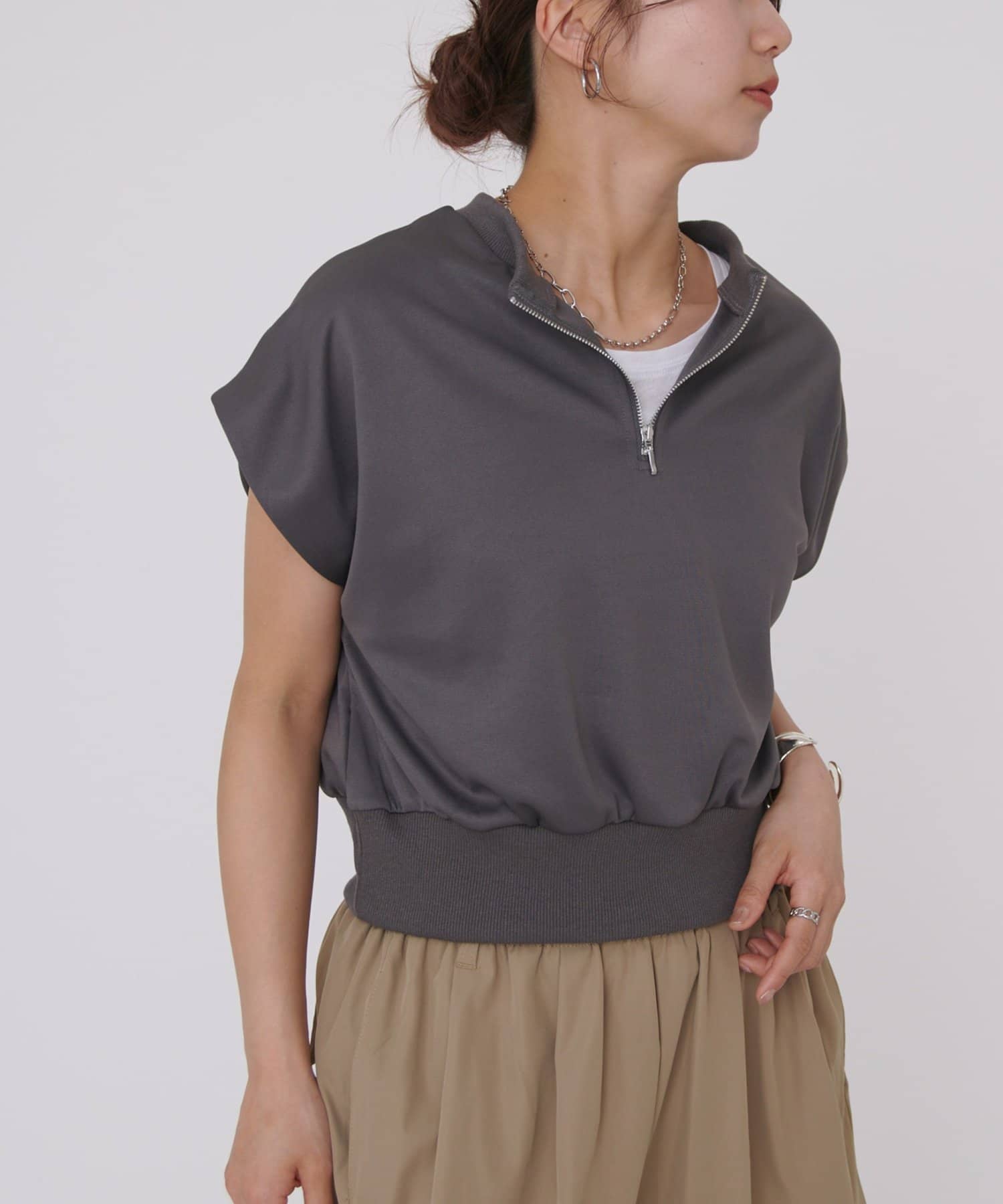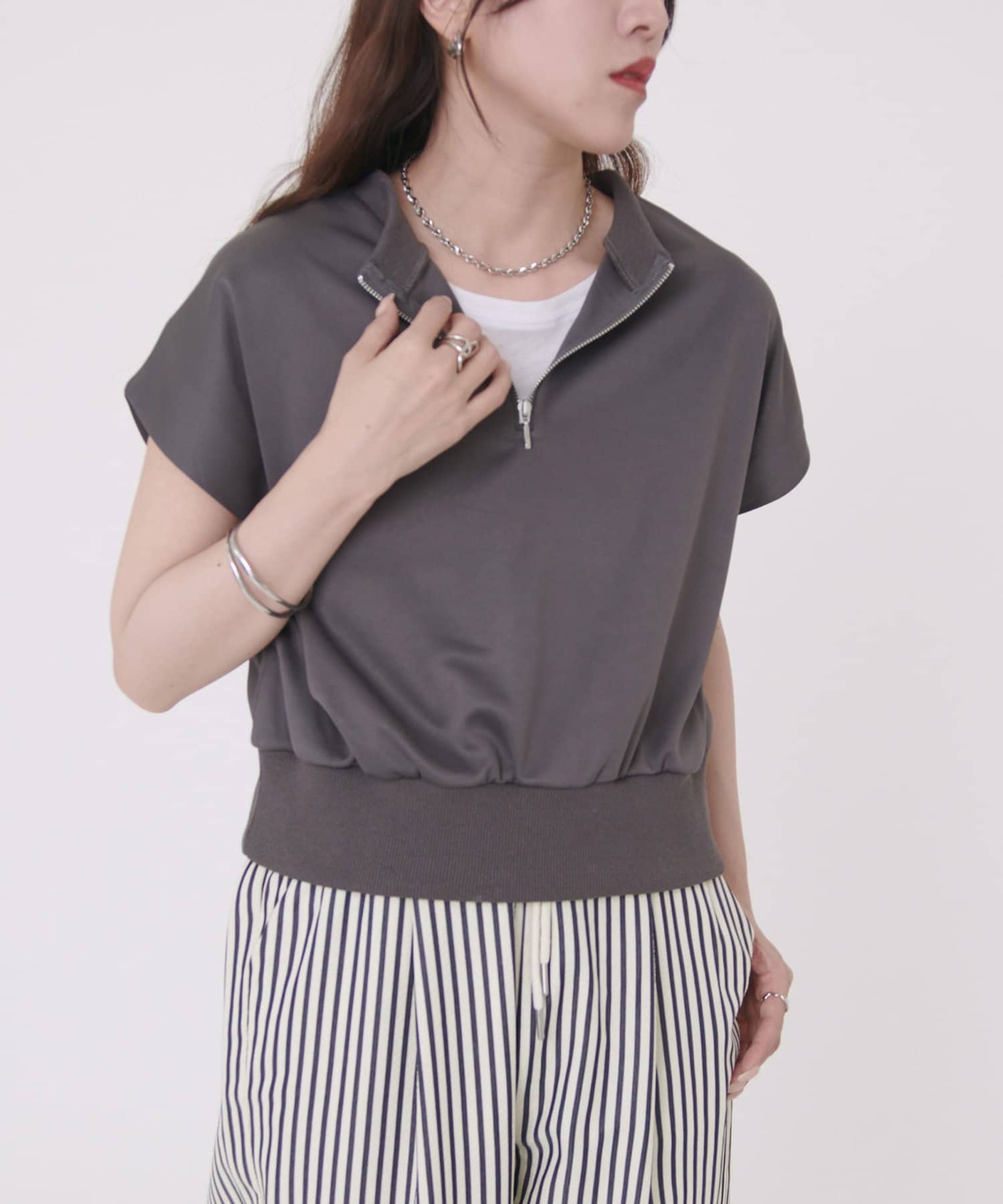 前後2WAYで使えるハーフジップフレンチスリーブトップスです。