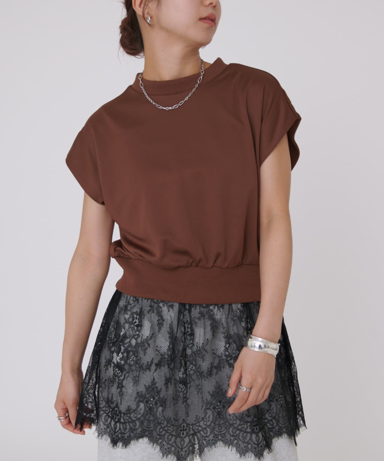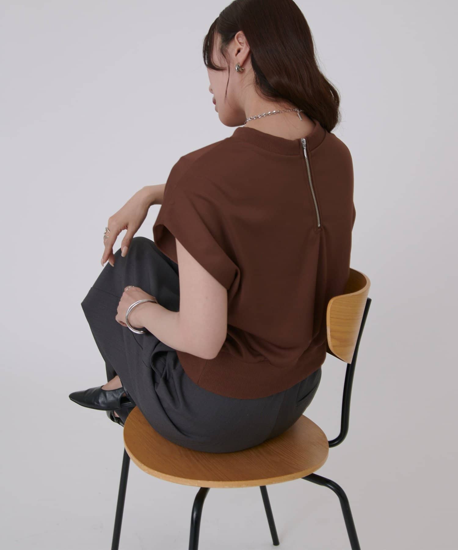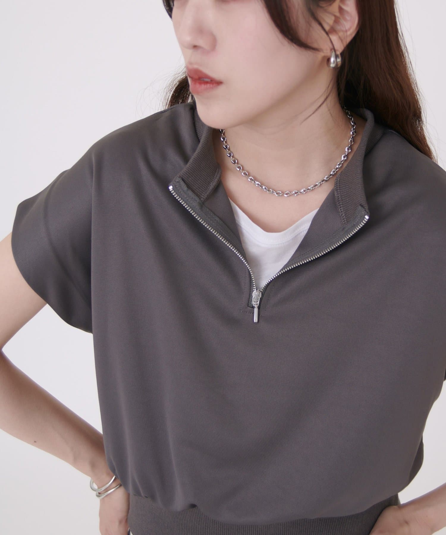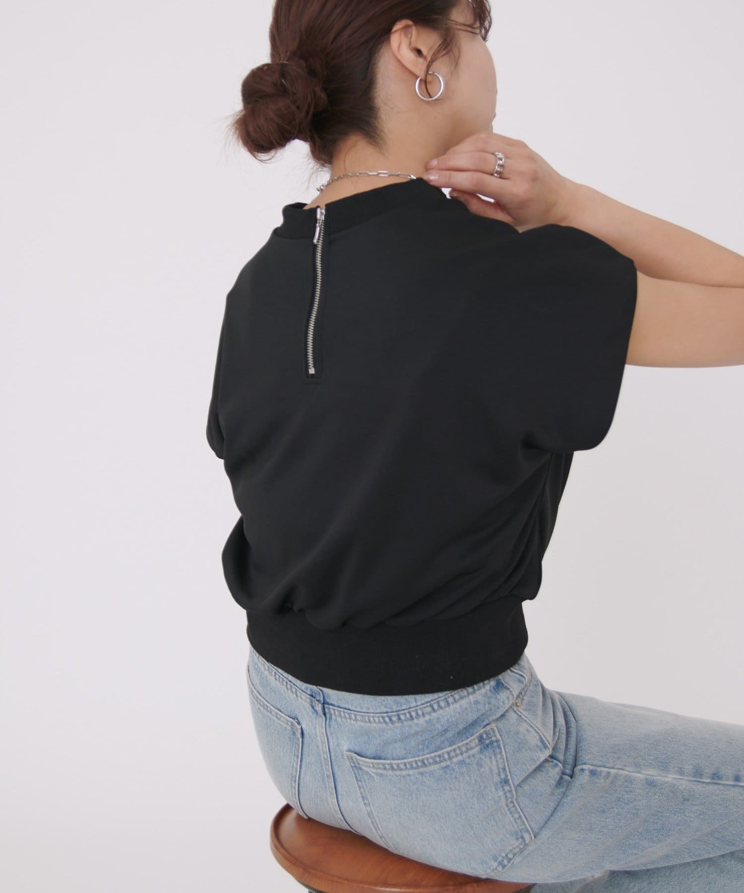 前後2WAYで使えるハーフジップフレンチスリーブトップスです。