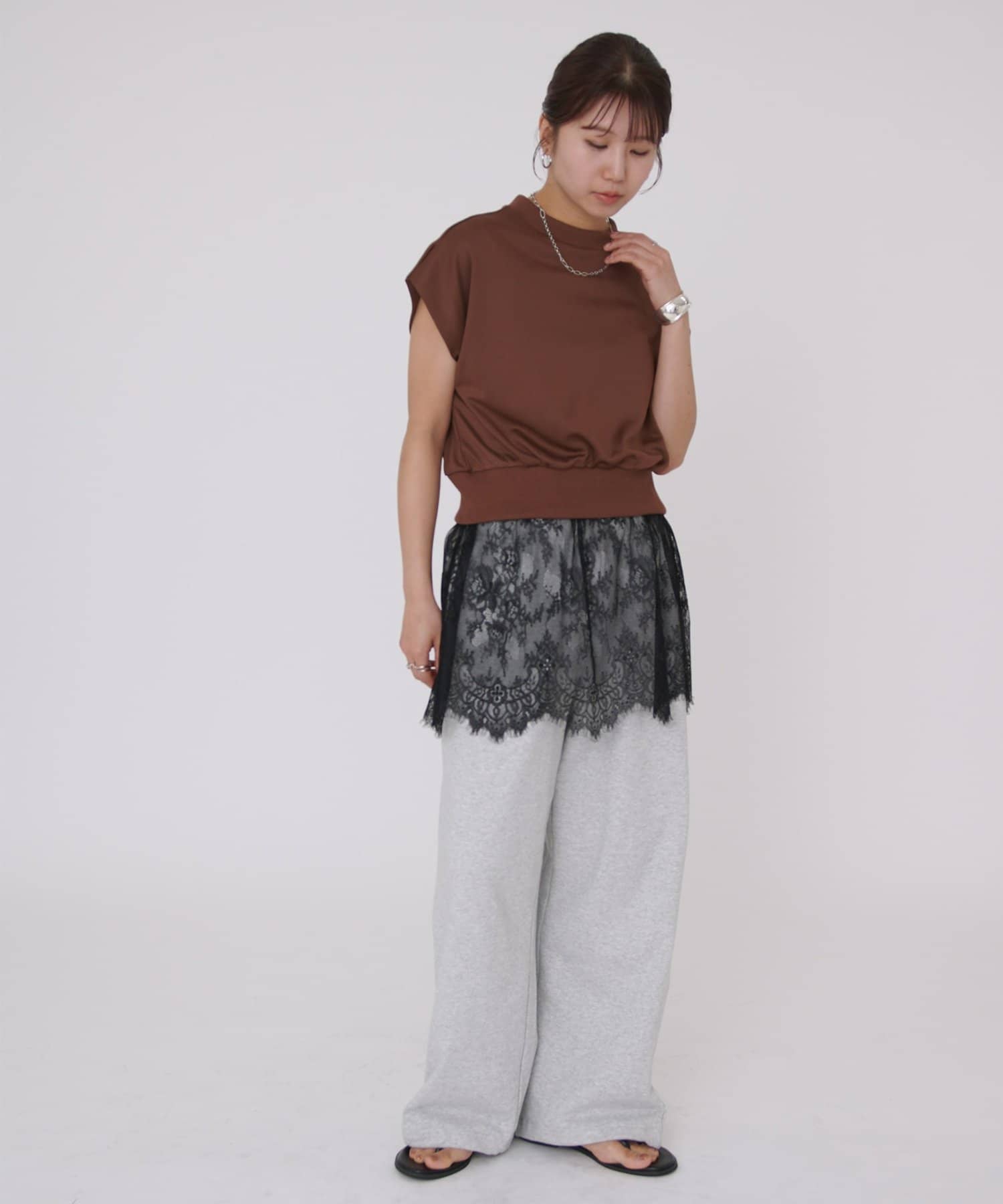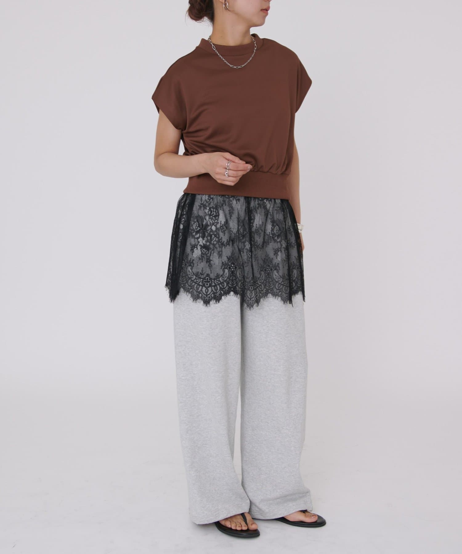 裾の太めのリブ切り替えがアクセントになっていて、着るとふんわりとしたシルエットになる点もかわいいアイテム。