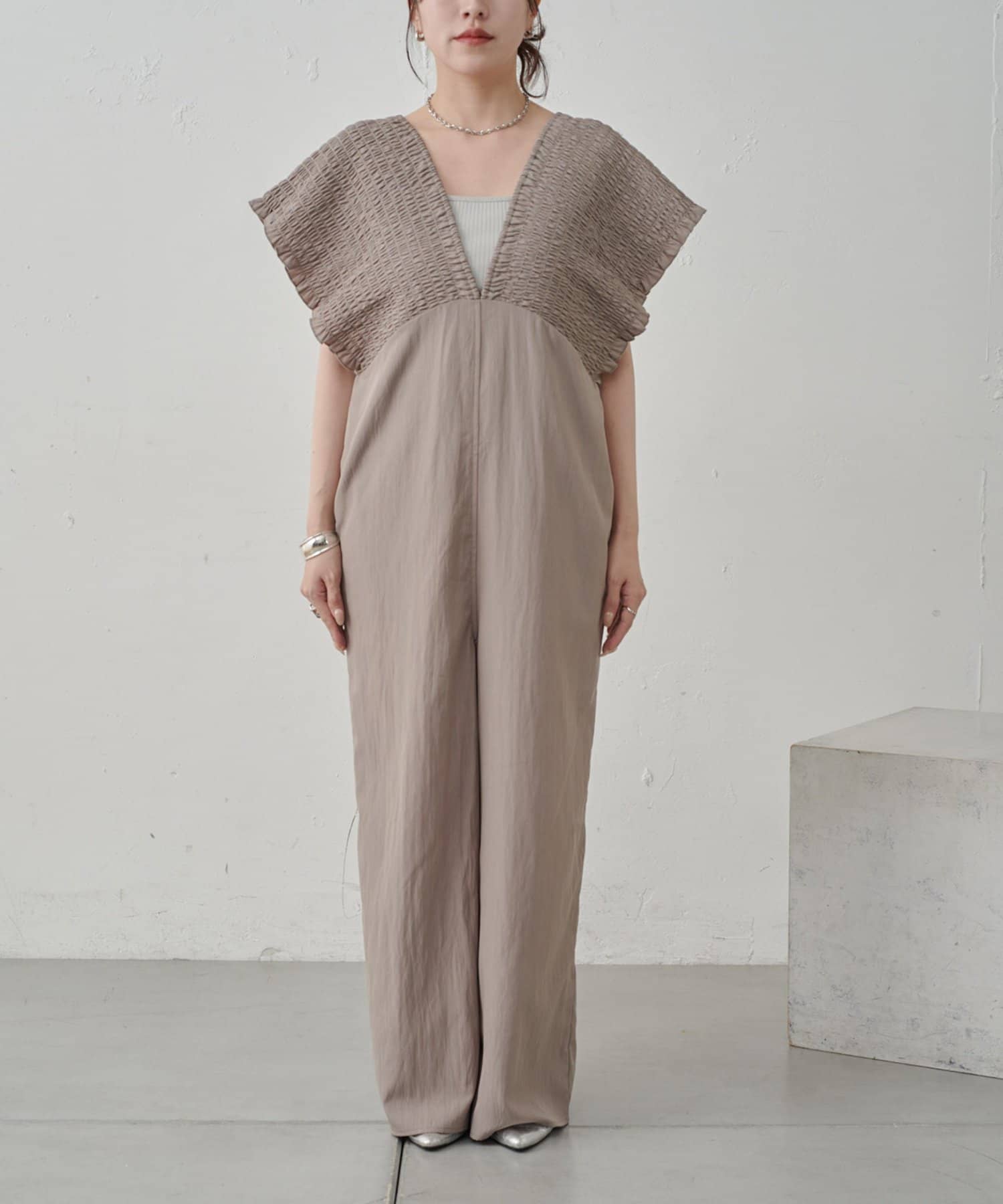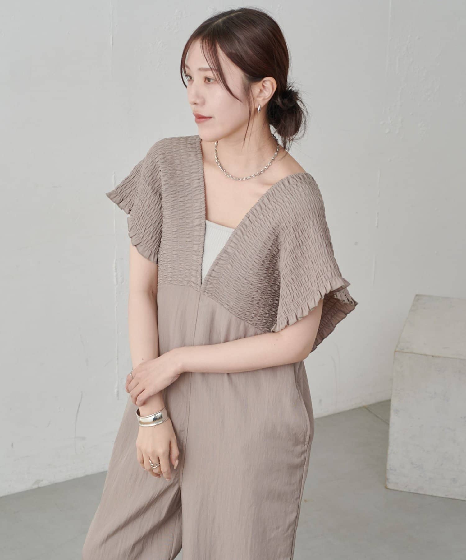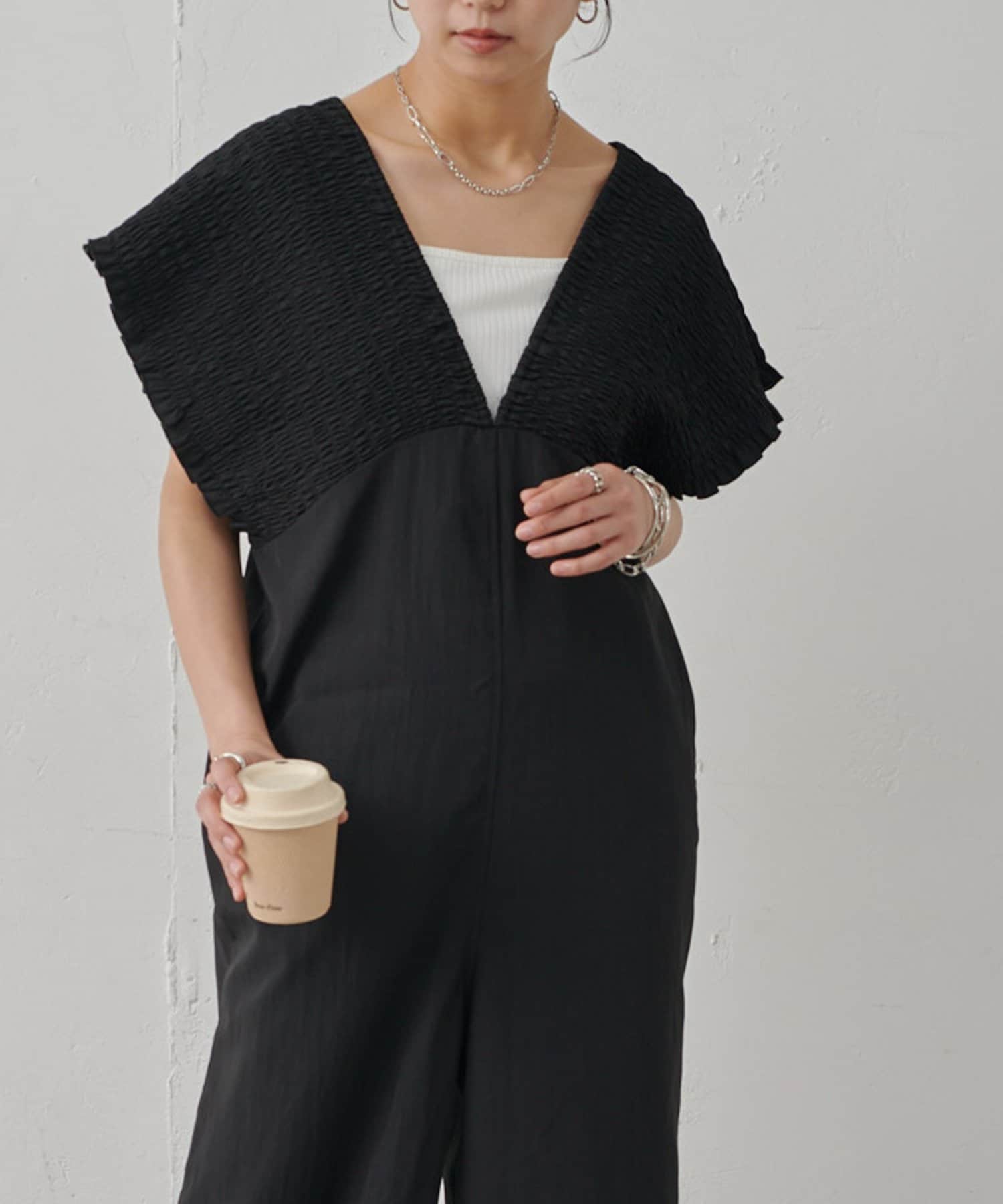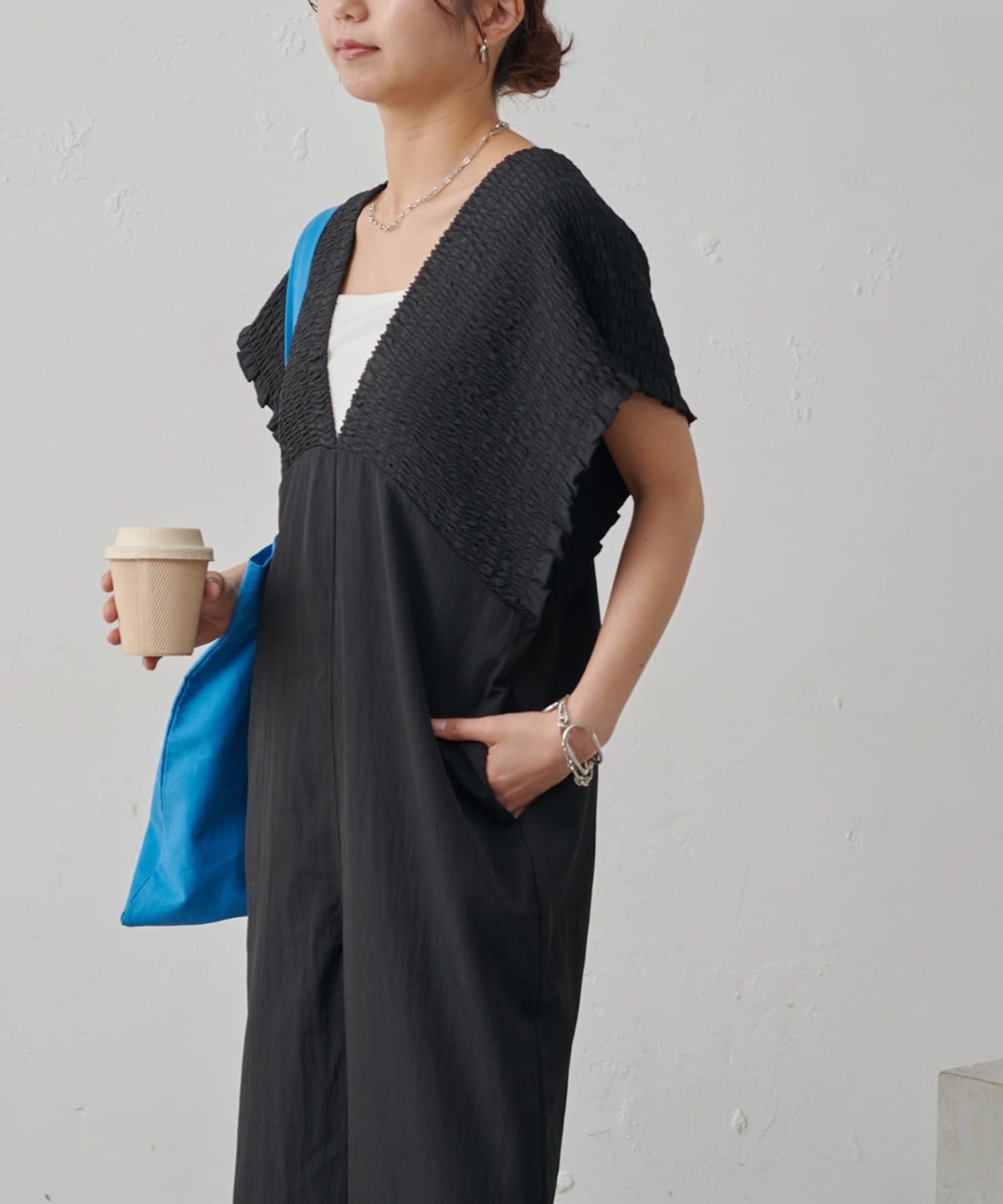 さっと着るだけでこなれ見えなオシャレコーデが完成する切り替えデザインが魅力のオールインワンです。