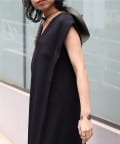 両肩に入ったタックで肩周りにゆとりができ、自然に肩のラインをカバーし上半身を華奢に見せる効果が期待できます。