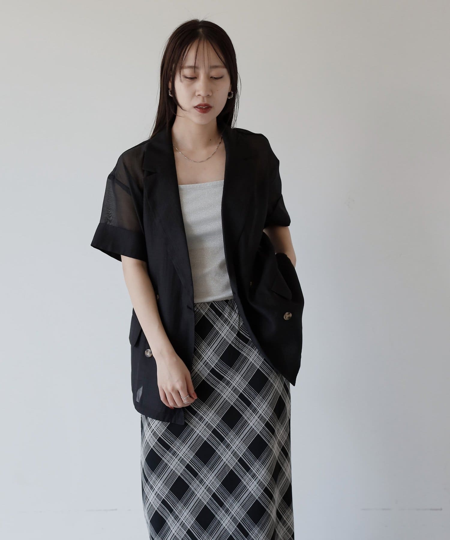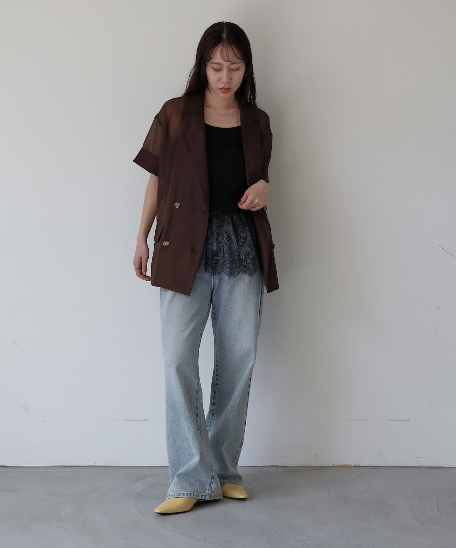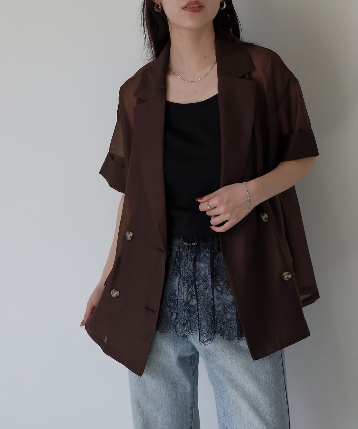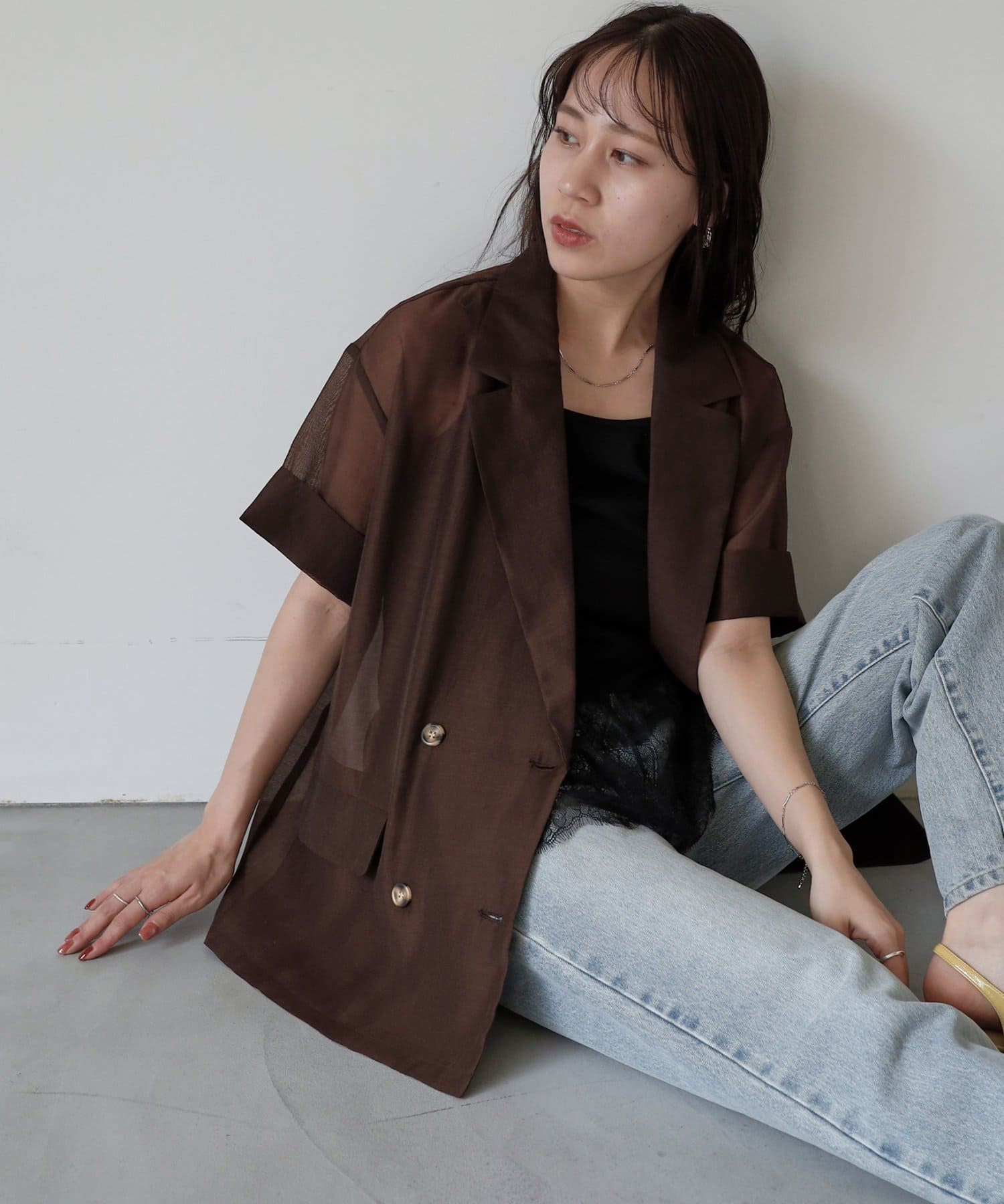 程よい透け感とキレイめシルエットが絶妙なシアージャケットです。