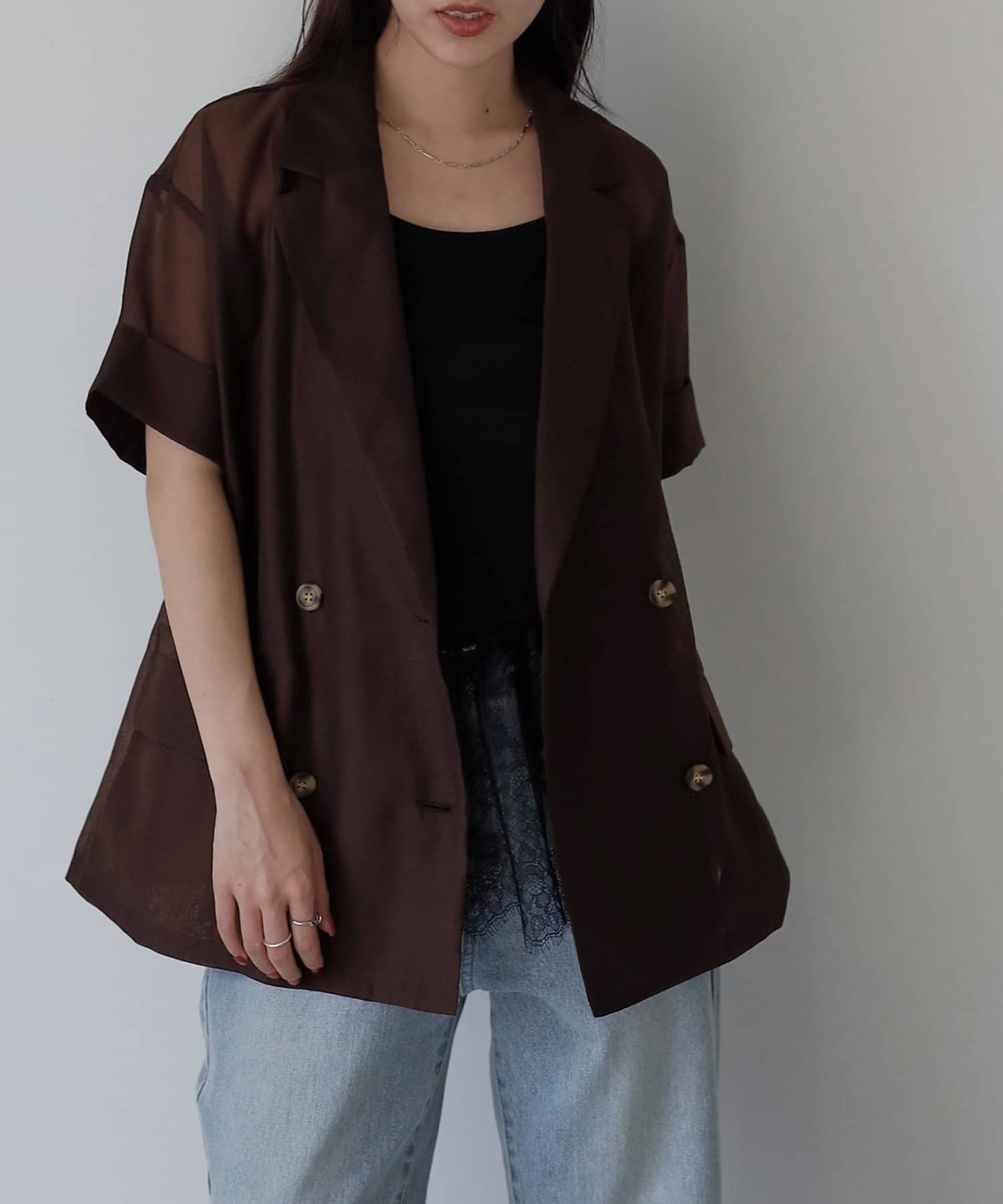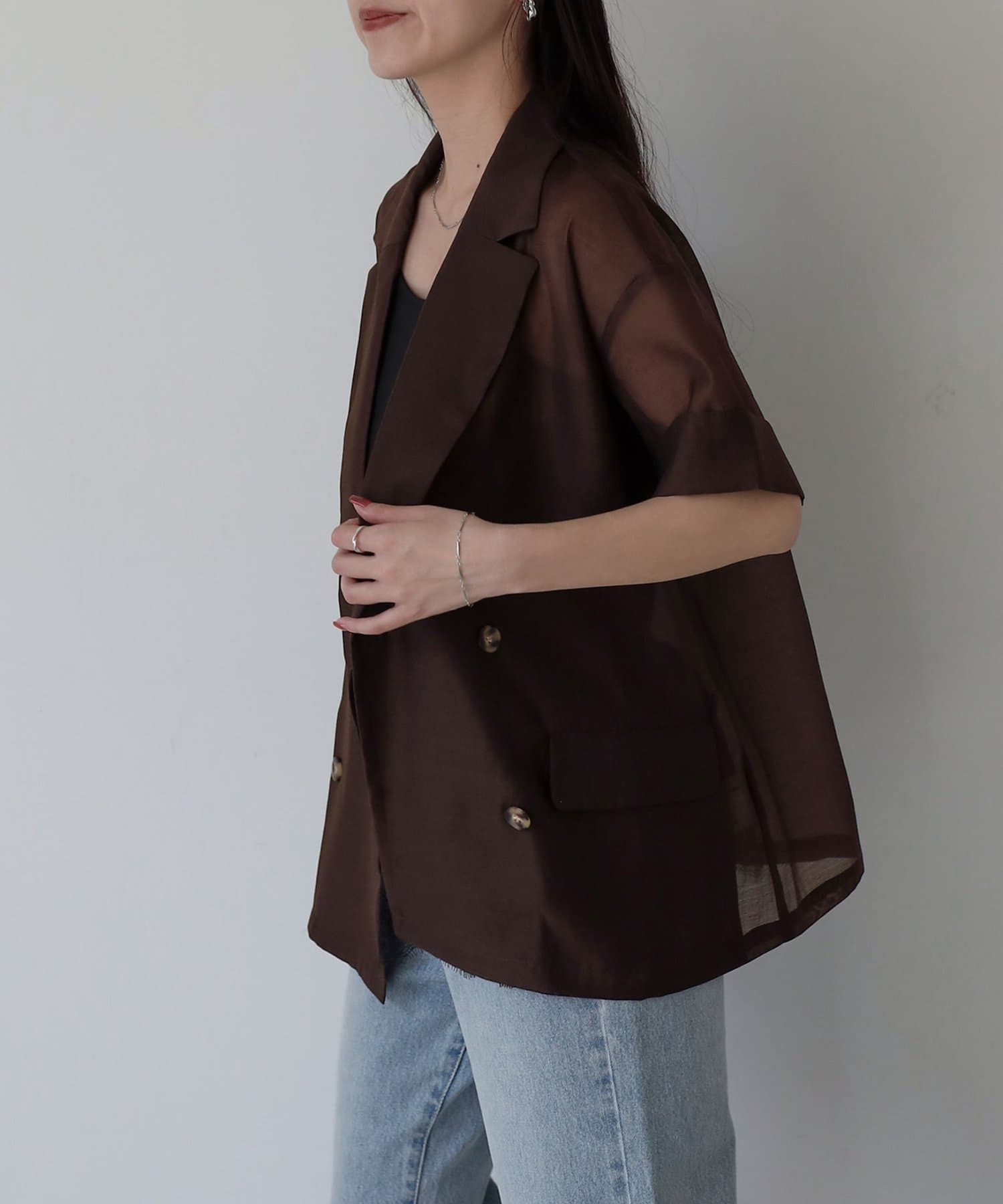 TOP > COLONY 2139 > レディース > トップス > シャツ/ブラウス(ボタン) > シアーエステルボイル半袖テーラードジャケット