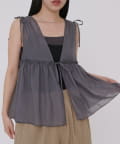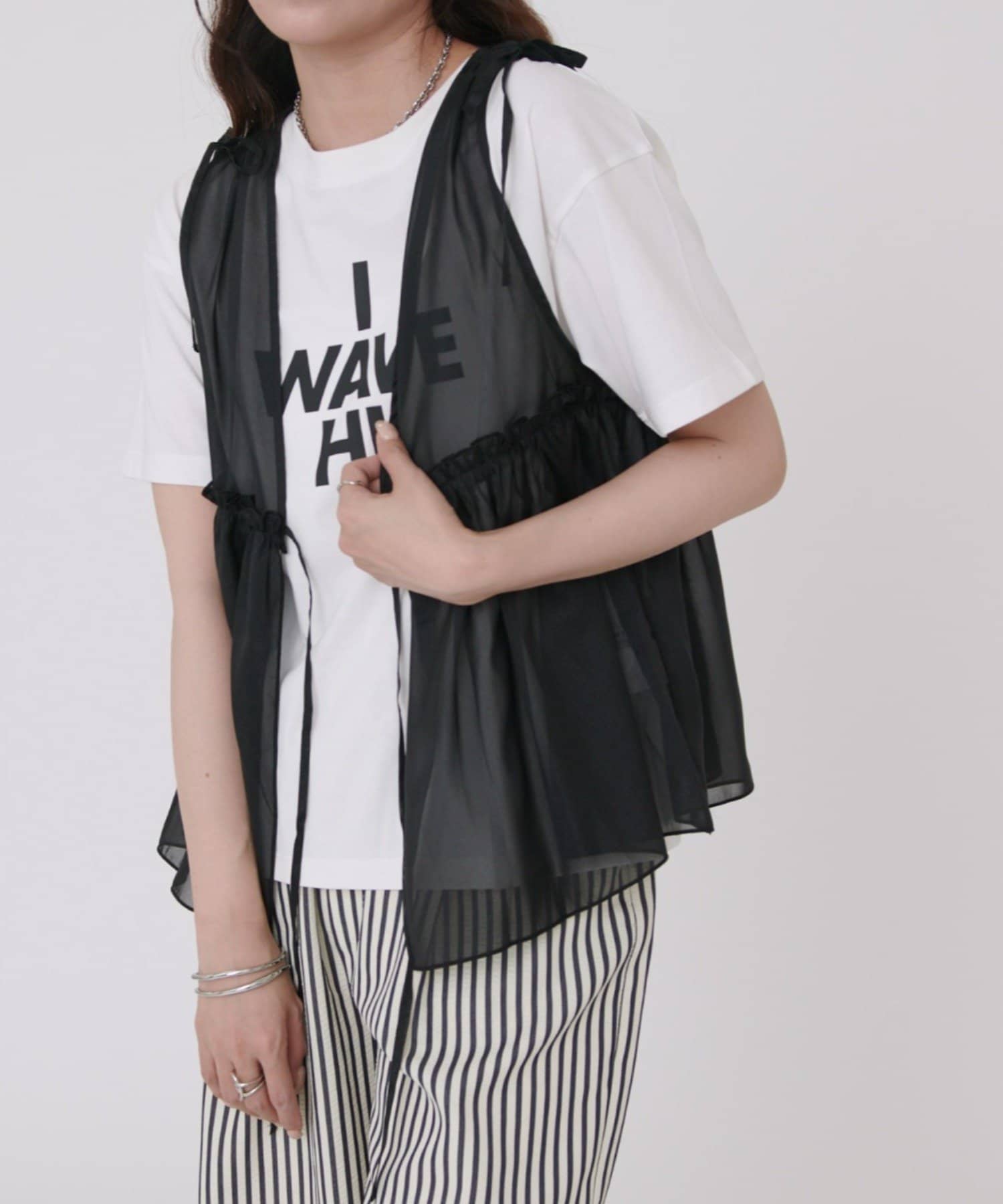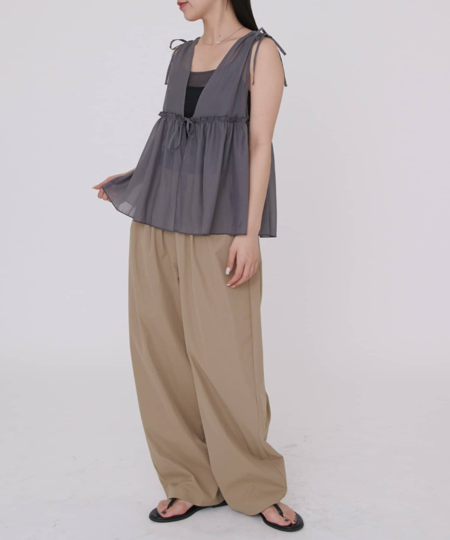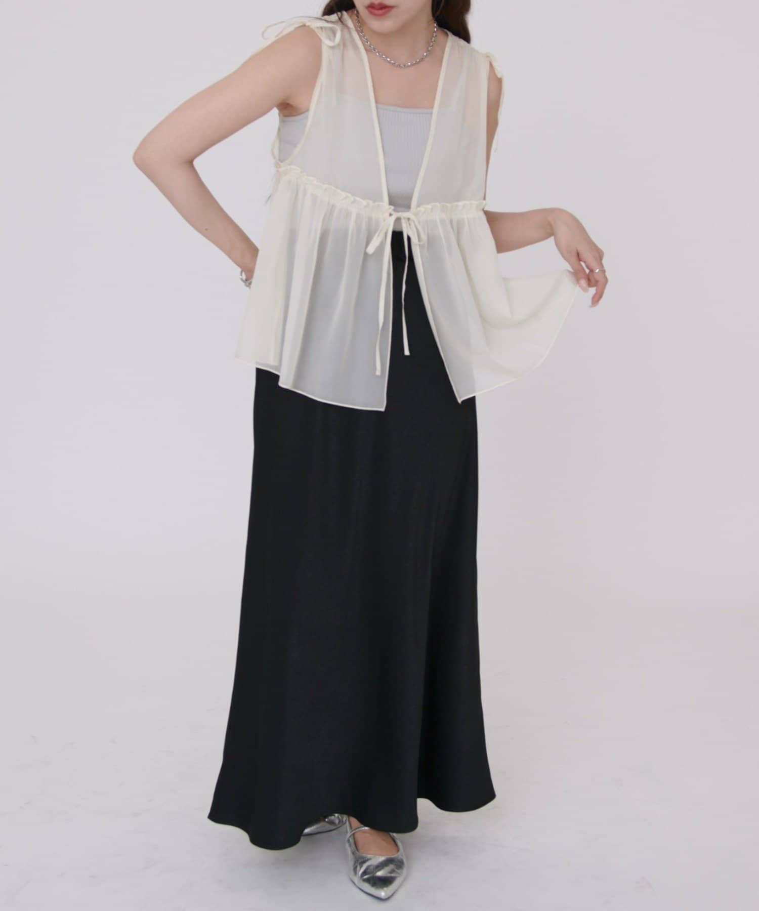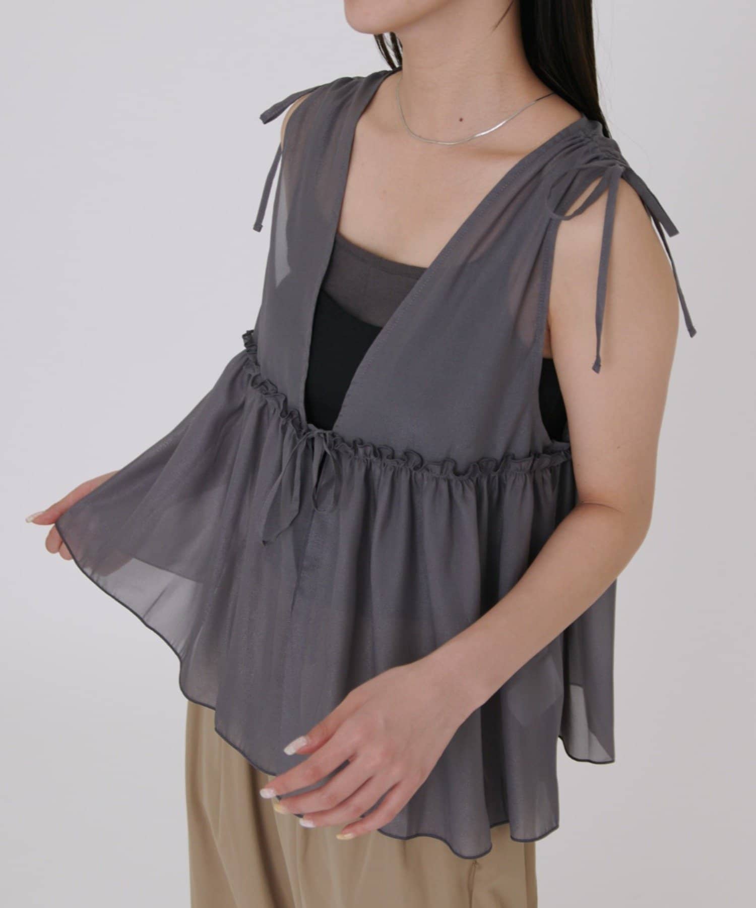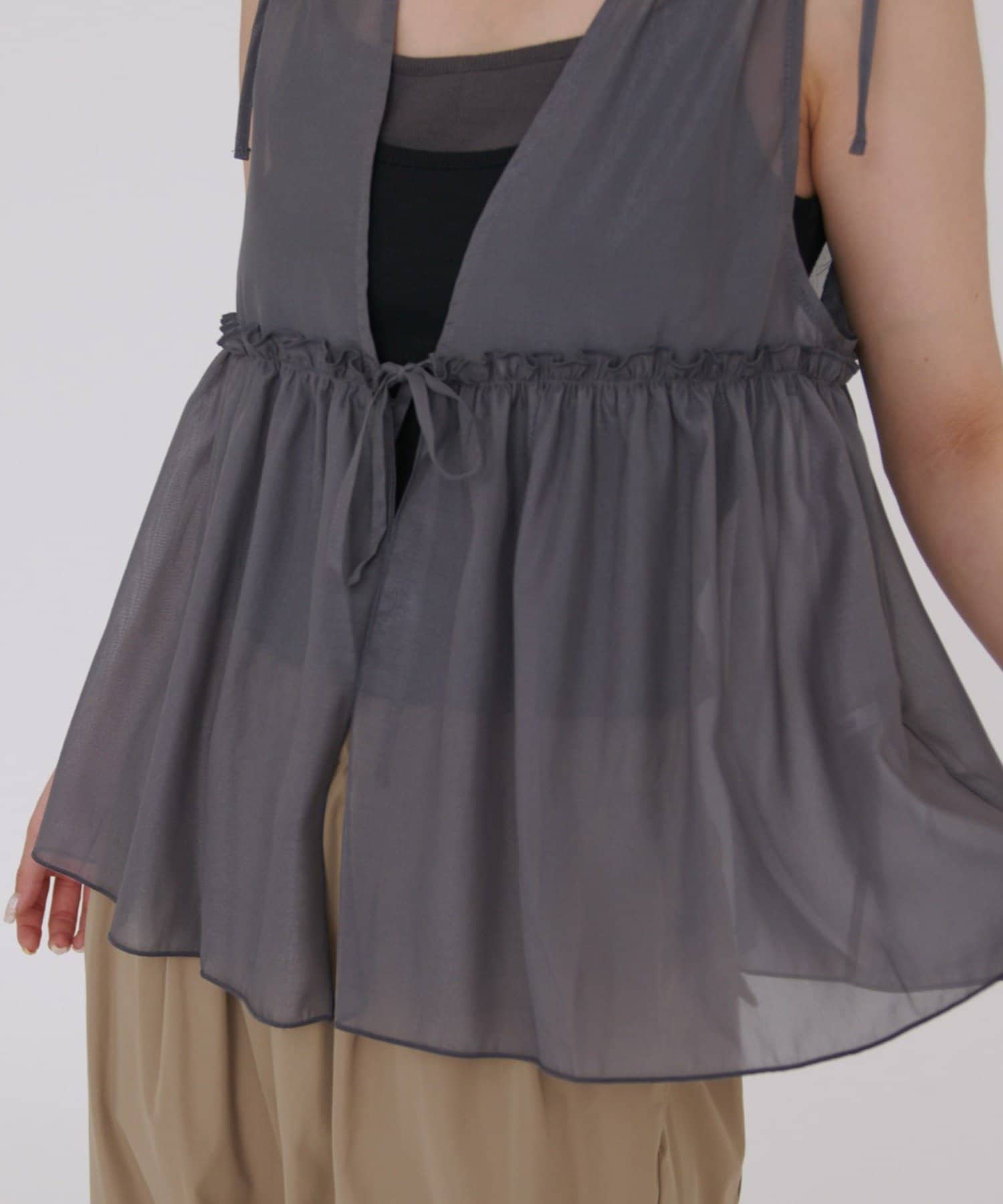 透け感がトレンドライクなシアーギャザーリボンベストです。