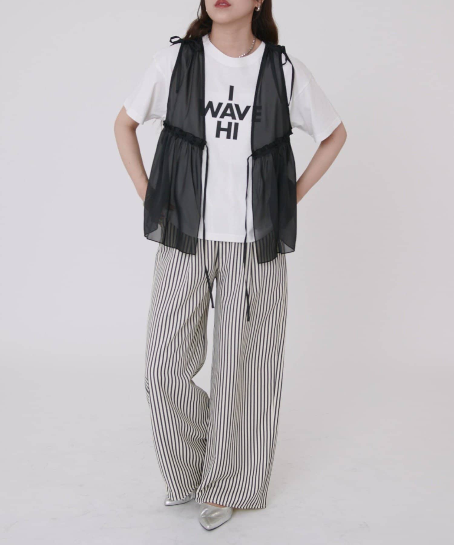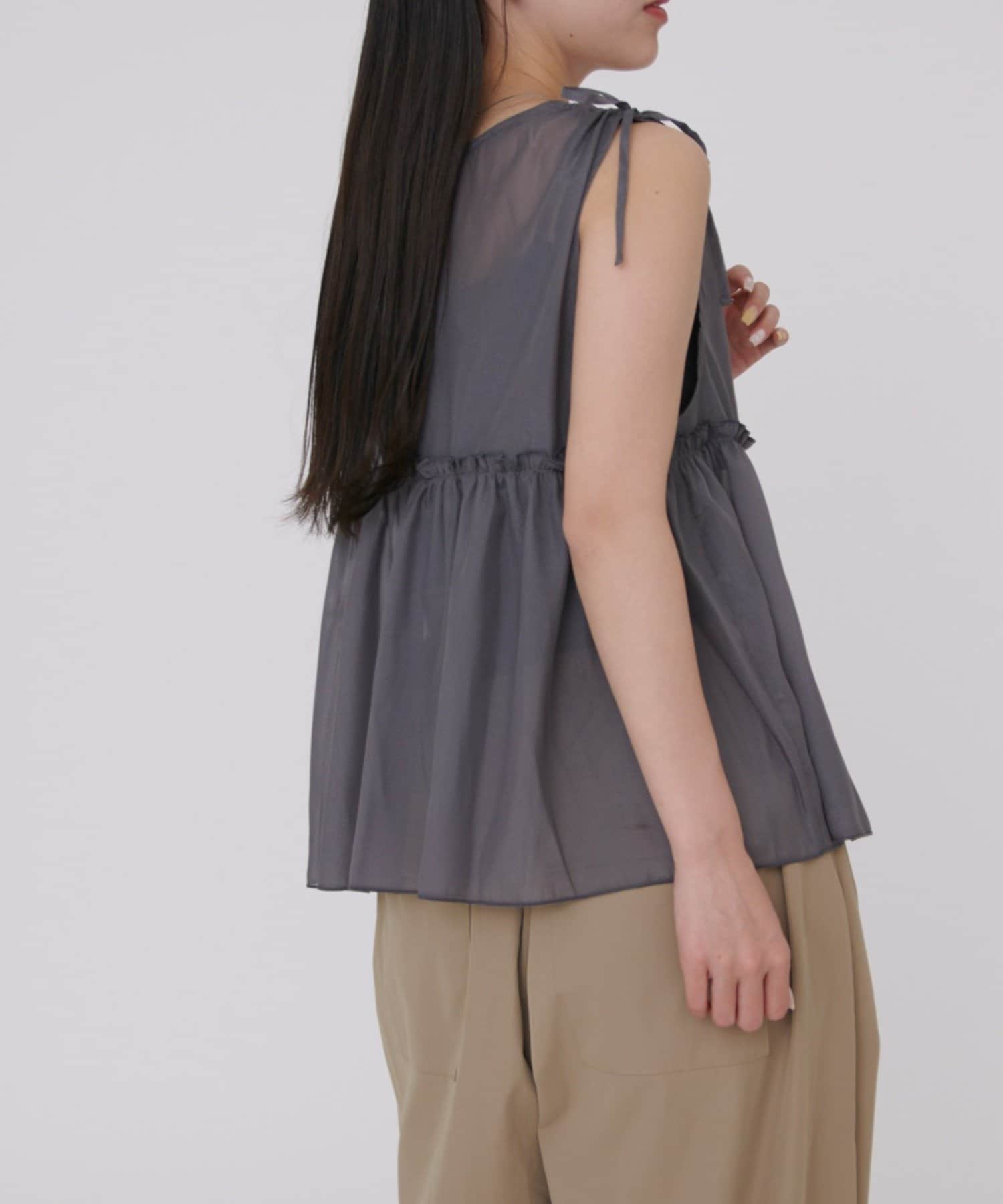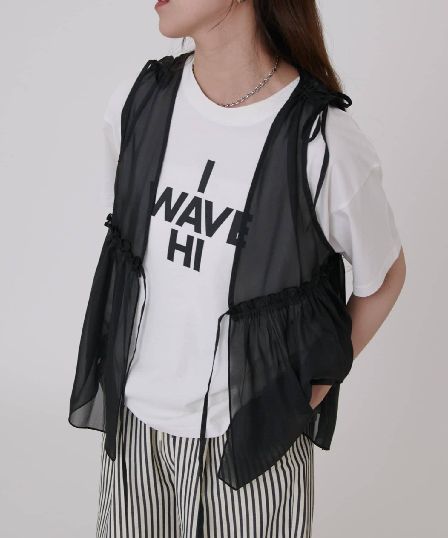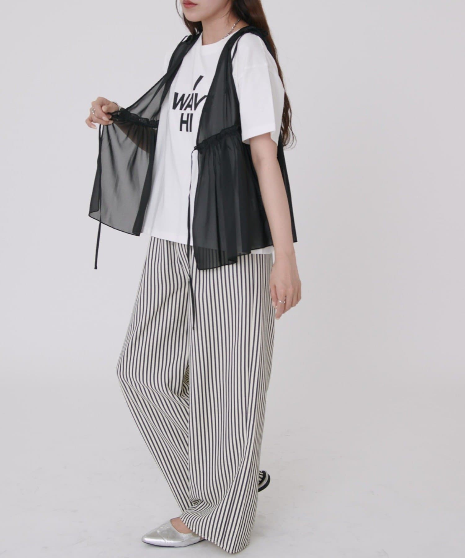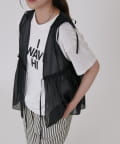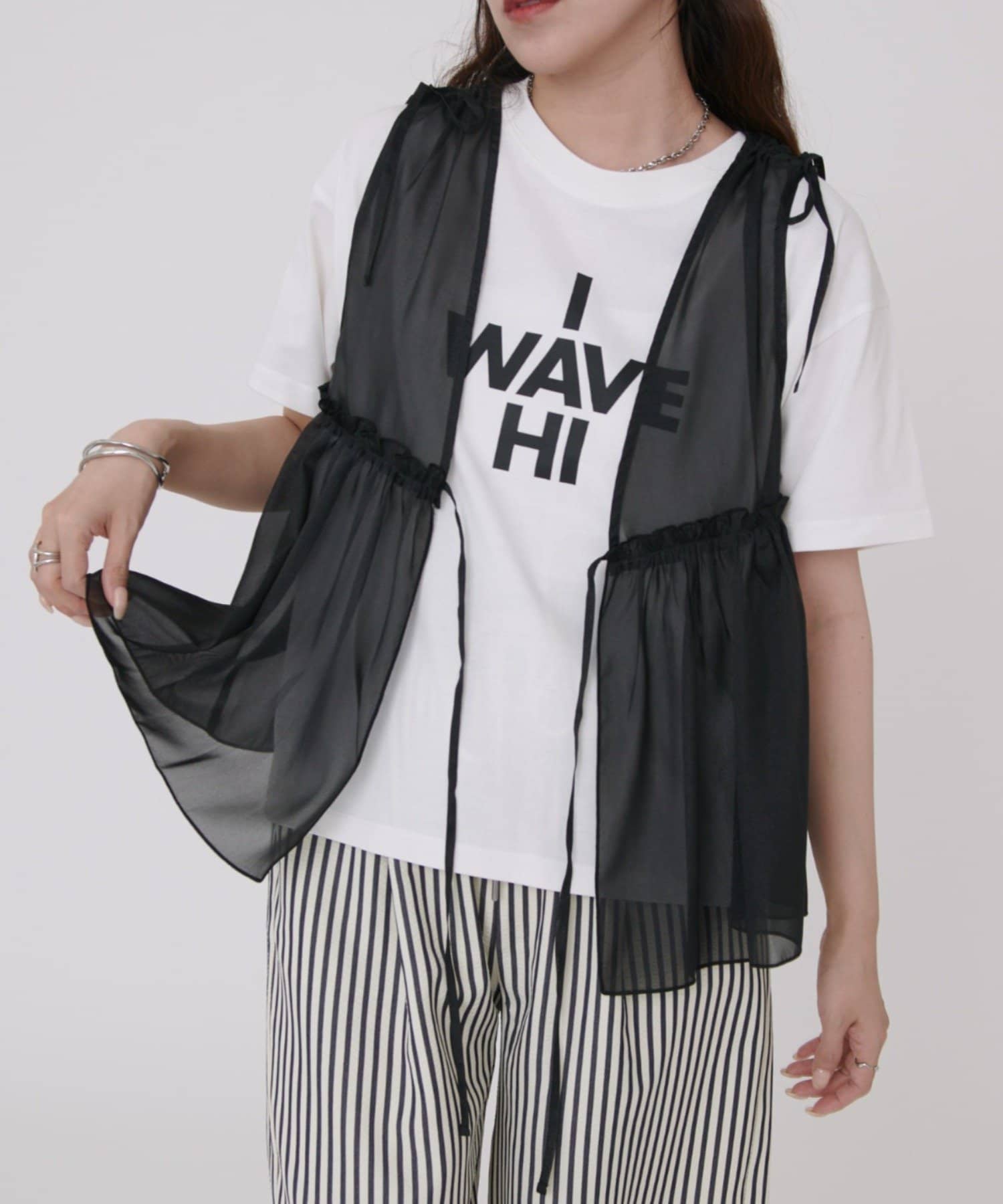 透け感がトレンドライクなシアーギャザーリボンベストです。