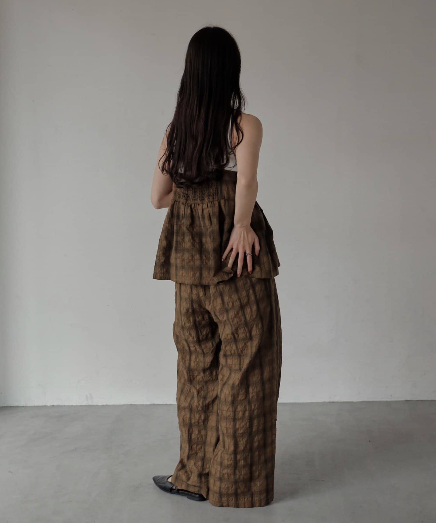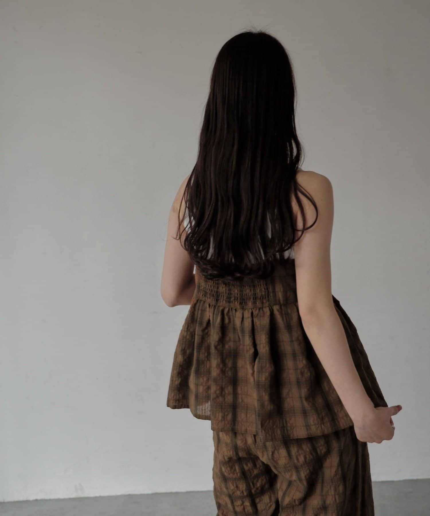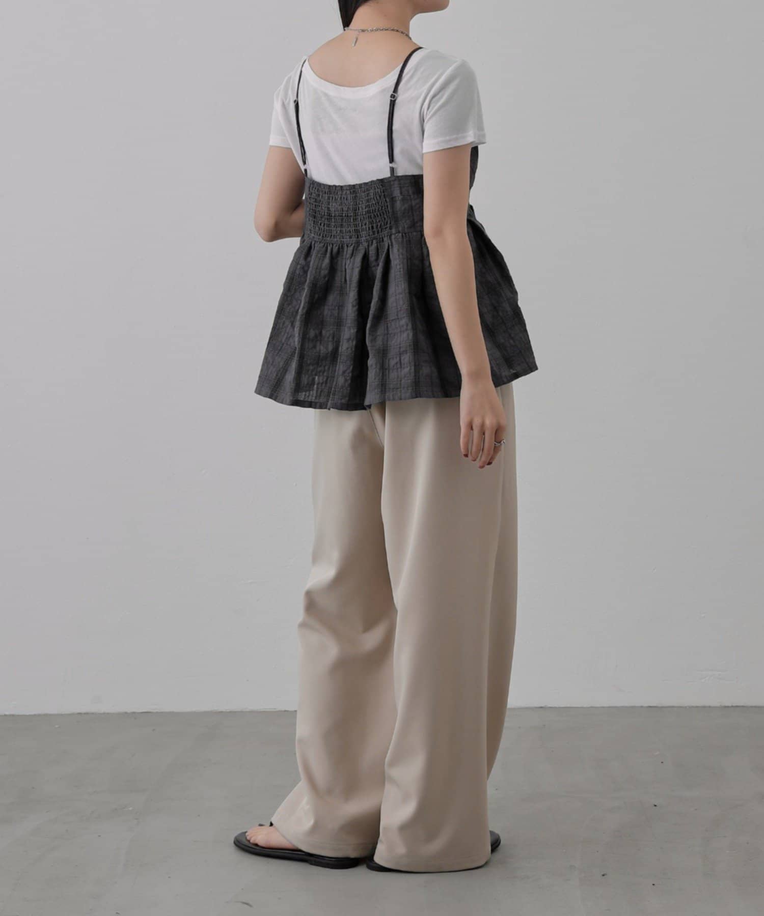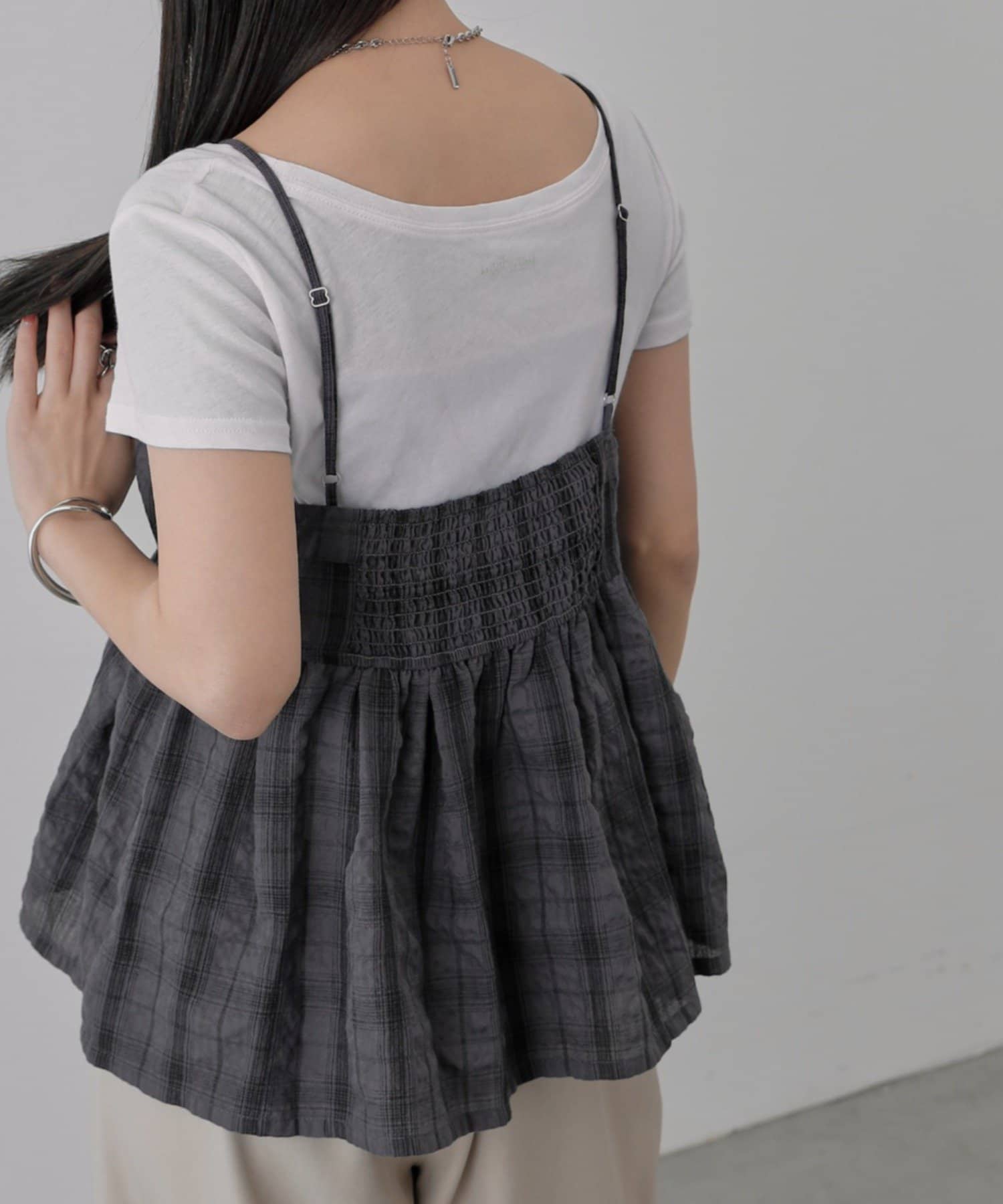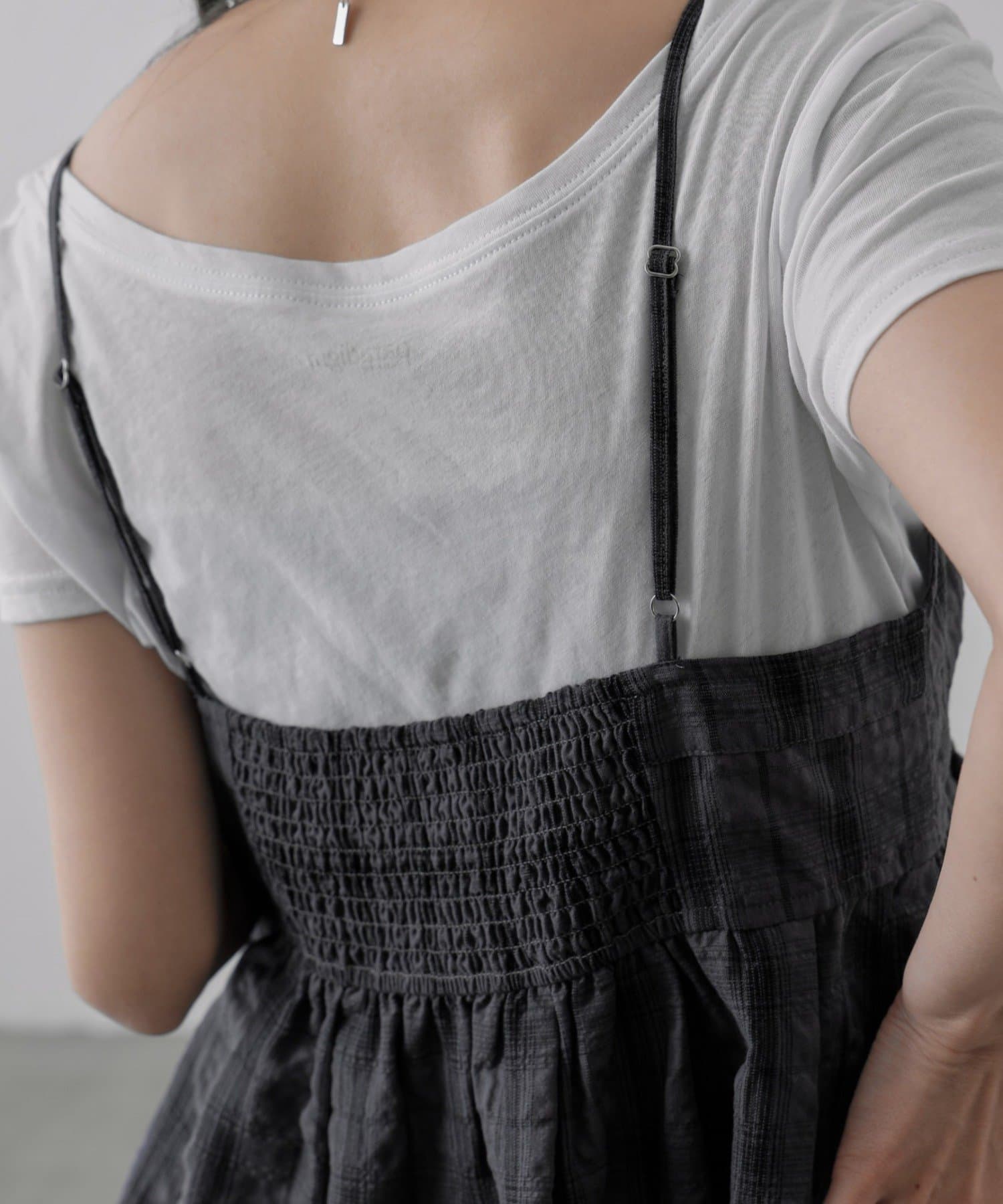 後ろ側はシャーリングデザインになっていて伸縮性のある生地なので締め付けが感ないのも嬉しいポイントです◎