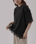 袖と裾のレースデザインでコーディネートにトレンド感をプラスできるTシャツです。