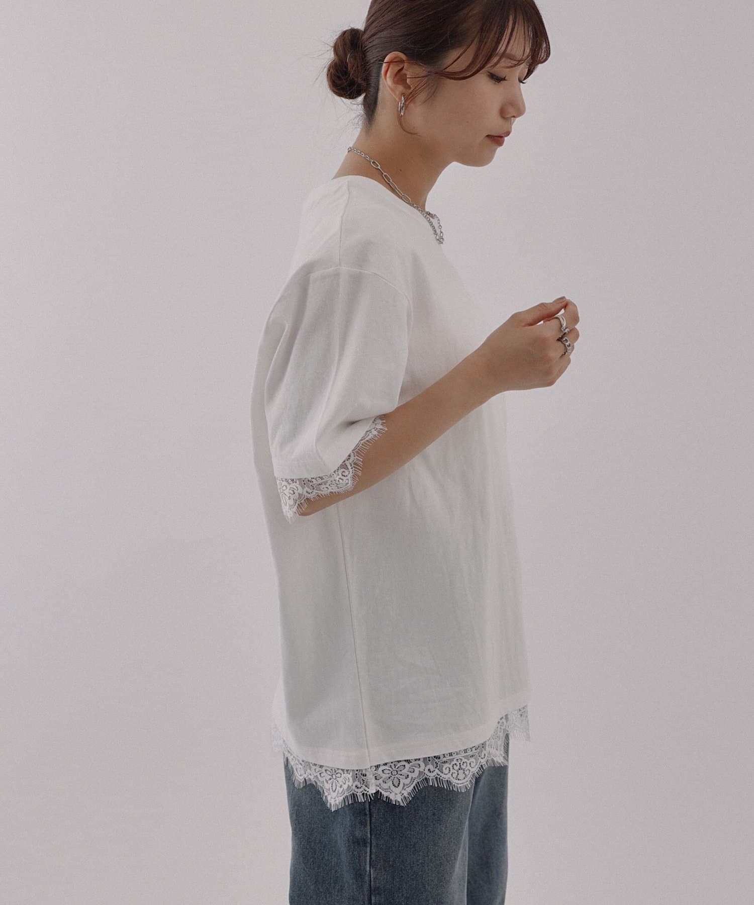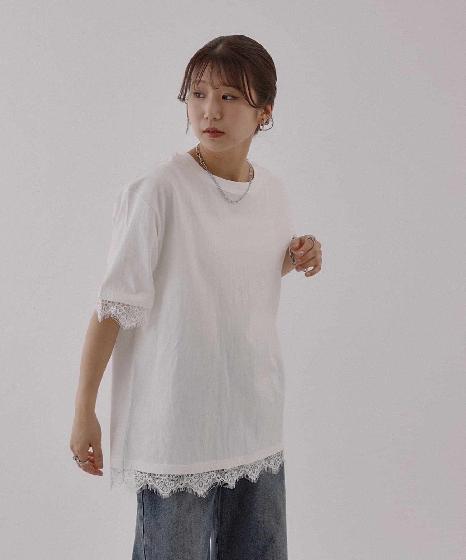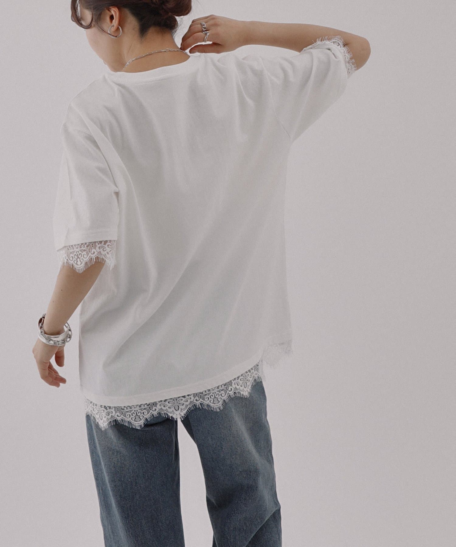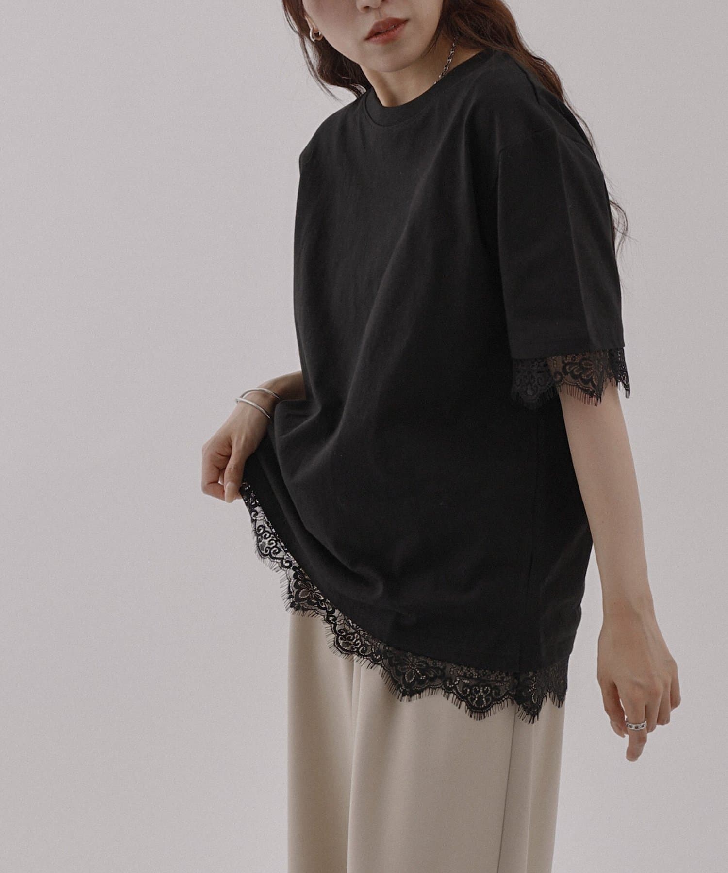 レースヘムオーバーTシャツ