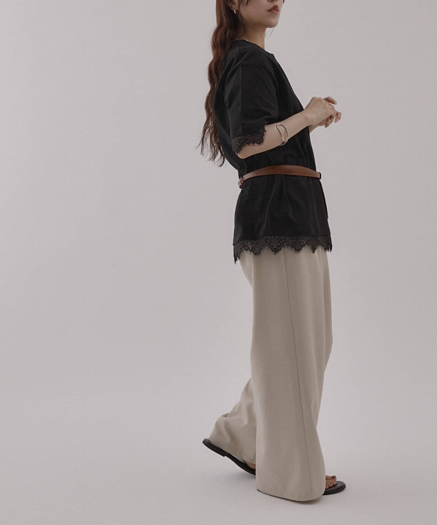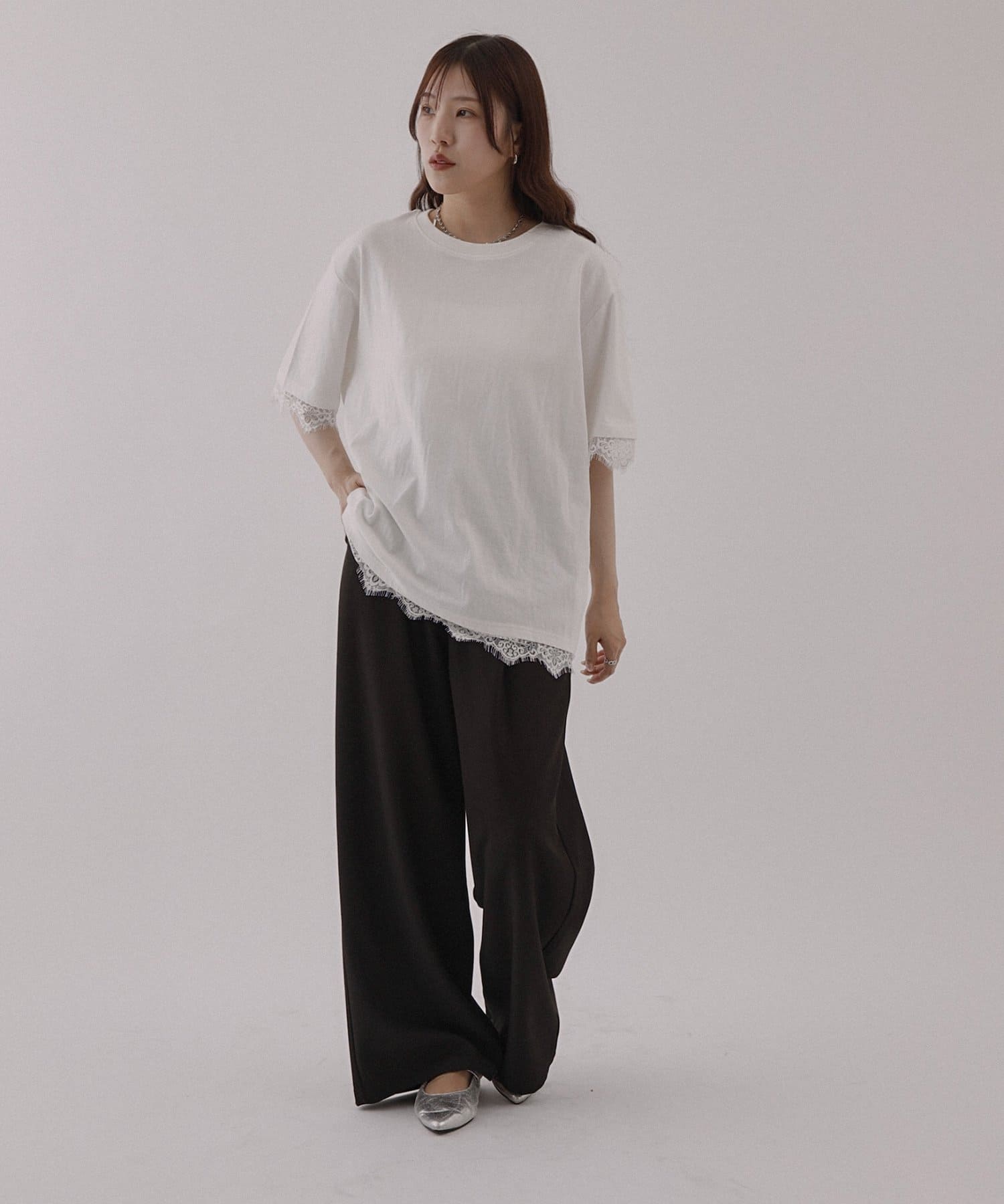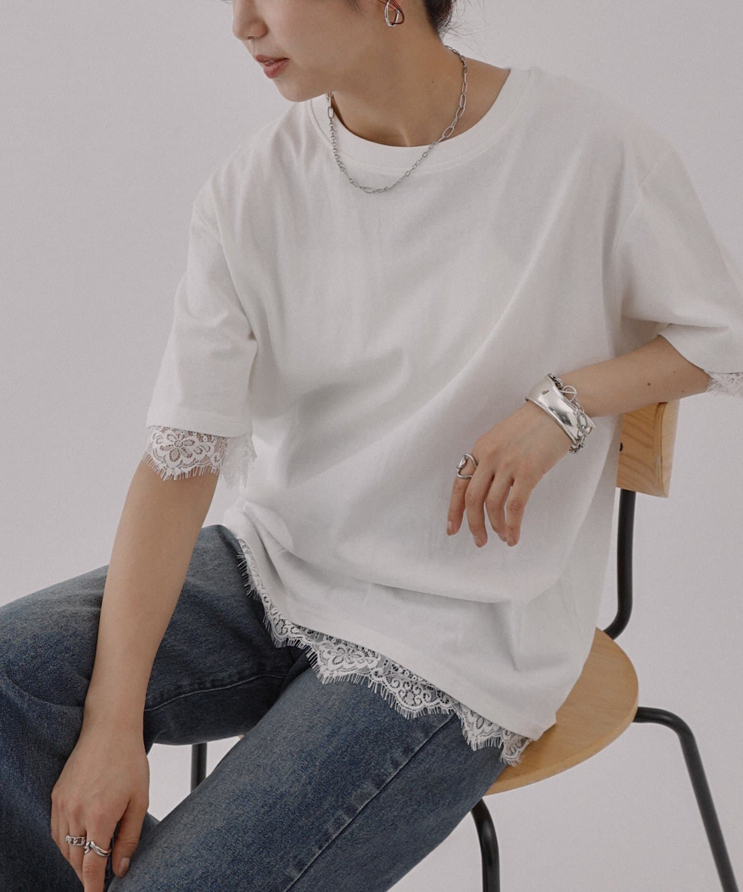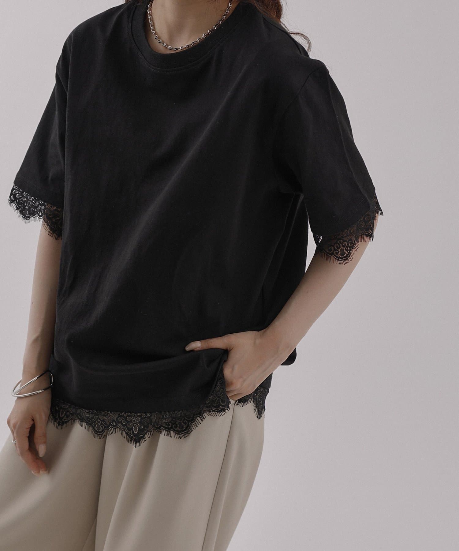 レースヘムオーバーTシャツ