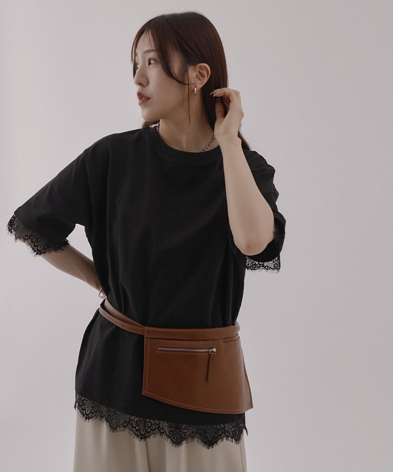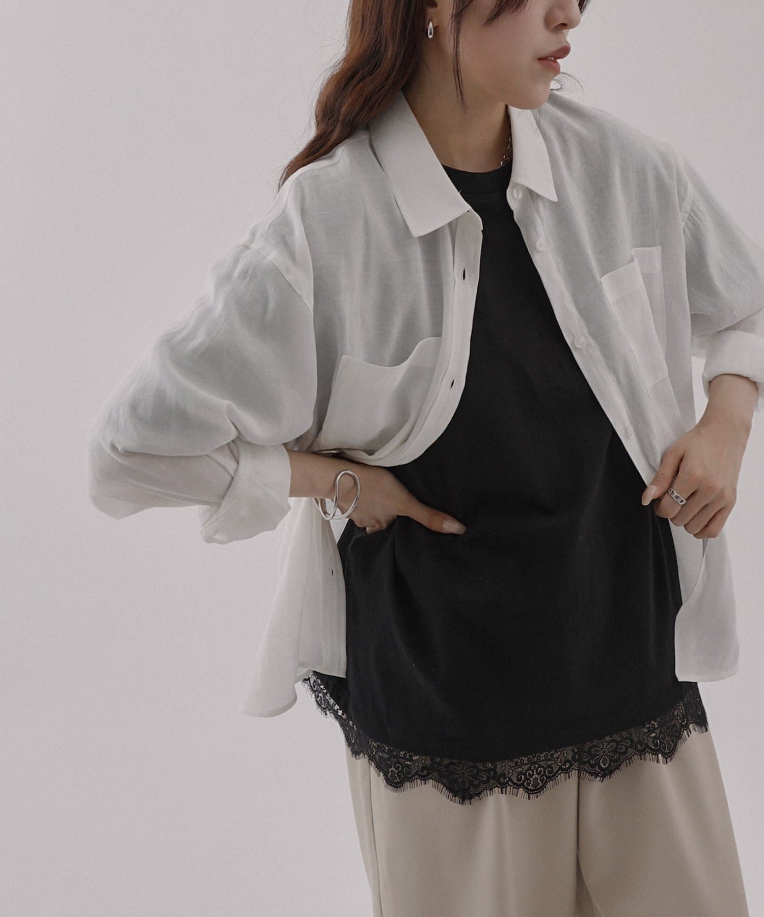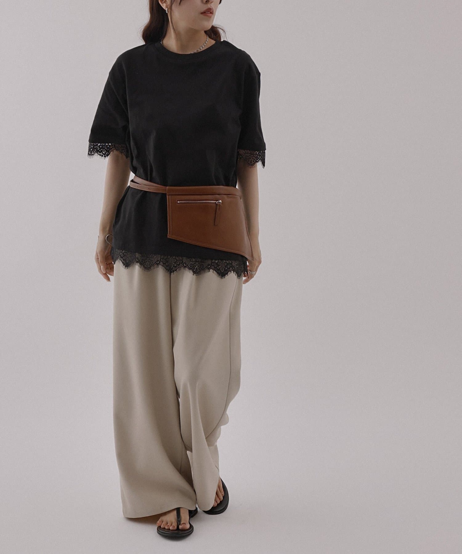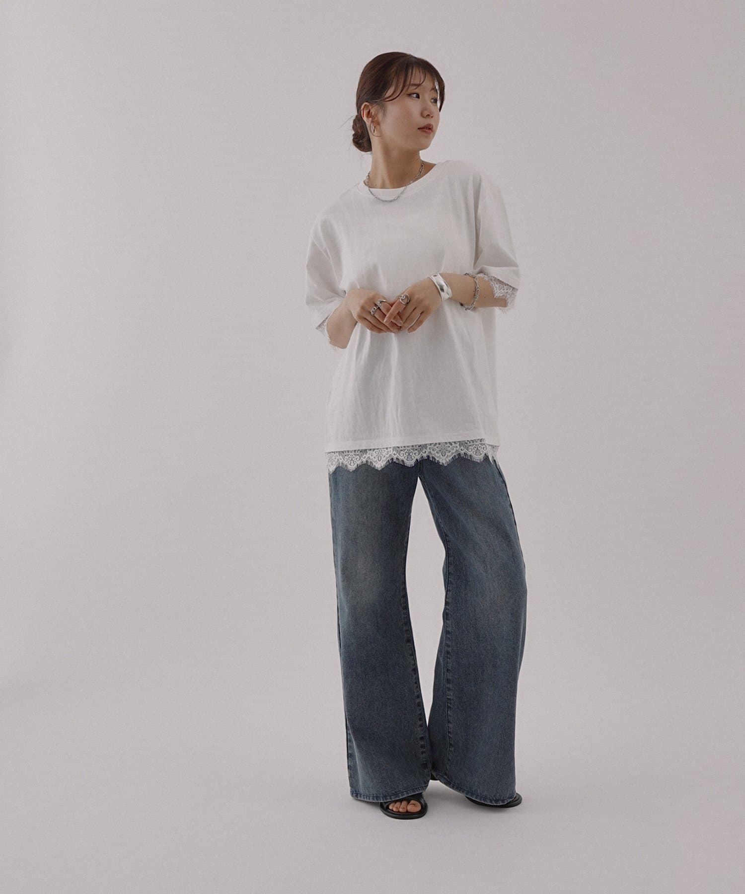 レースヘムオーバーTシャツ