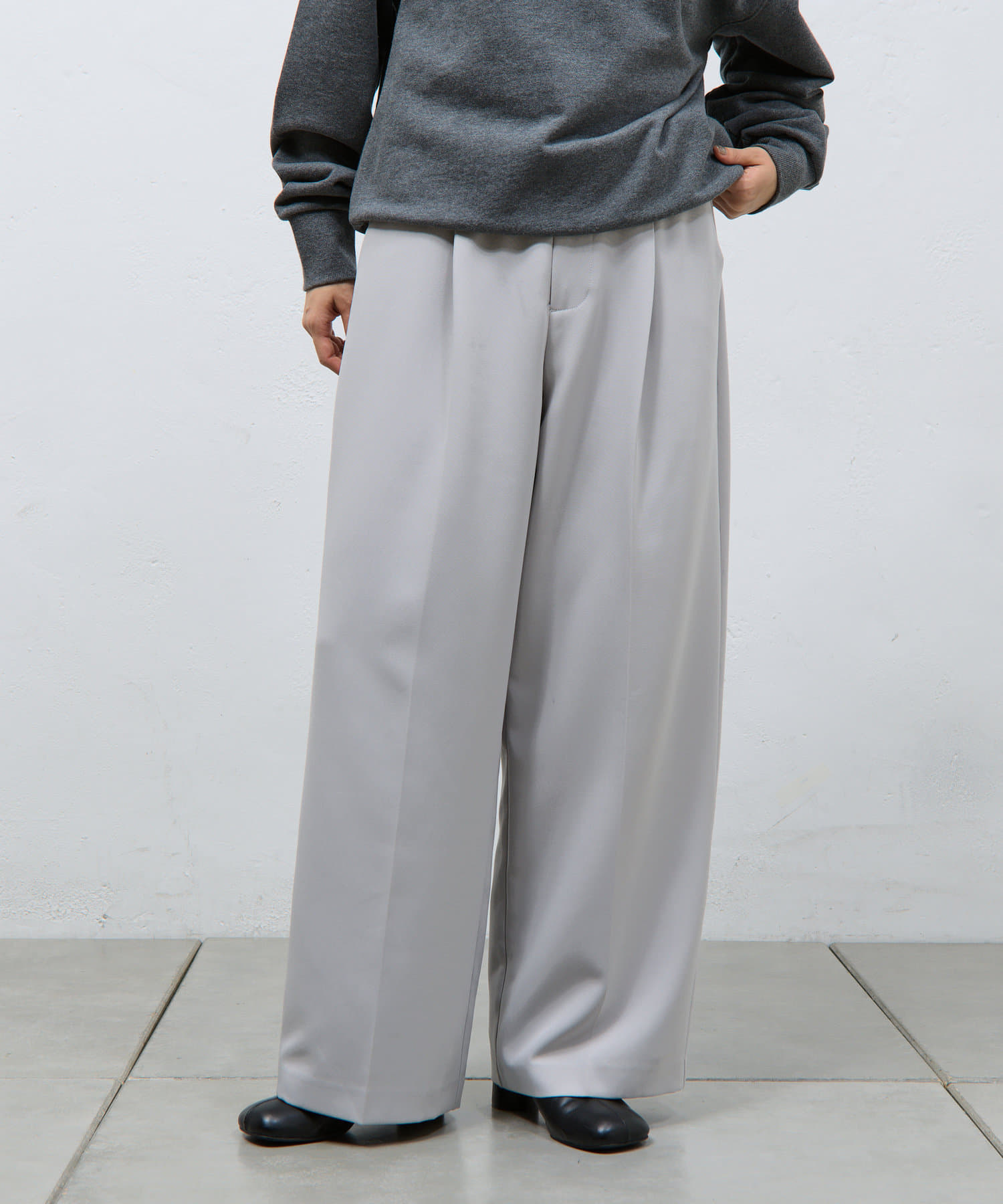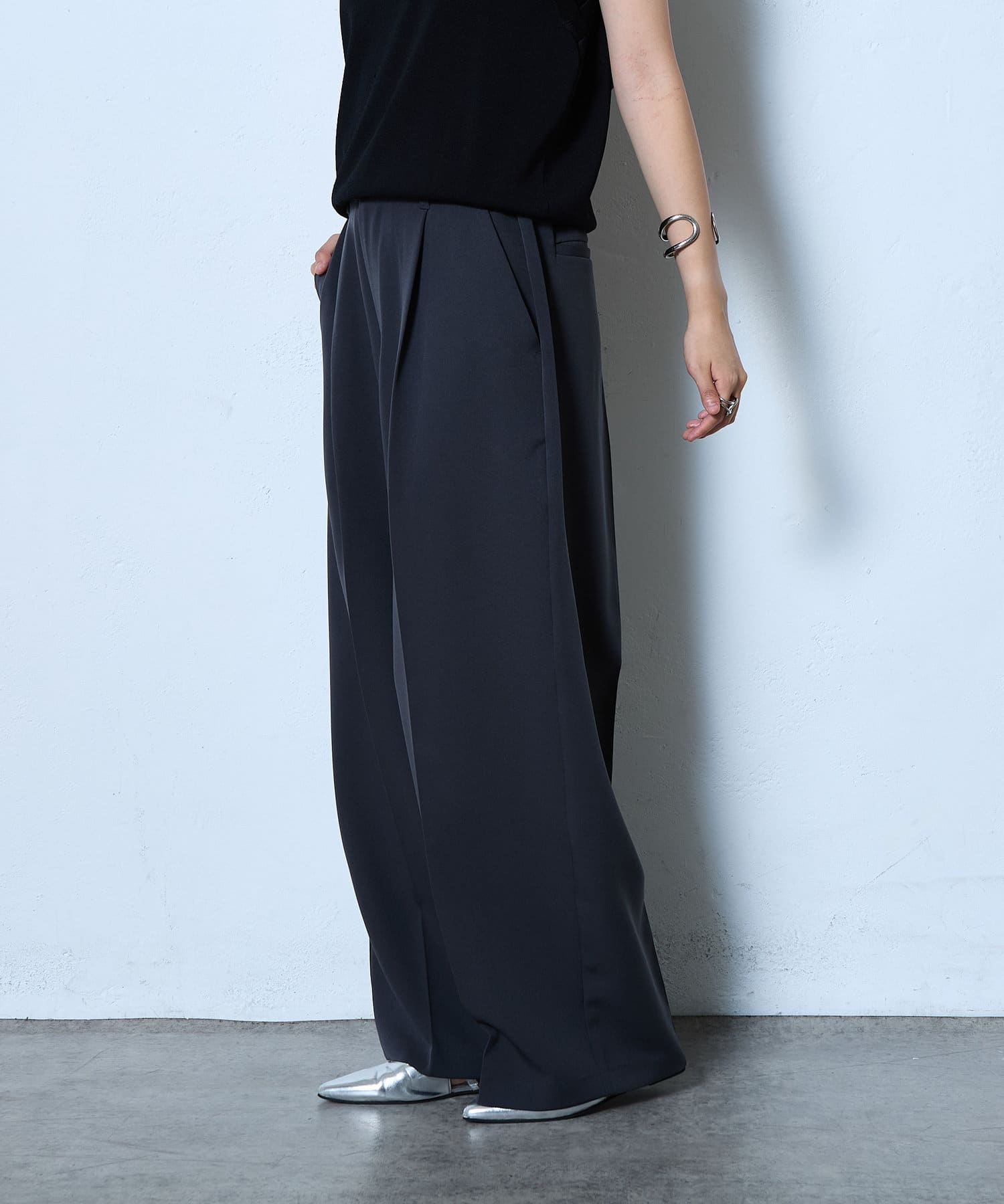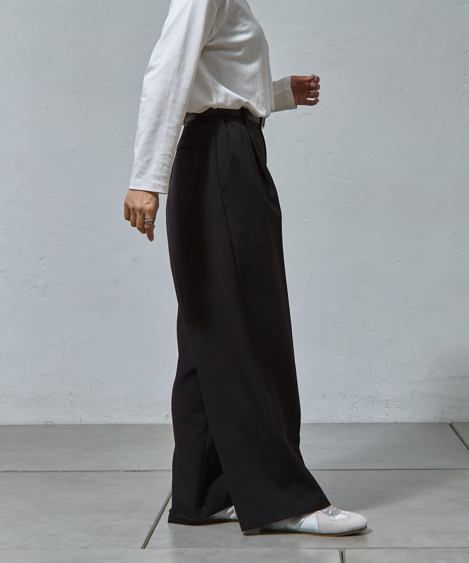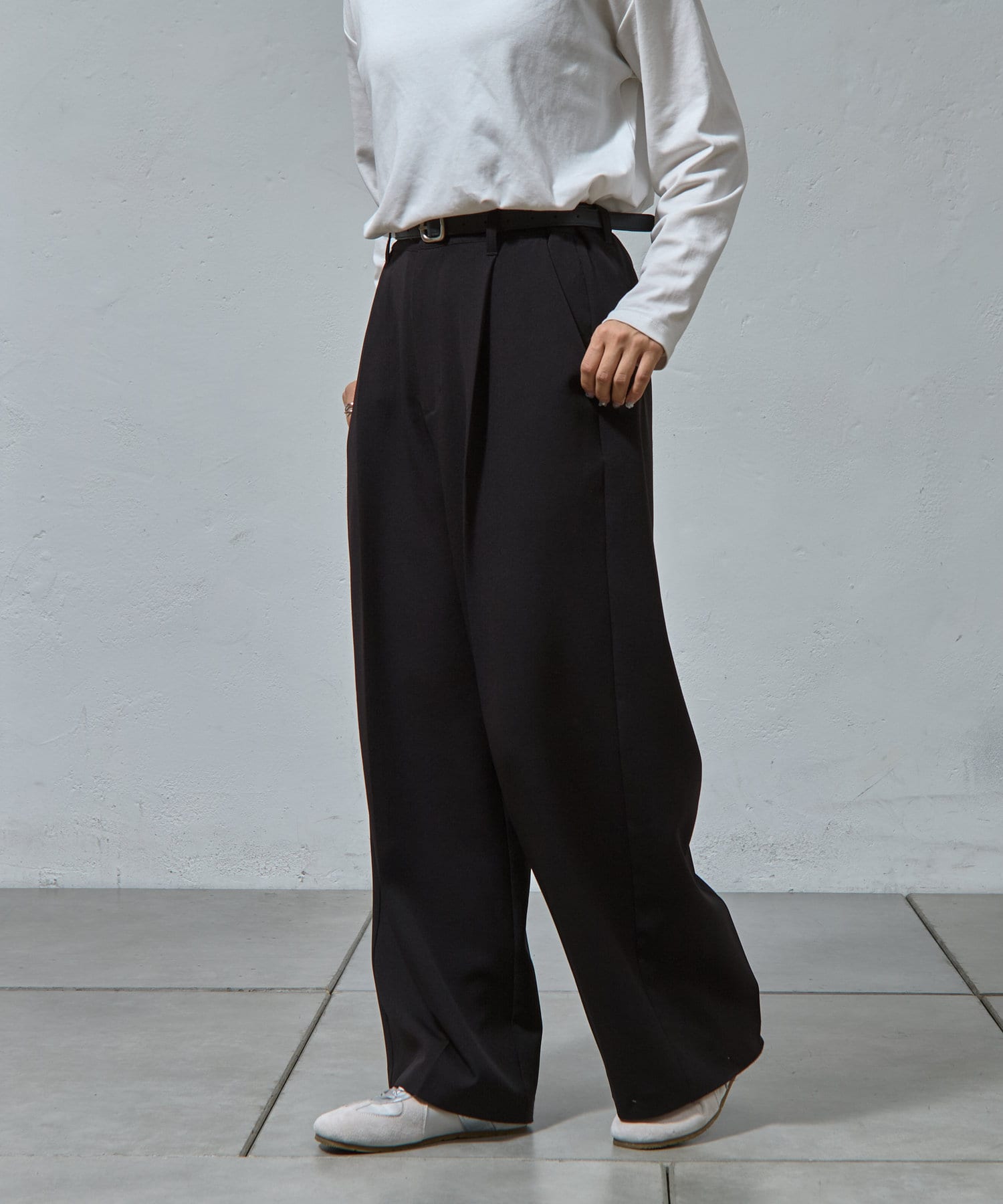 キレイな印象を与えてくれるタックワイドパンツ