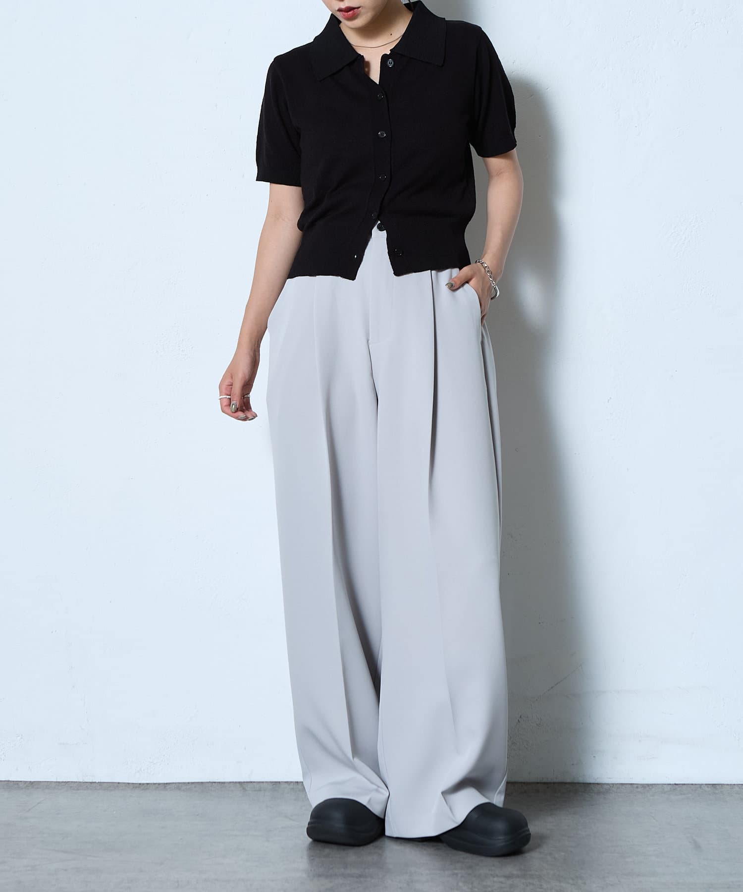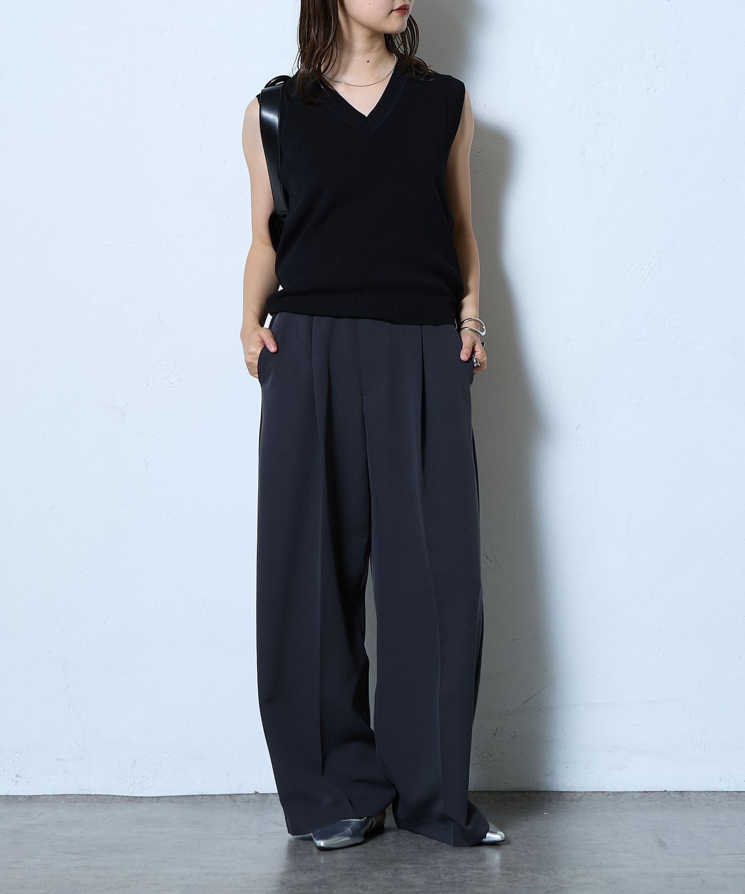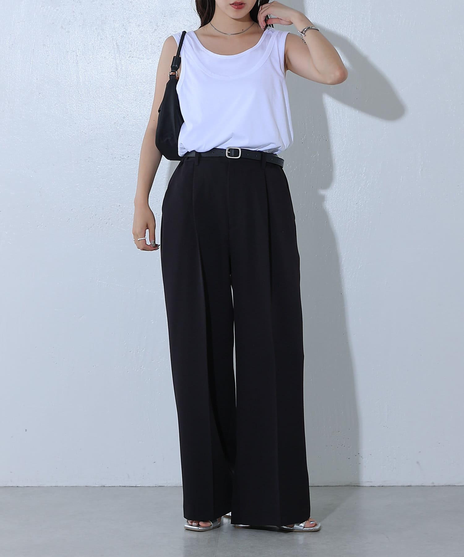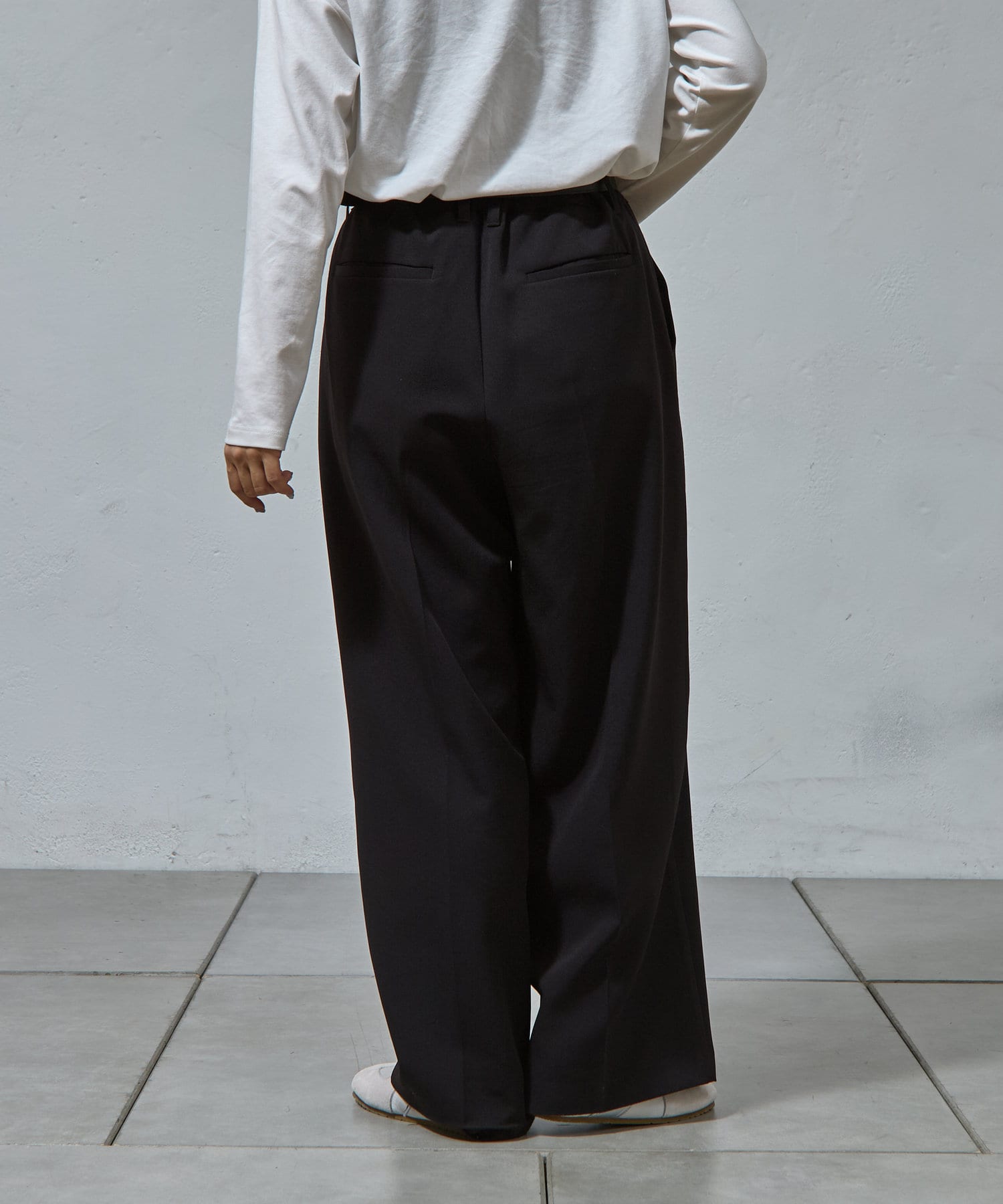 キレイな印象を与えてくれるタックワイドパンツ