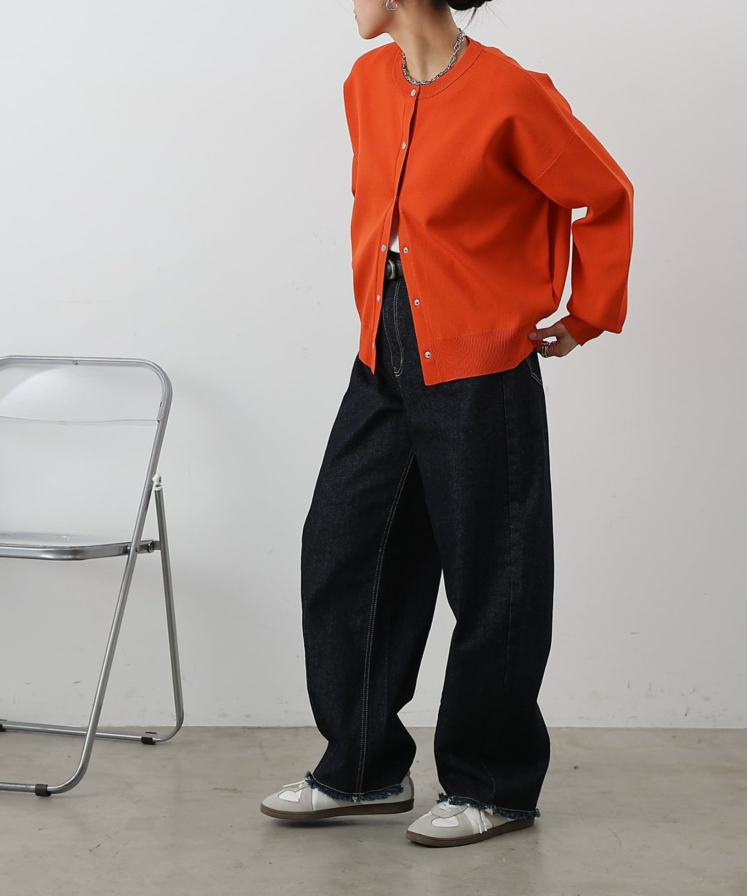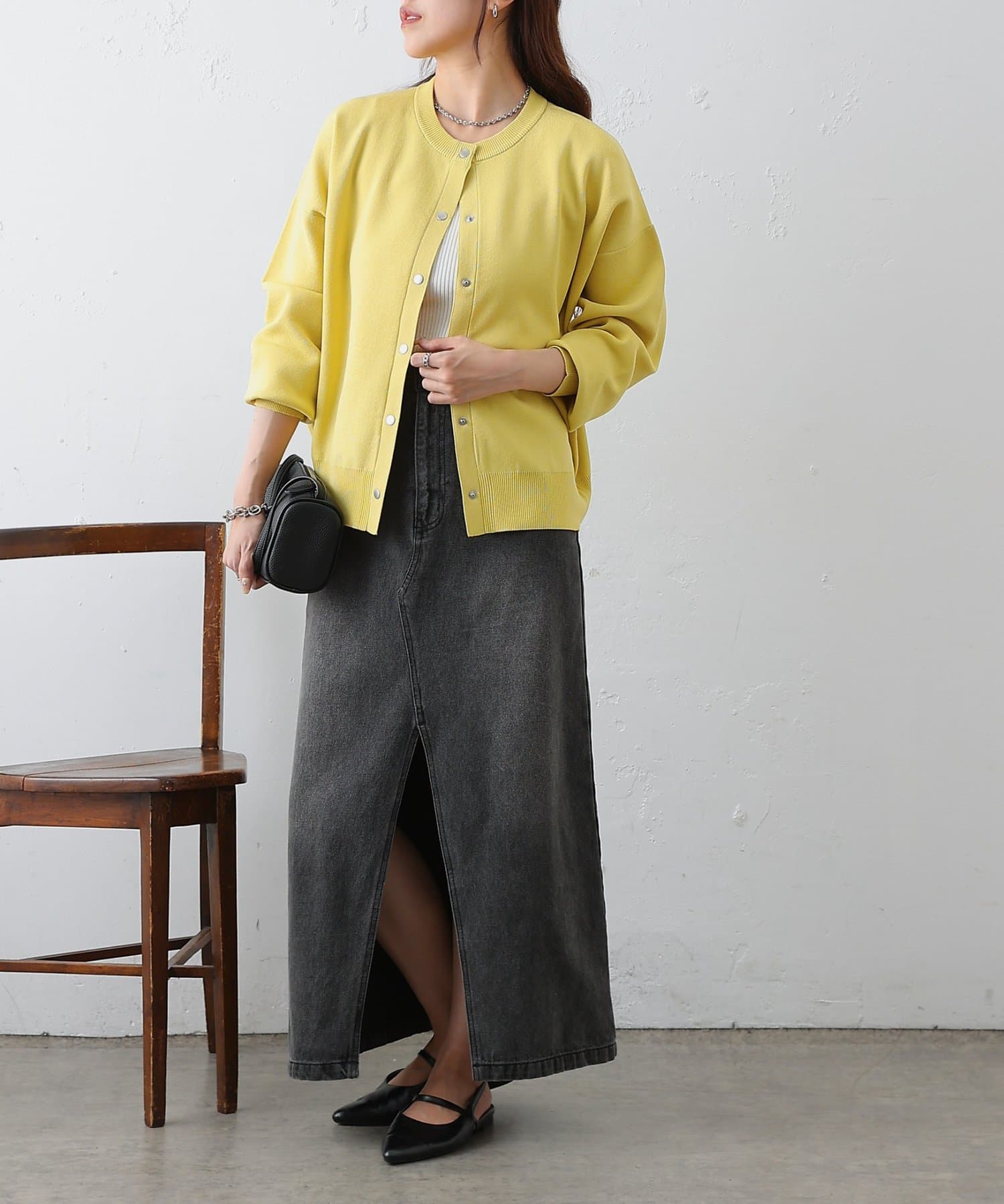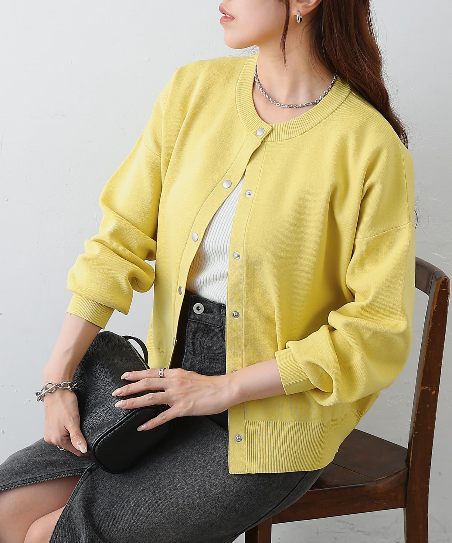 シンプルなデザインで、着回し力抜群のカーディガン。