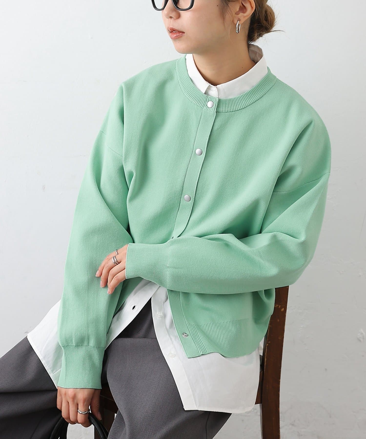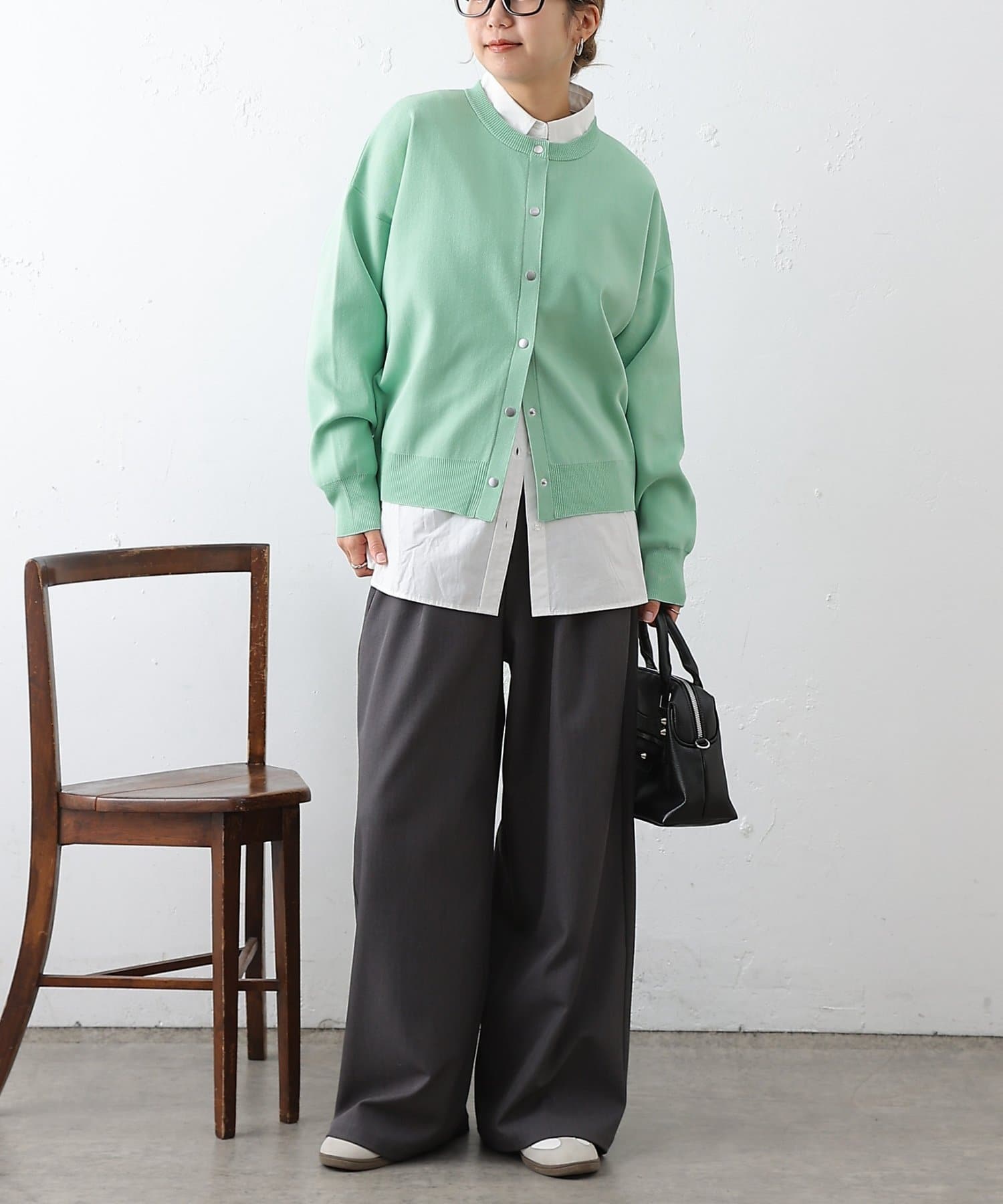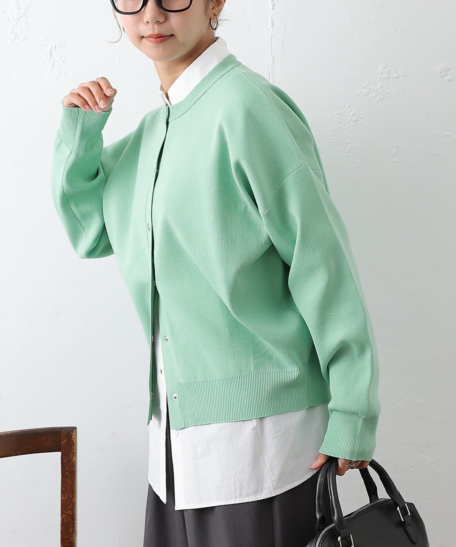 ボタンをとめてカーディガンを主役としても、ワンピースに肩掛けしてきれい目にもON/OFF問わず着ていただける一枚。