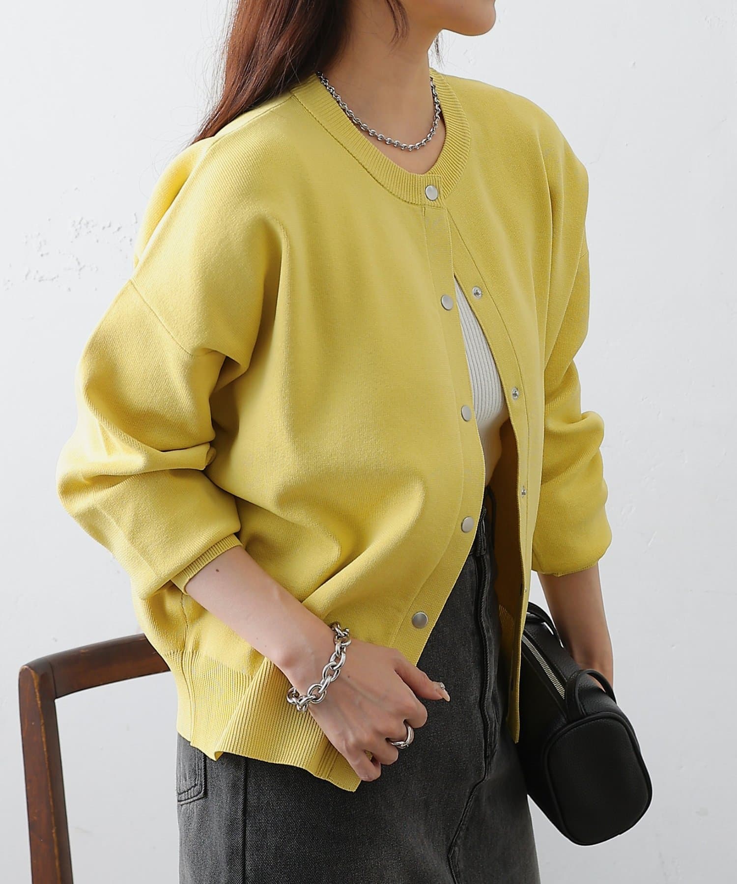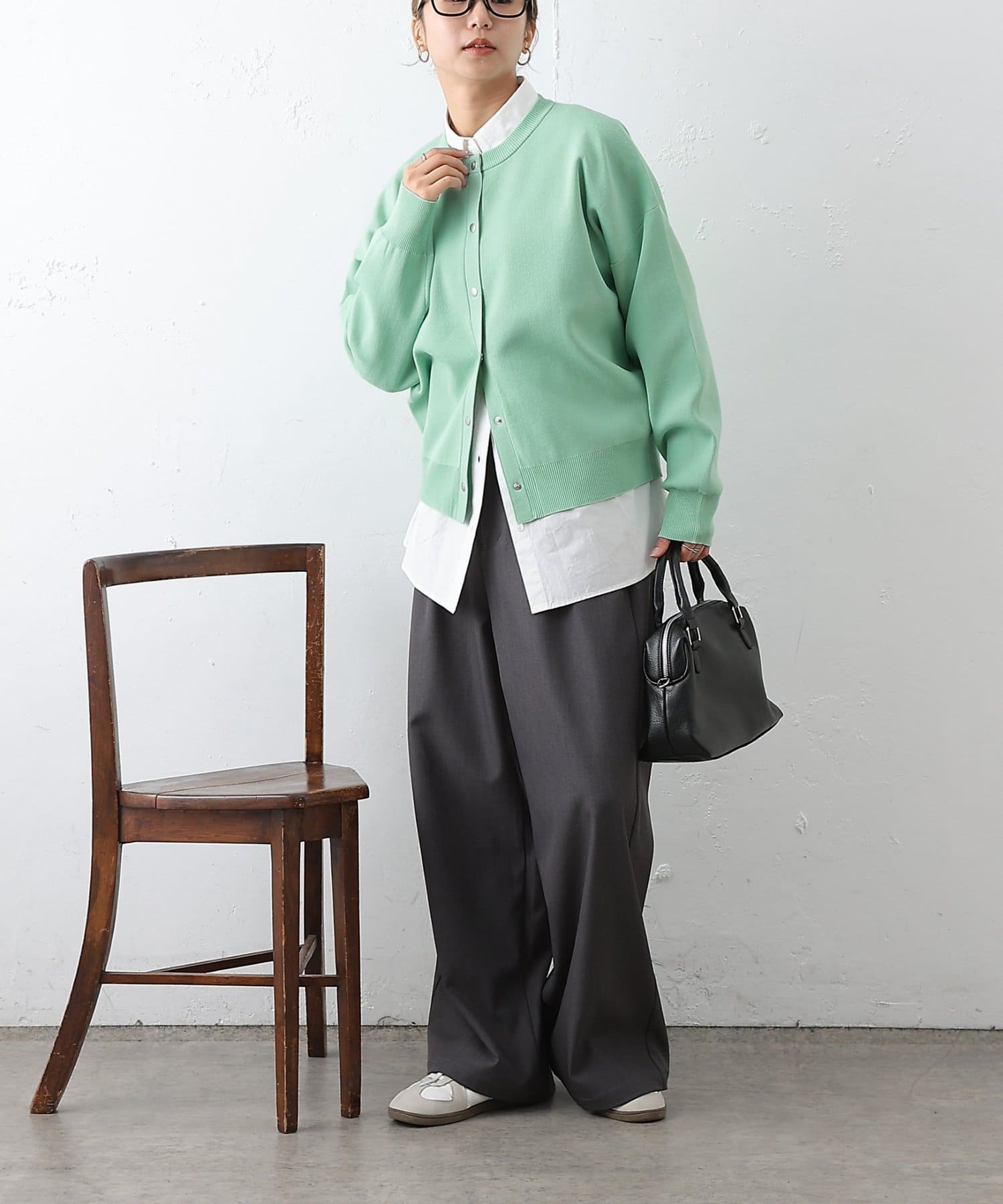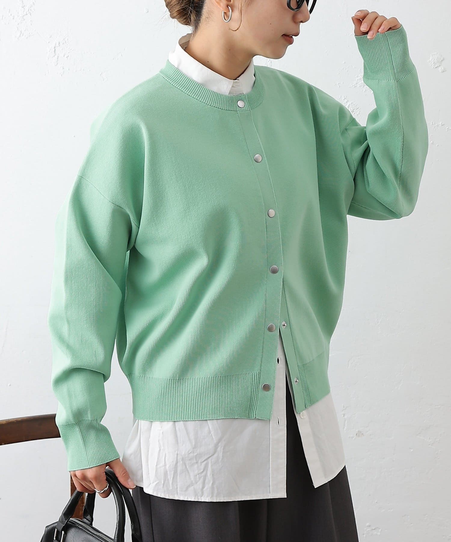 ボタンをとめてカーディガンを主役としても、ワンピースに肩掛けしてきれい目にもON/OFF問わず着ていただける一枚。