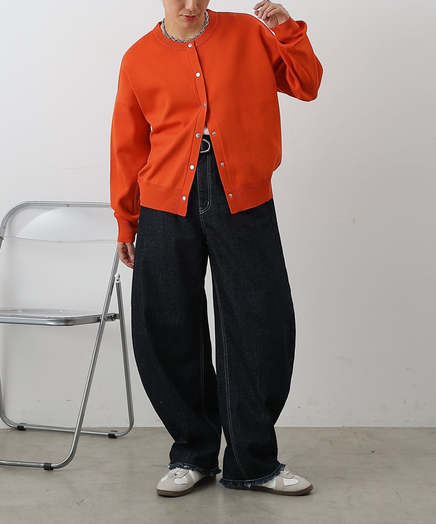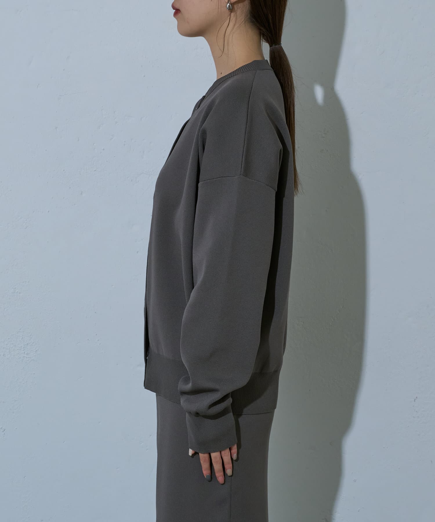 【ポリエステルの軽量素材で編まれたクルーネックカーディガン】