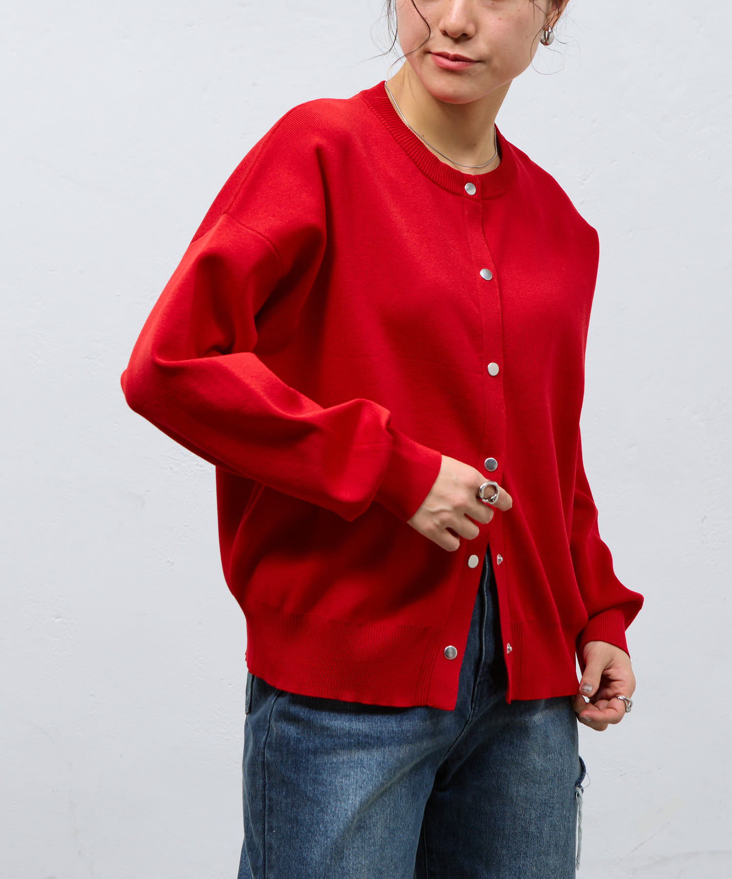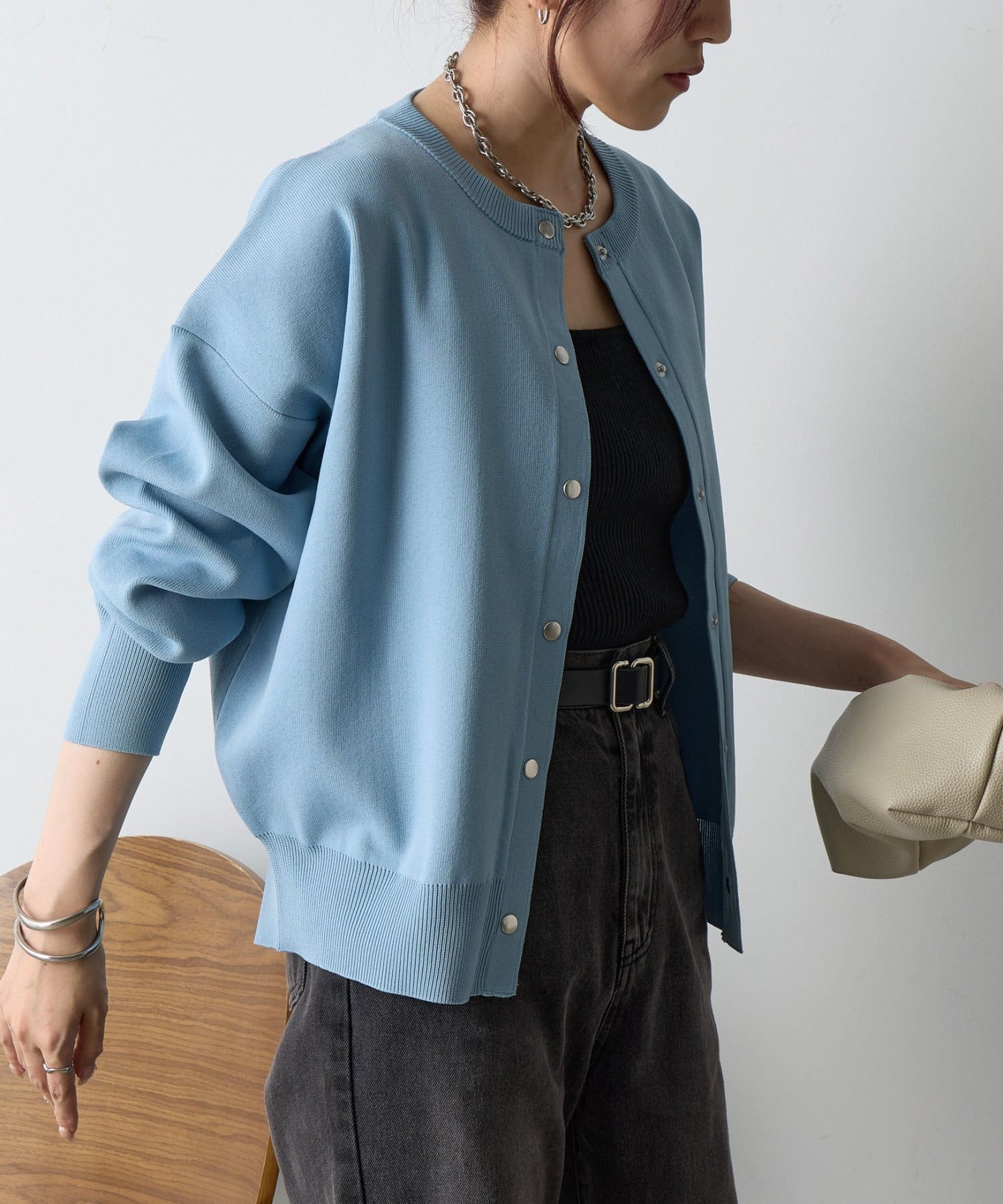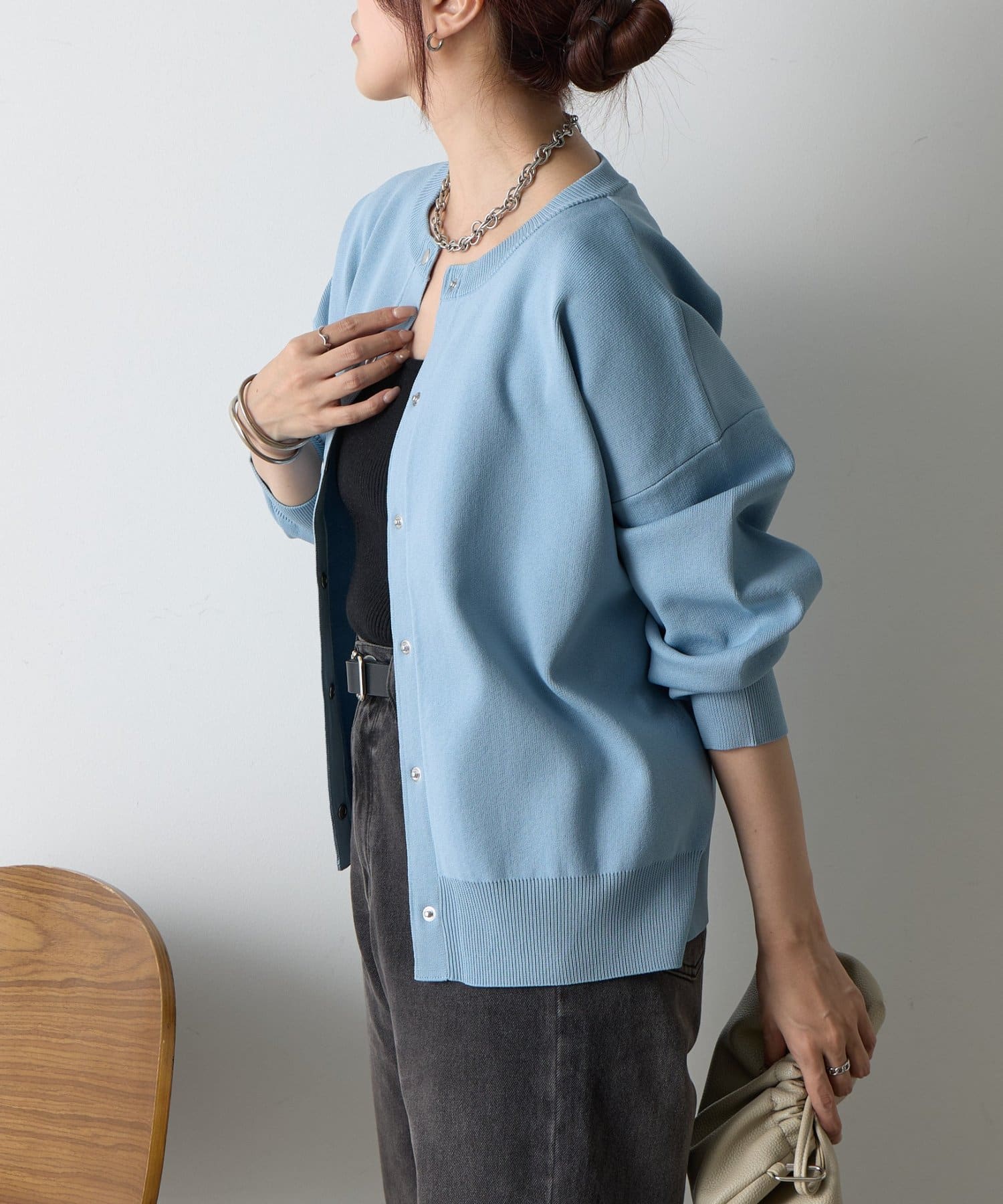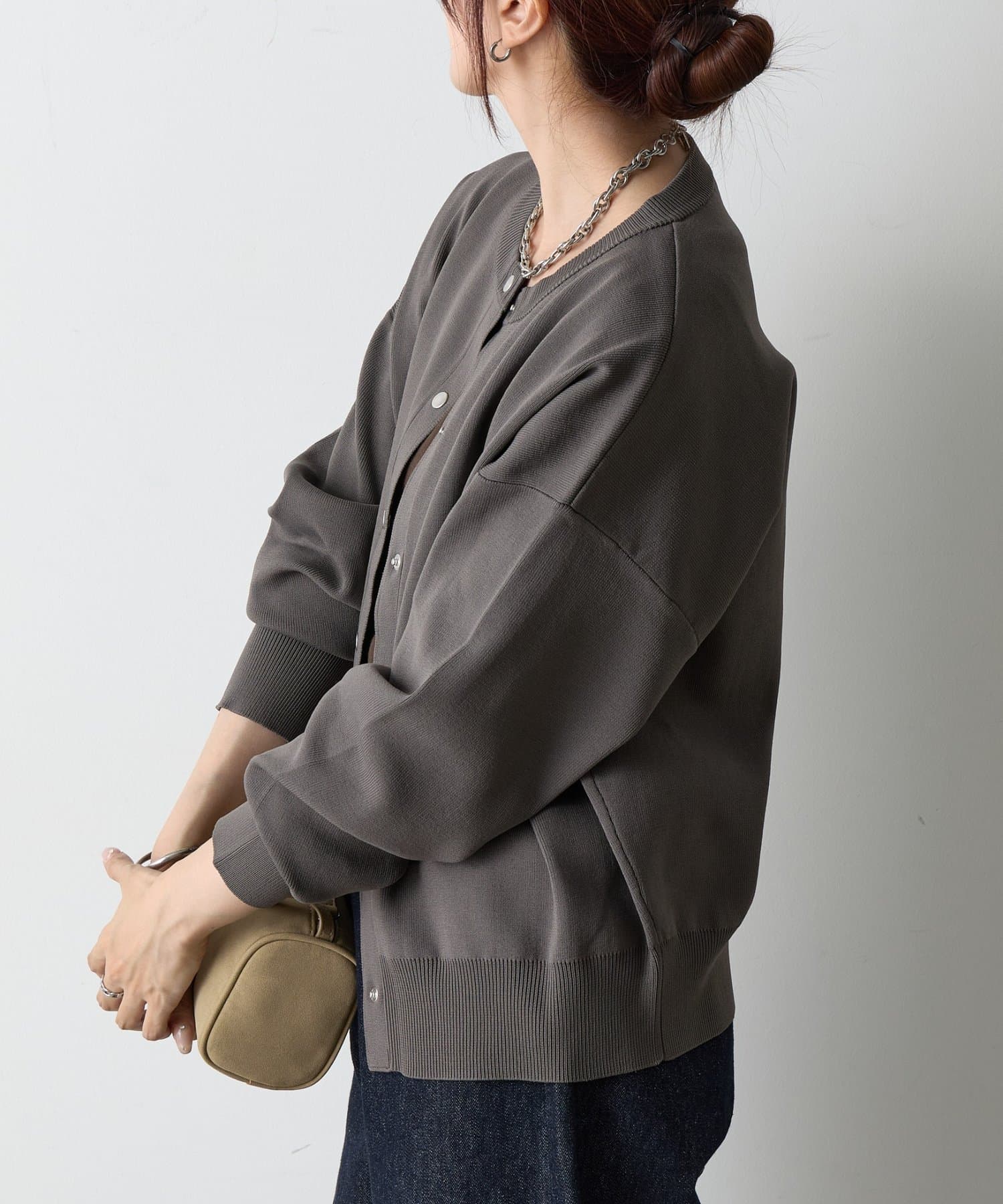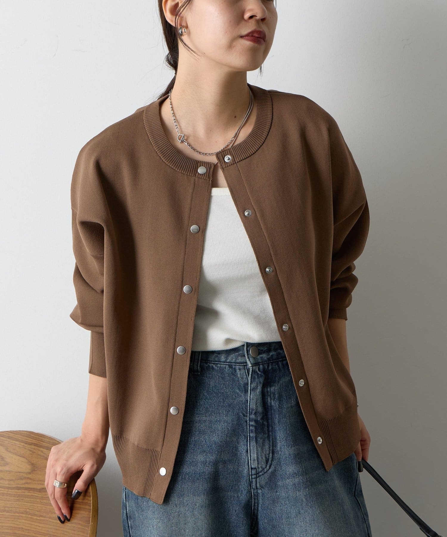 ボタンをとめてカーディガンを主役としても、ワンピースに肩掛けしてきれい目にもON/OFF問わず着ていただける一枚。