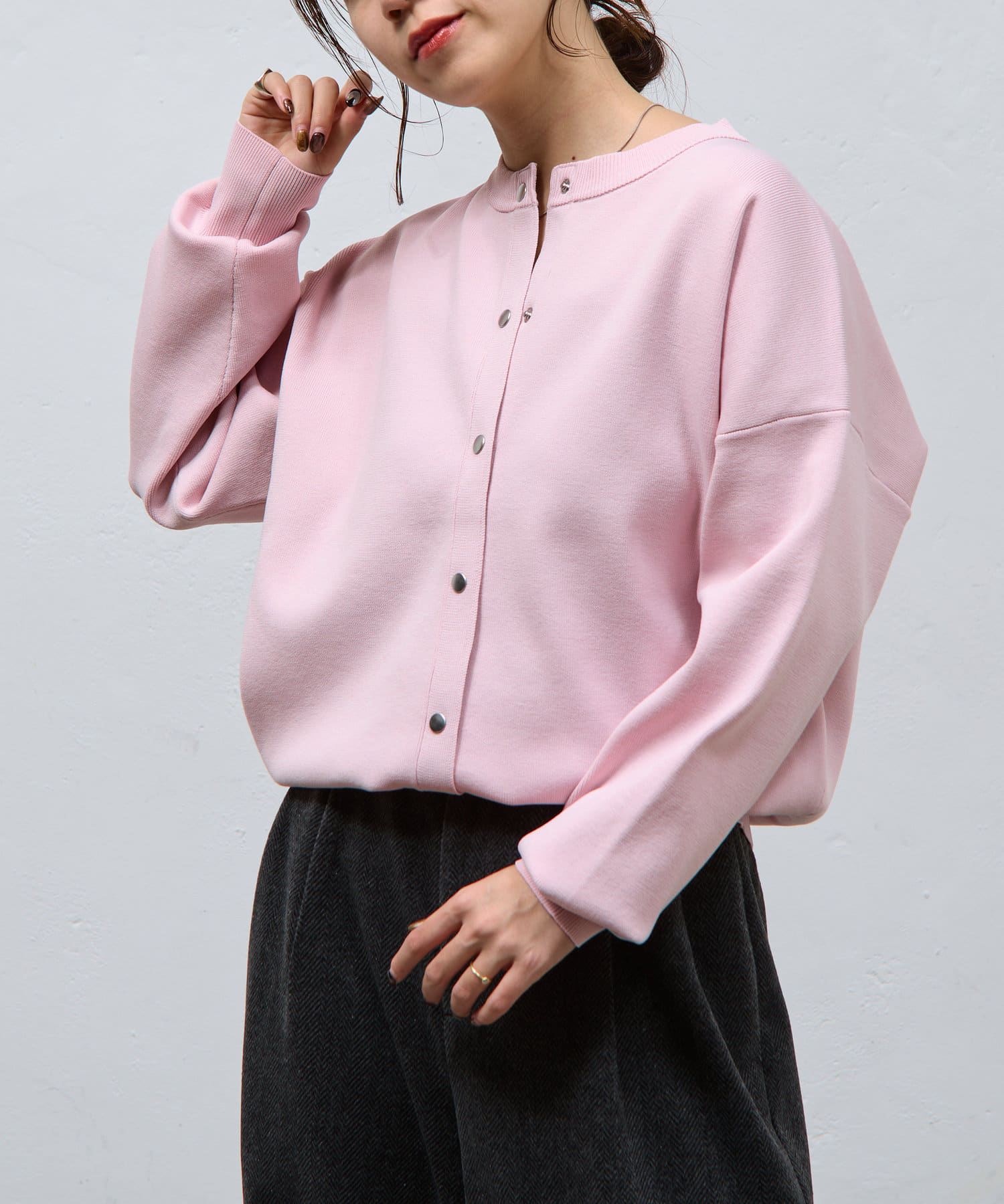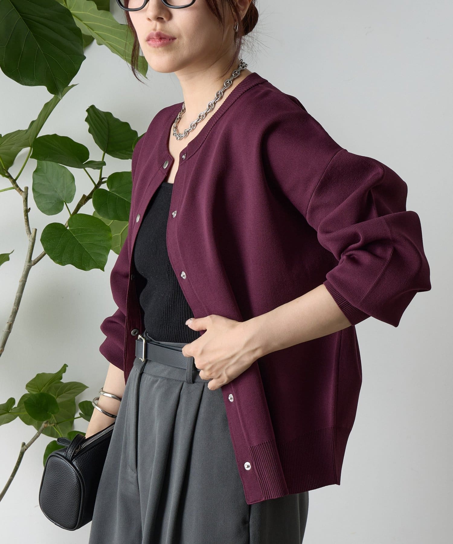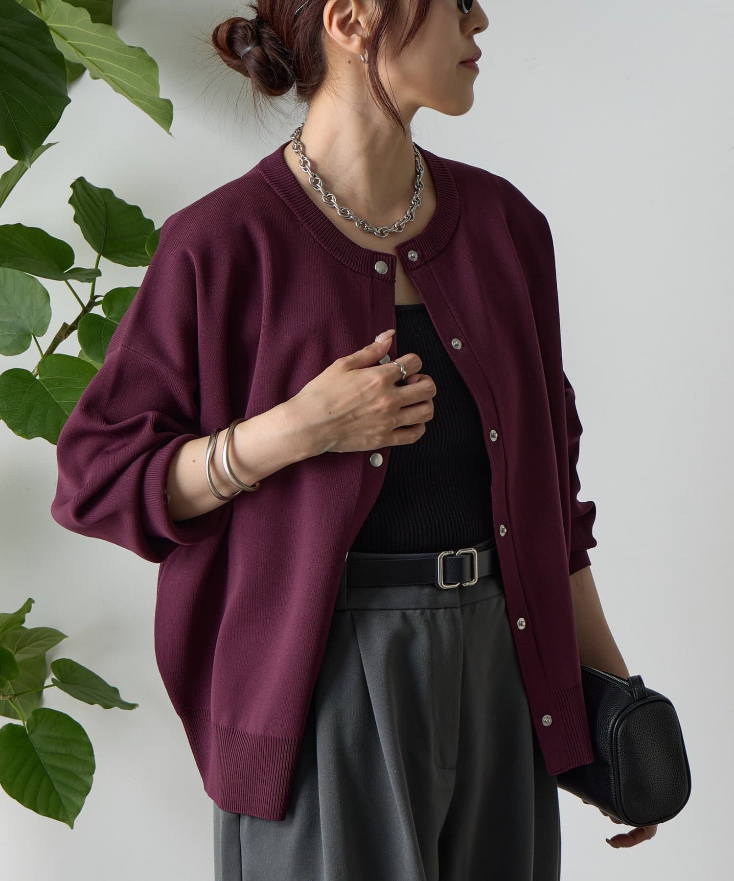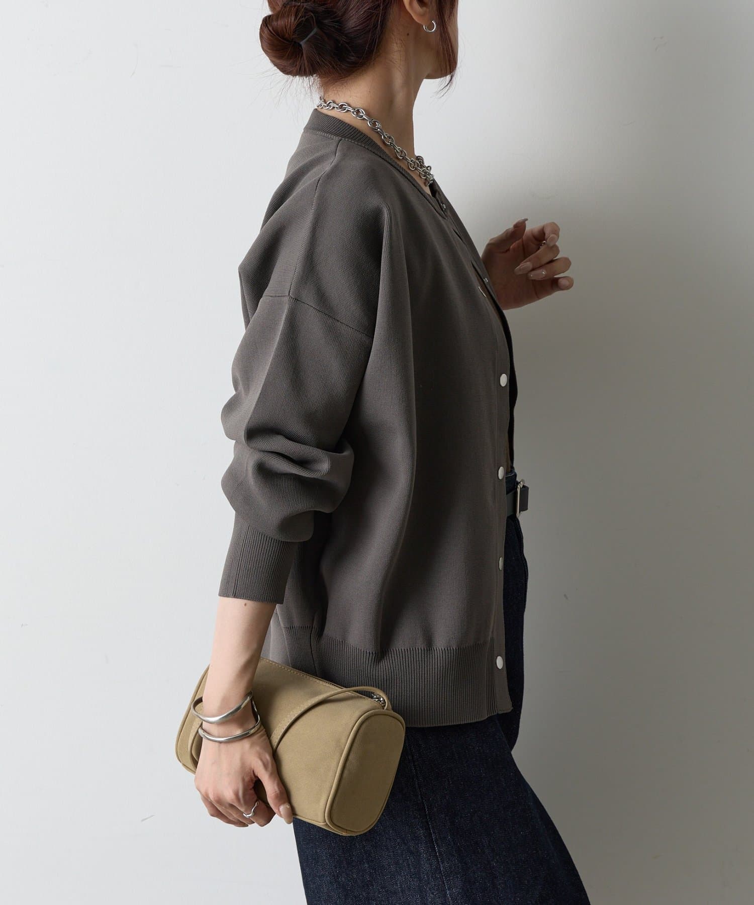 ボタンをとめてカーディガンを主役としても、ワンピースに肩掛けしてきれい目にもON/OFF問わず着ていただける一枚。