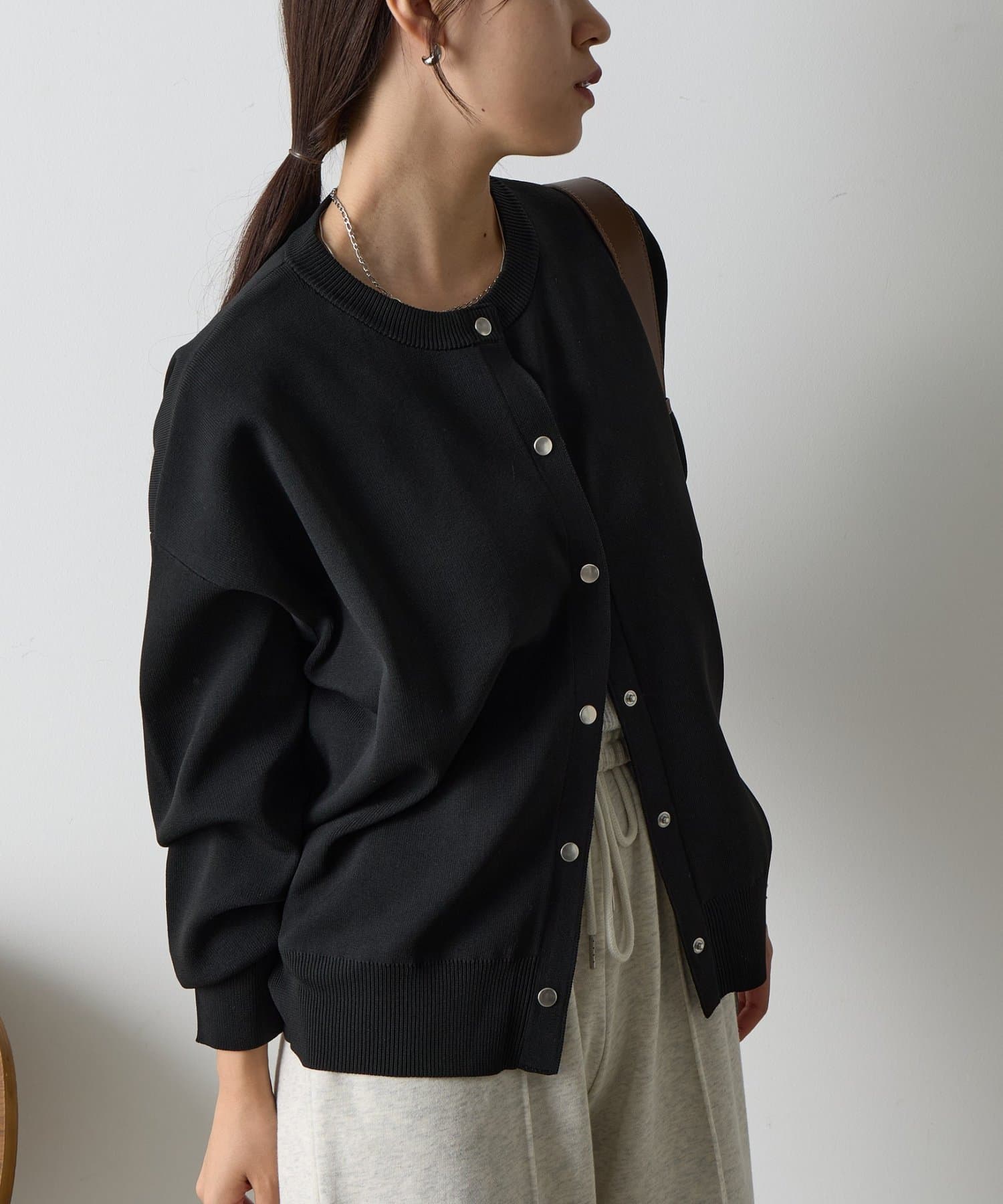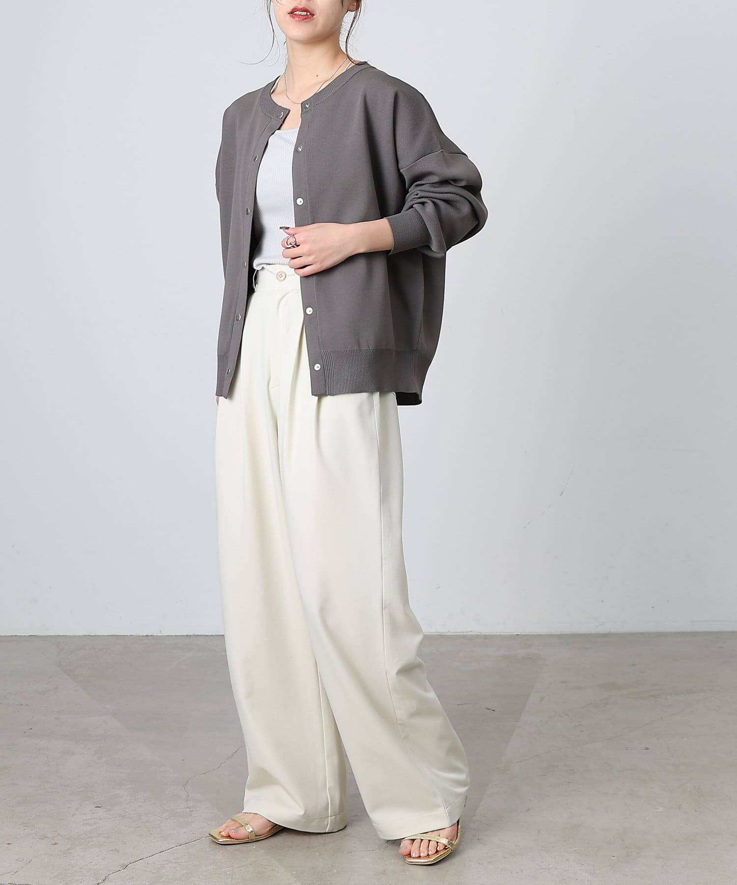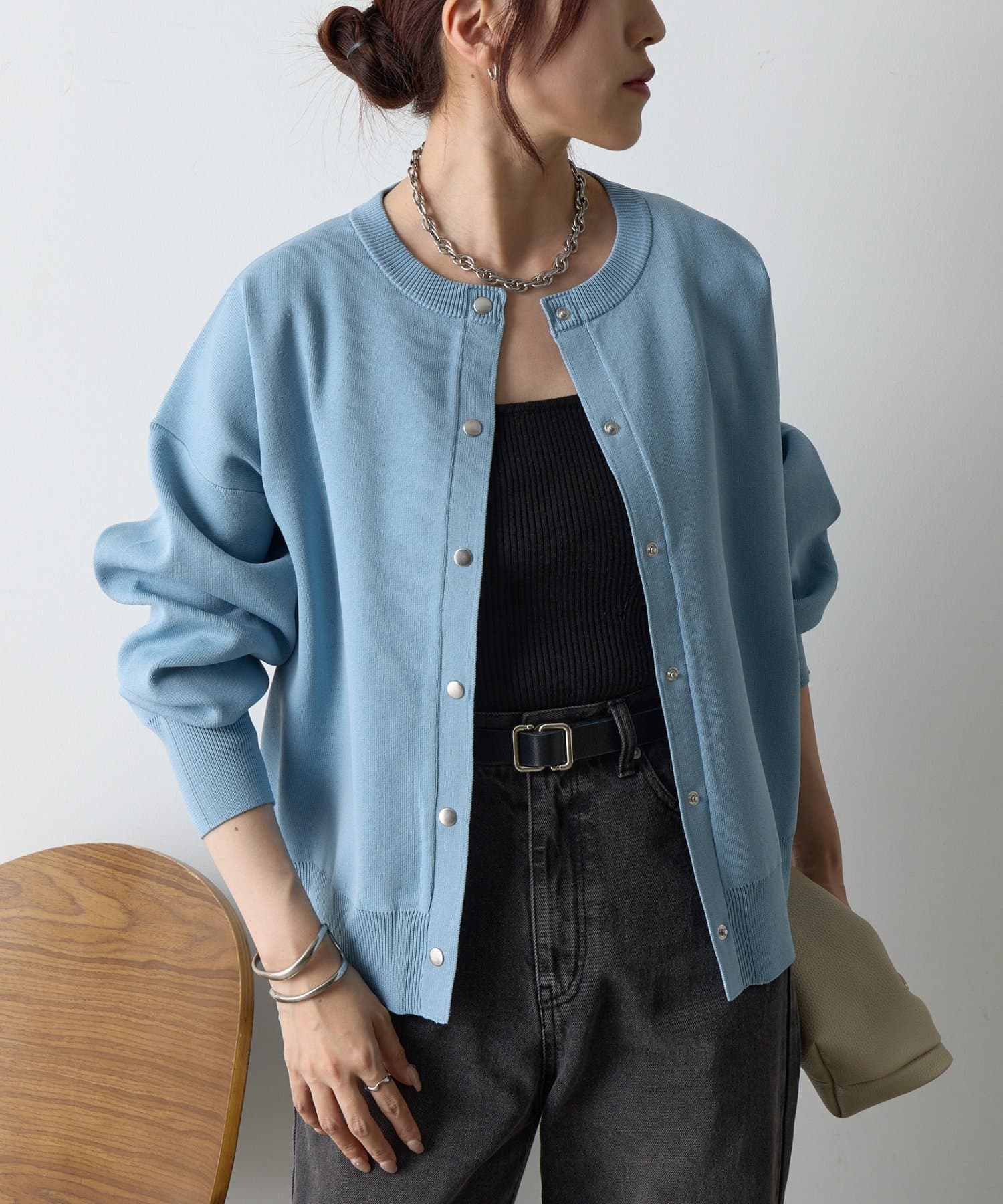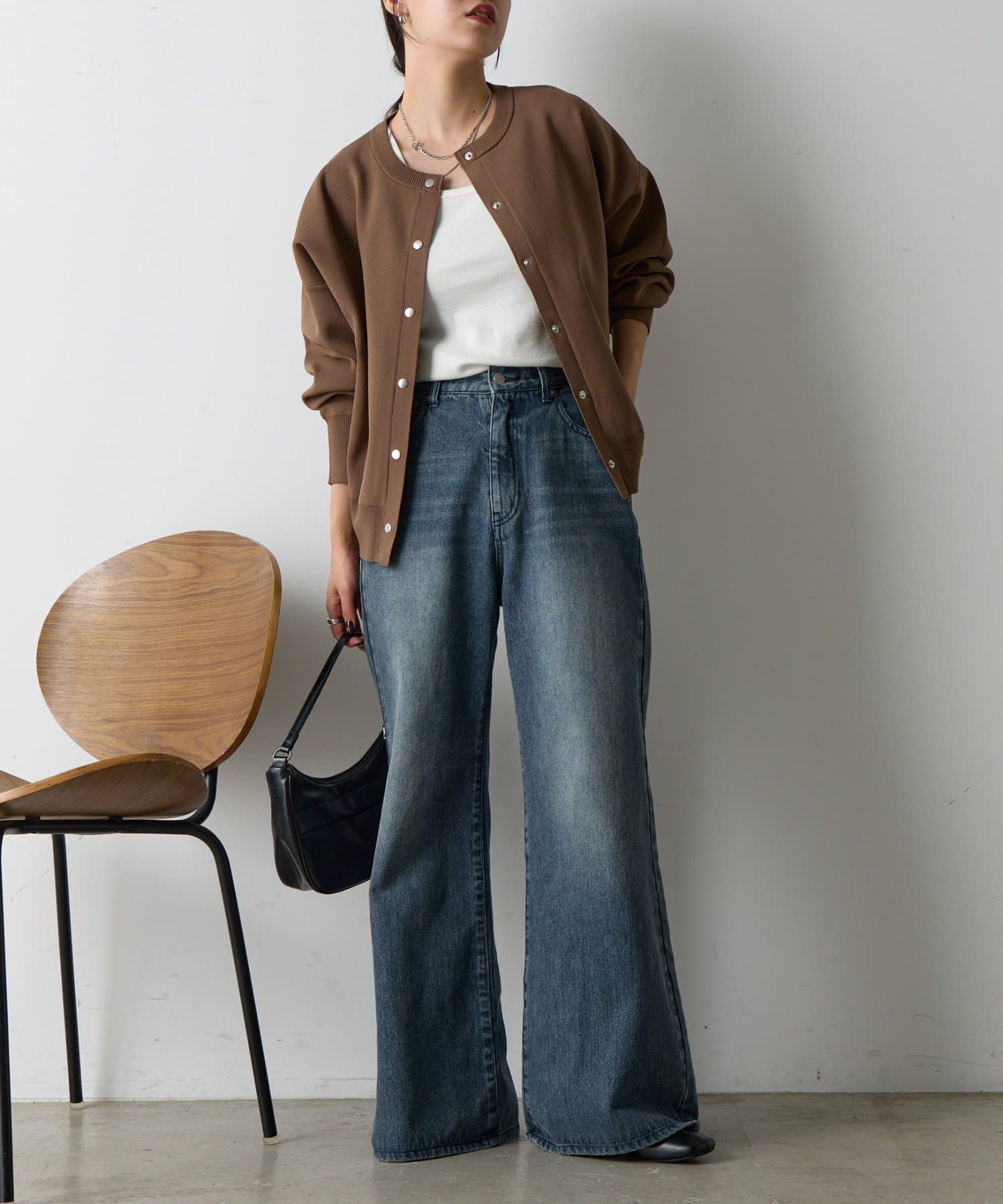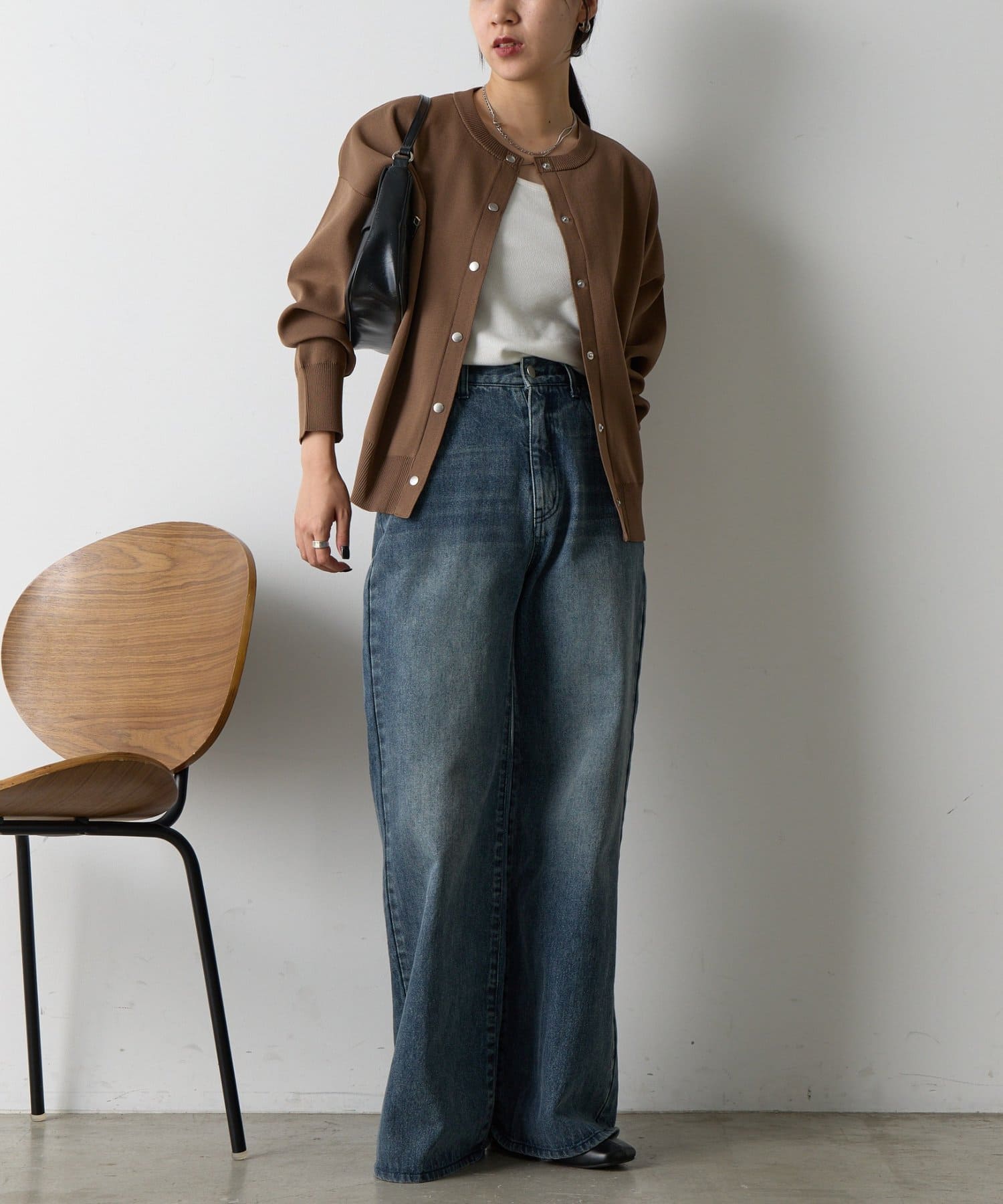 ボタンをとめてカーディガンを主役としても、ワンピースに肩掛けしてきれい目にもON/OFF問わず着ていただける一枚。