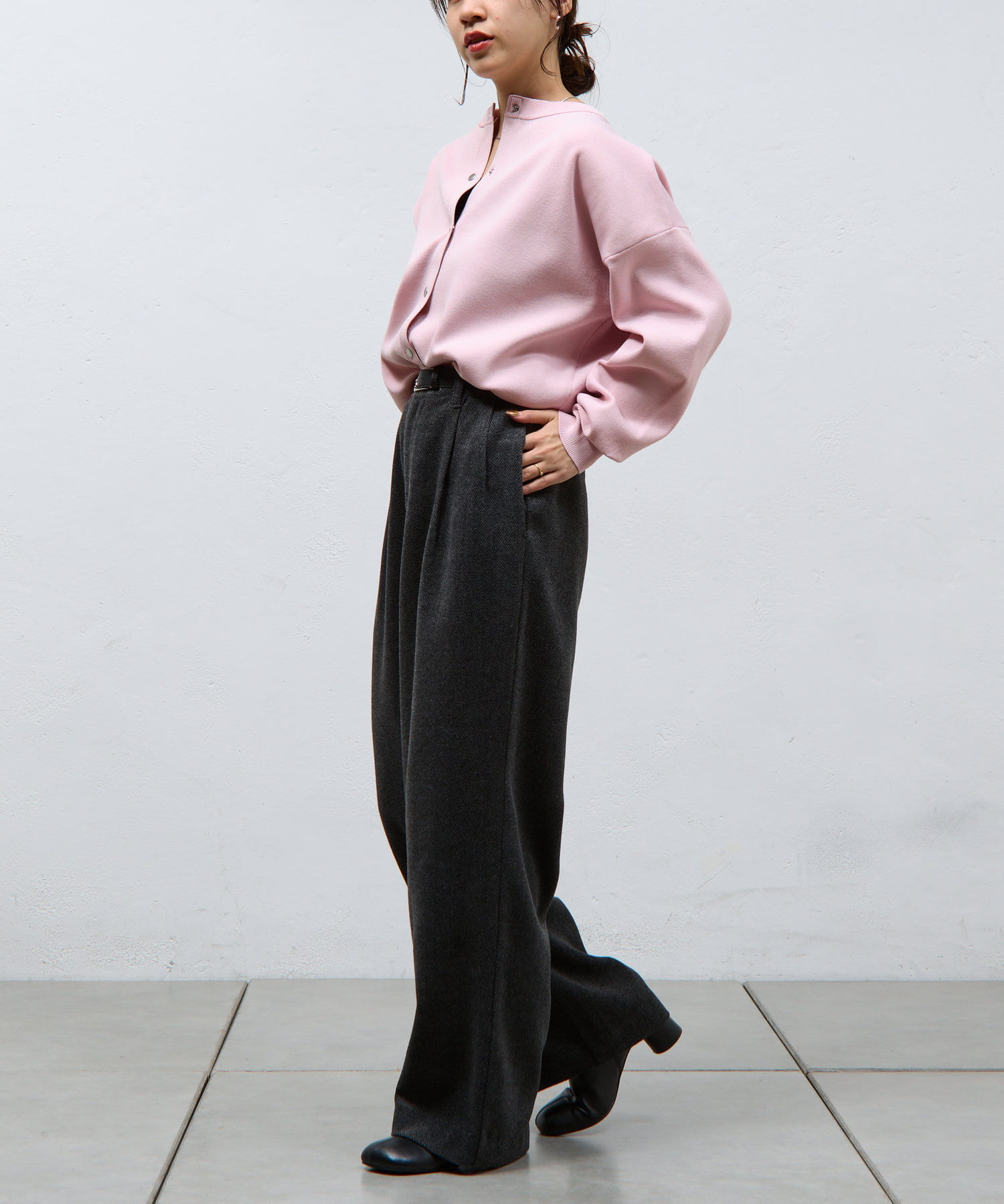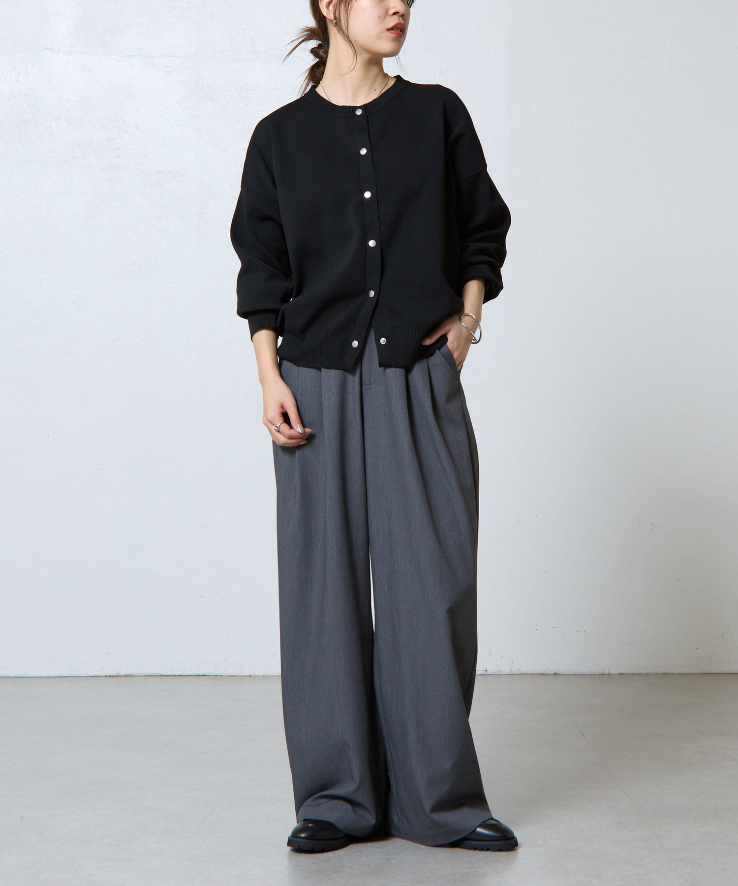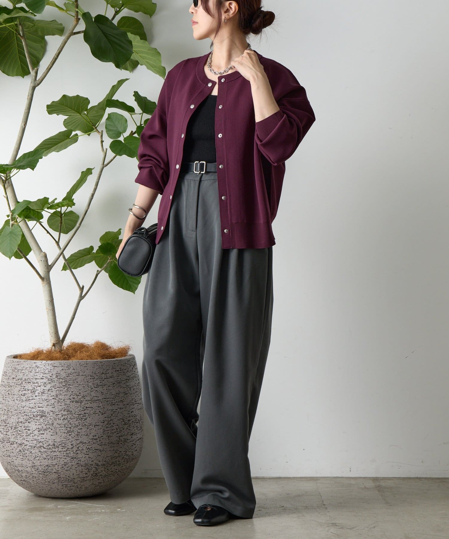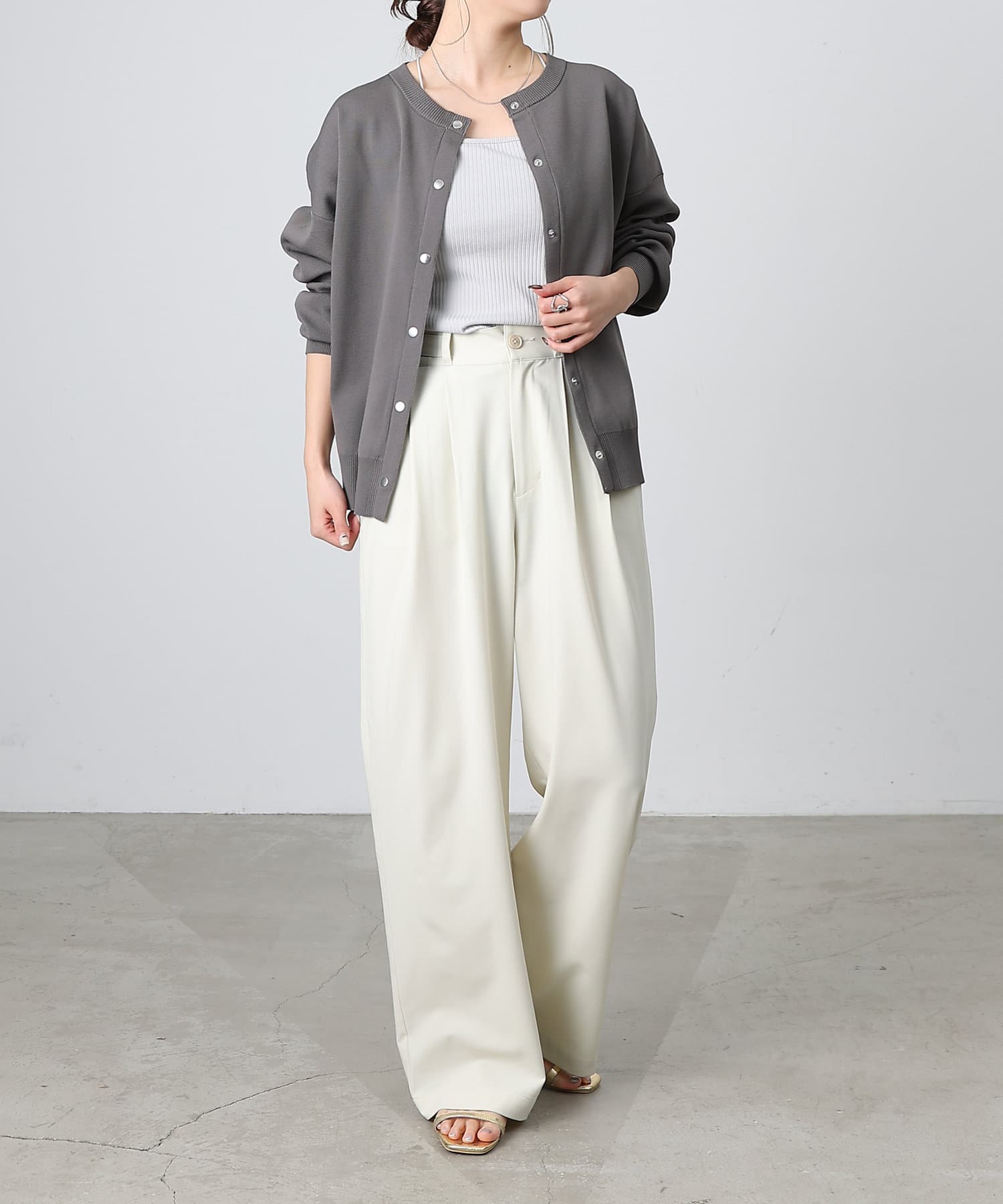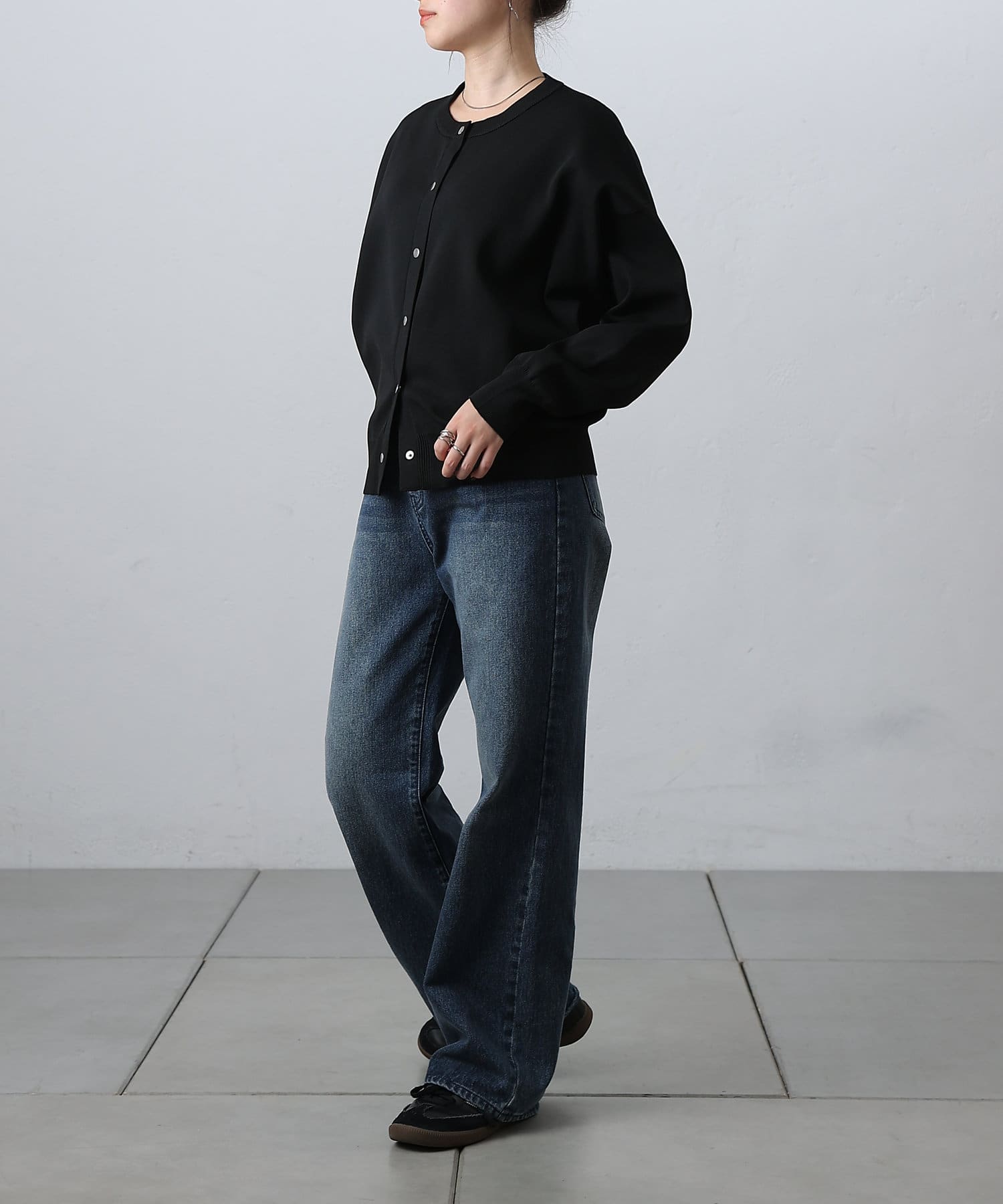 ボタンをとめてカーディガンを主役としても、ワンピースに肩掛けしてきれい目にもON/OFF問わず着ていただける一枚。