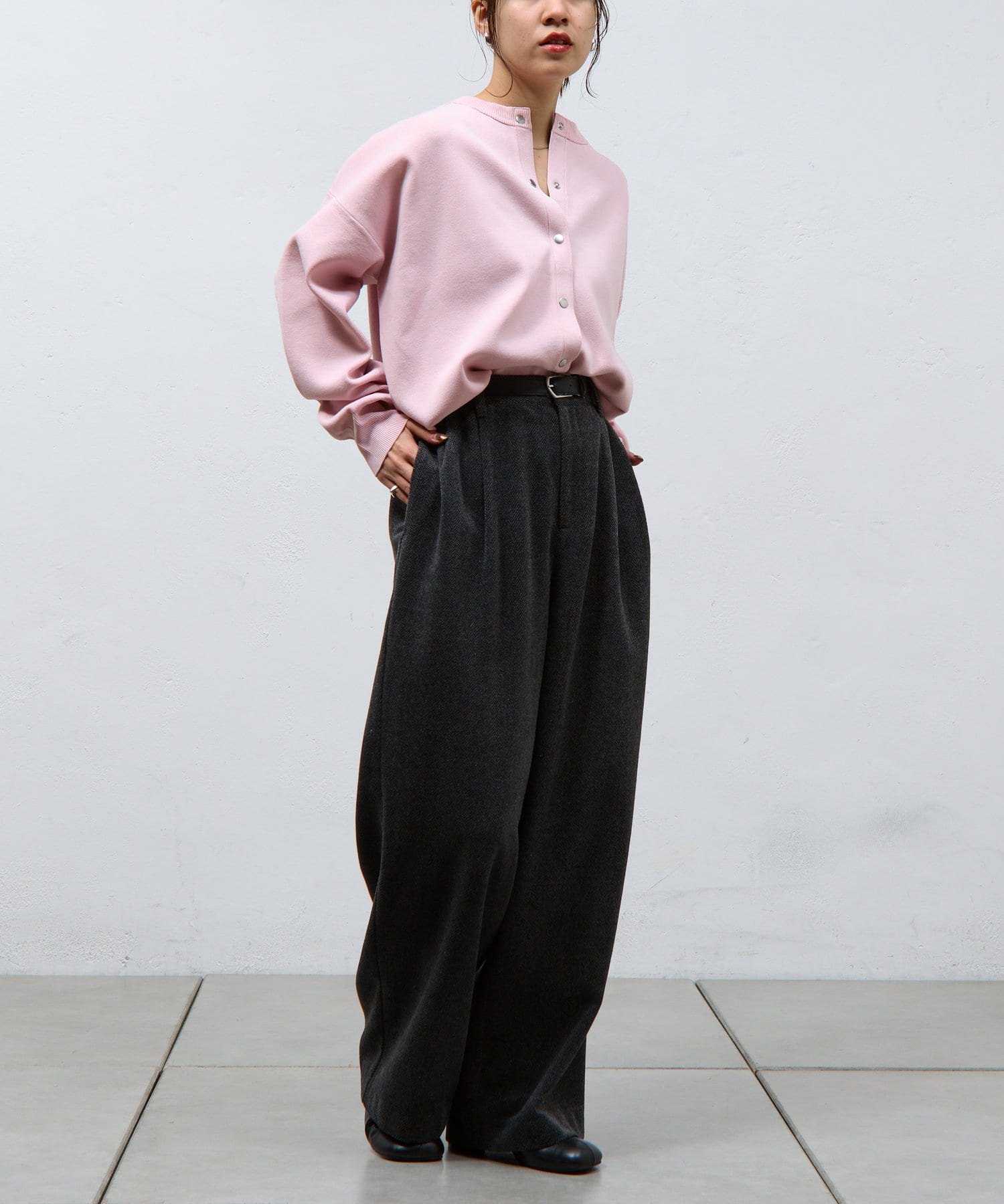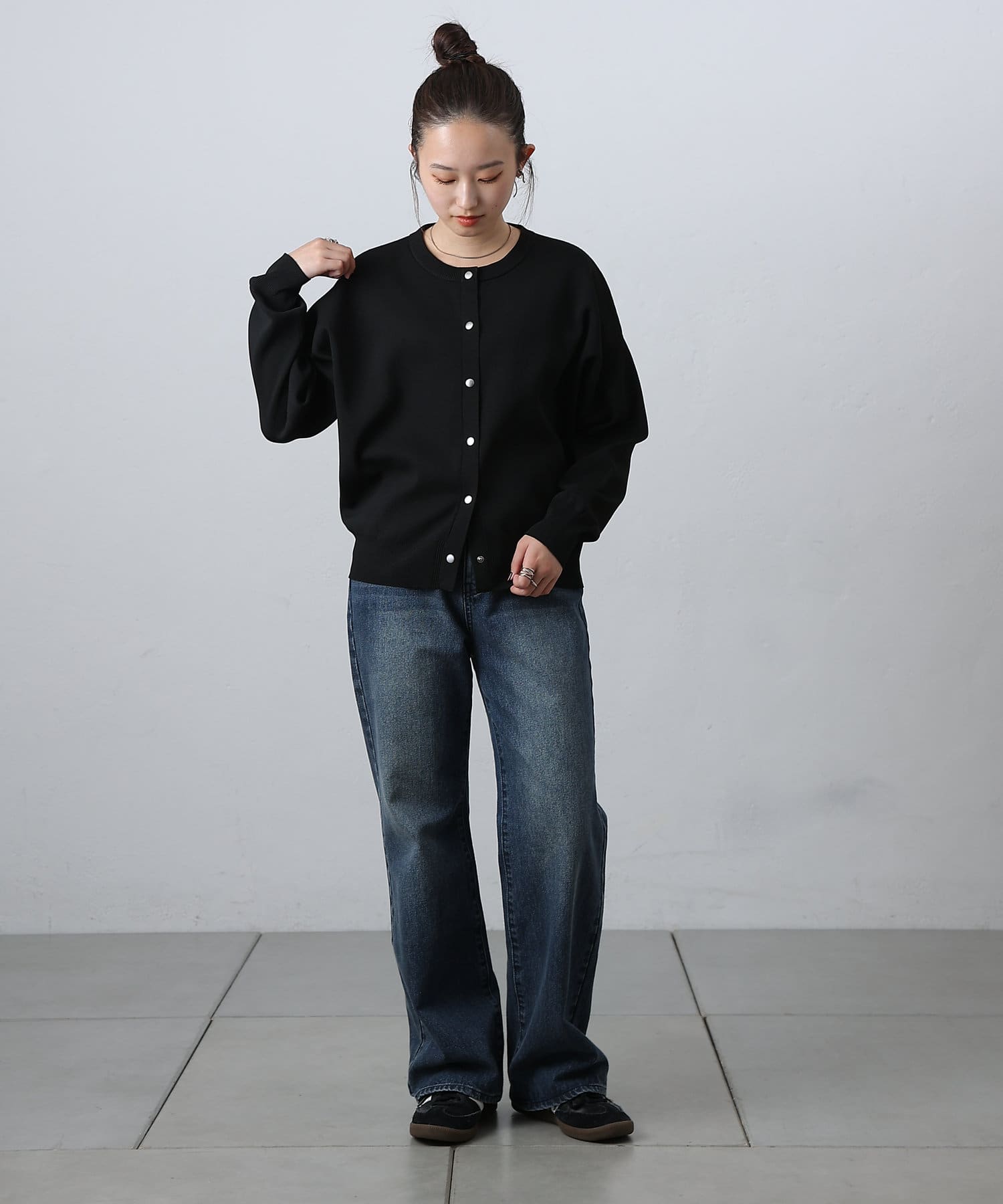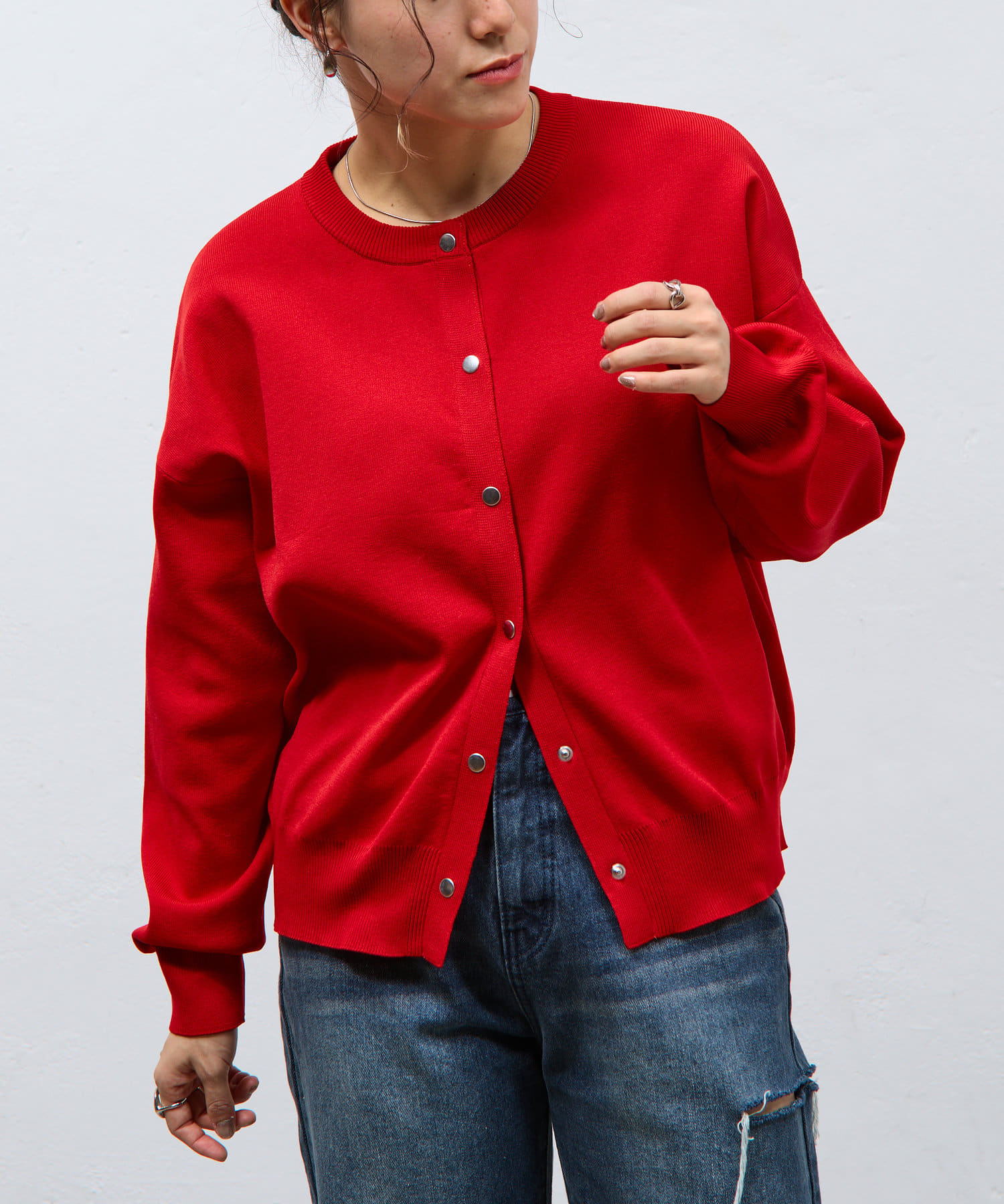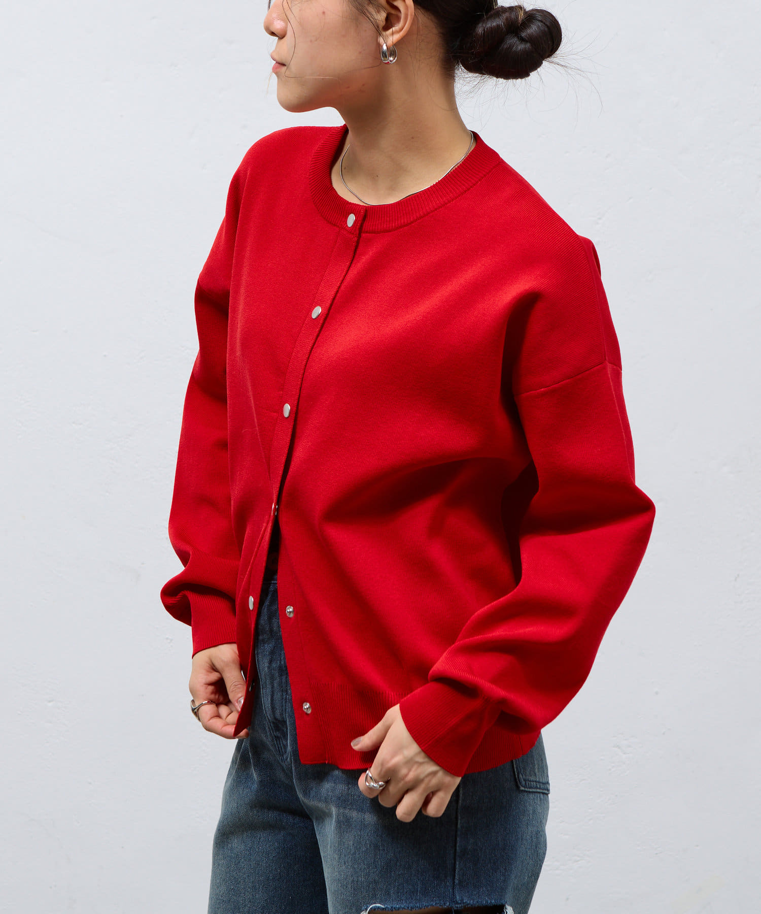 ボタンをとめてカーディガンを主役としても、ワンピースに肩掛けしてきれい目にもON/OFF問わず着ていただける一枚。