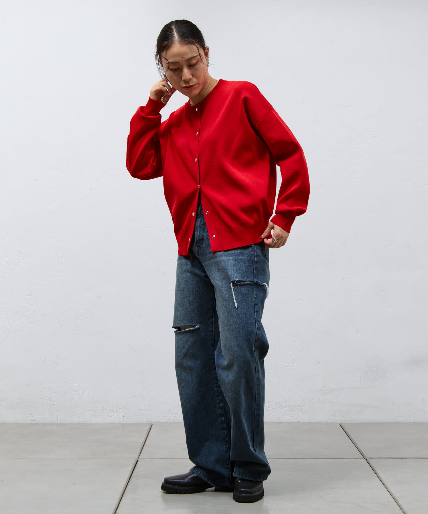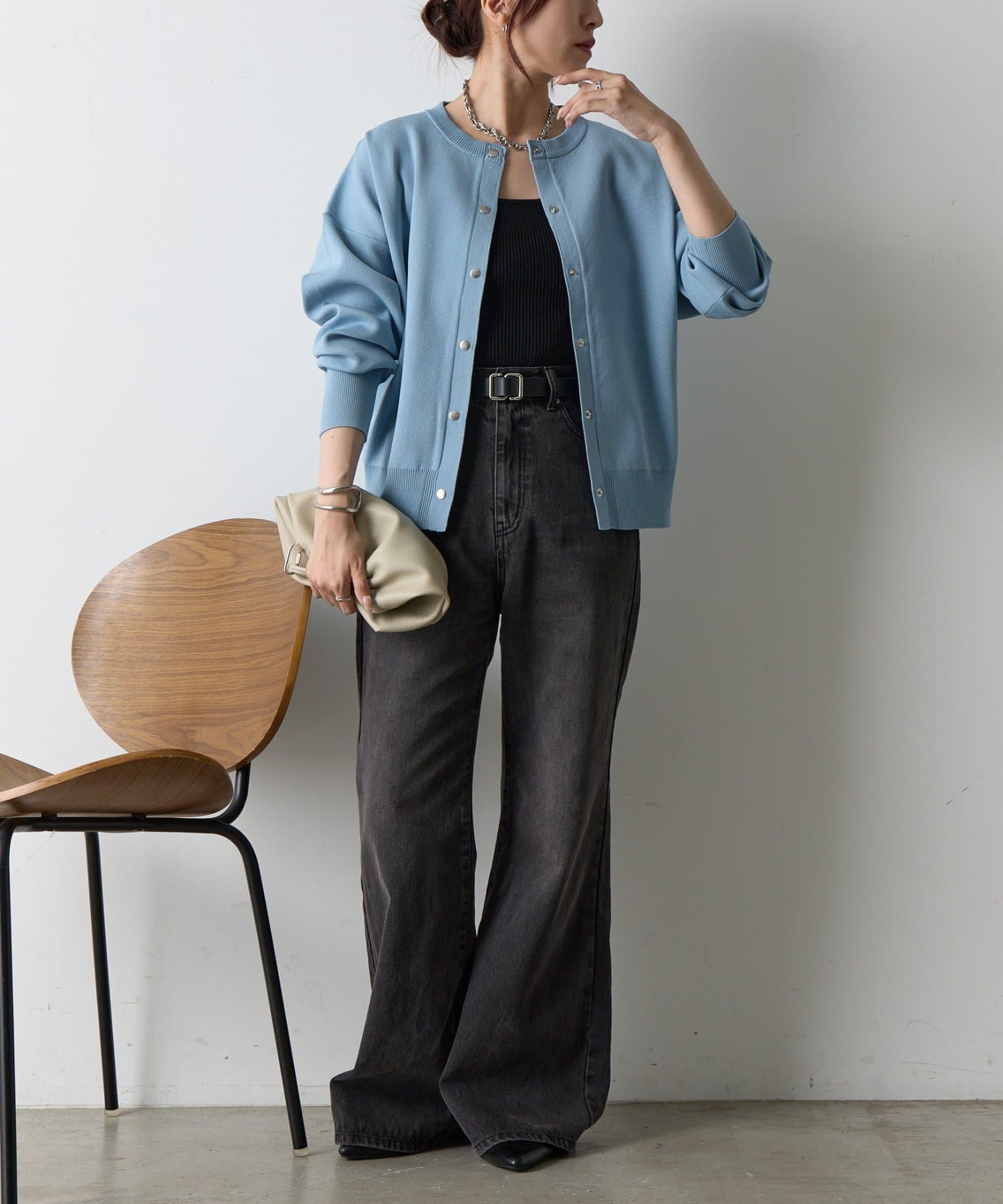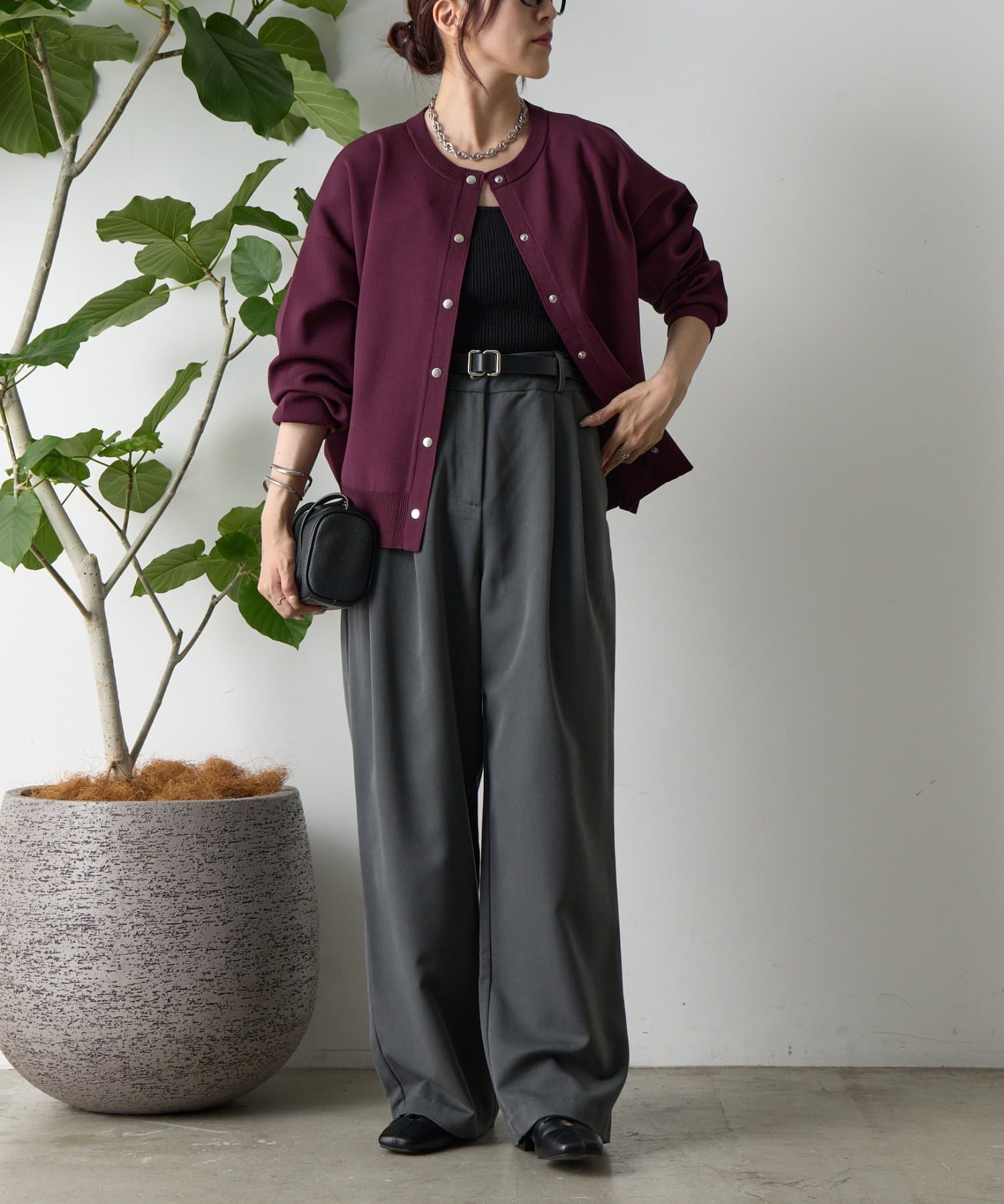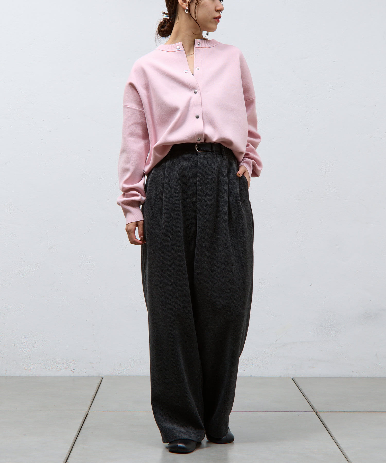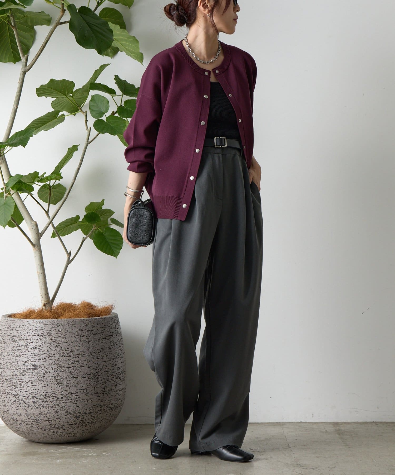 ボタンをとめてカーディガンを主役としても、ワンピースに肩掛けしてきれい目にもON/OFF問わず着ていただける一枚。