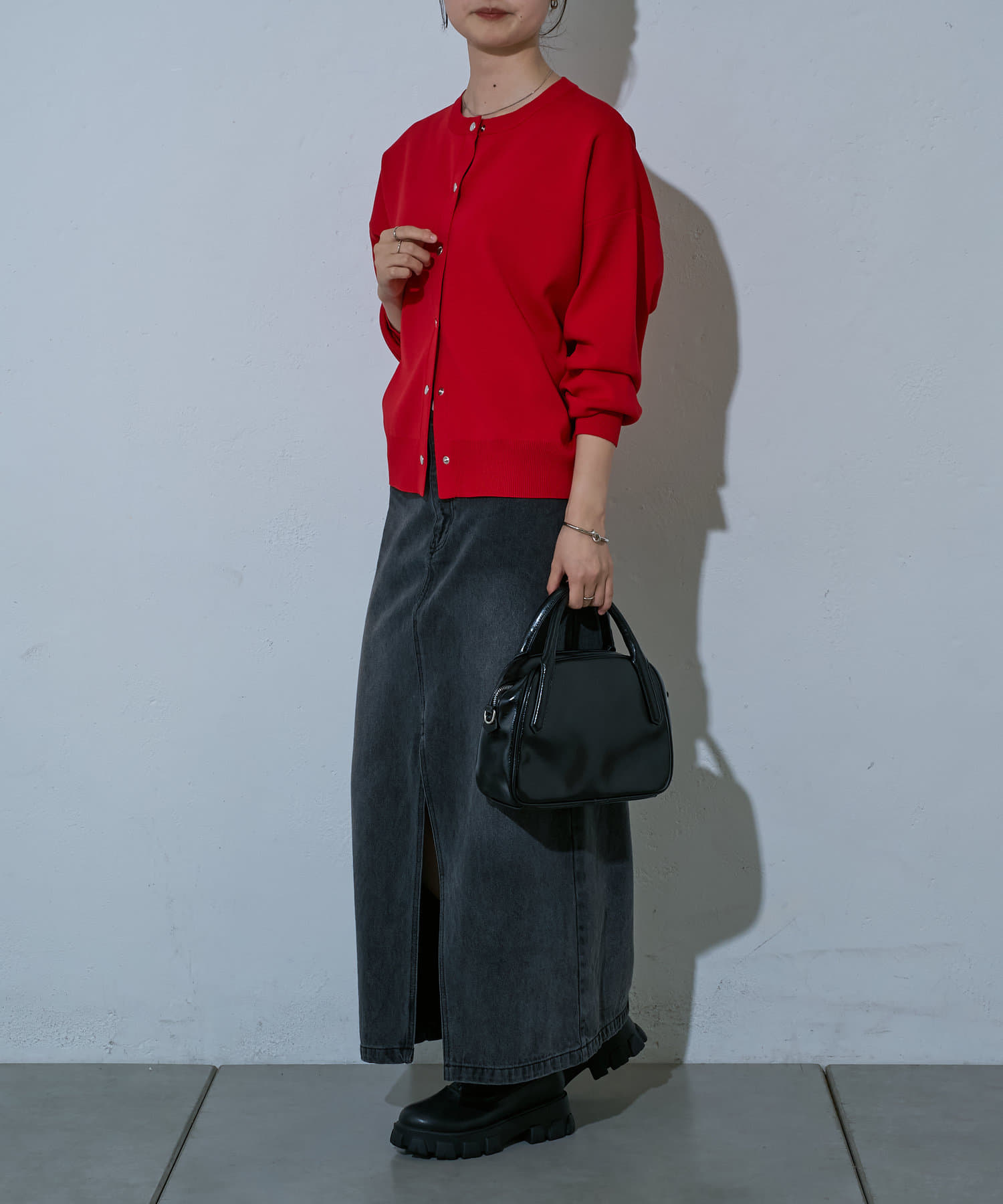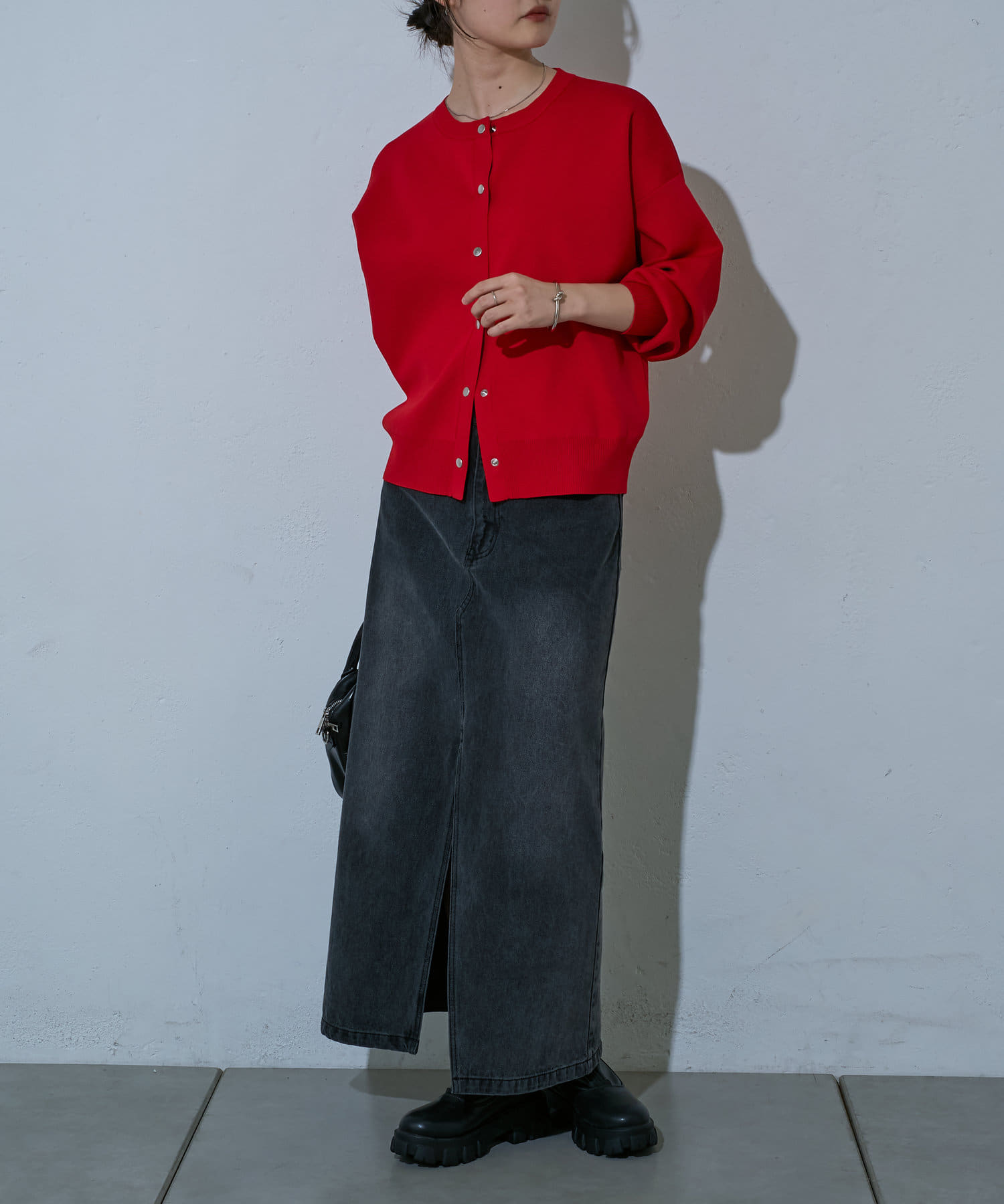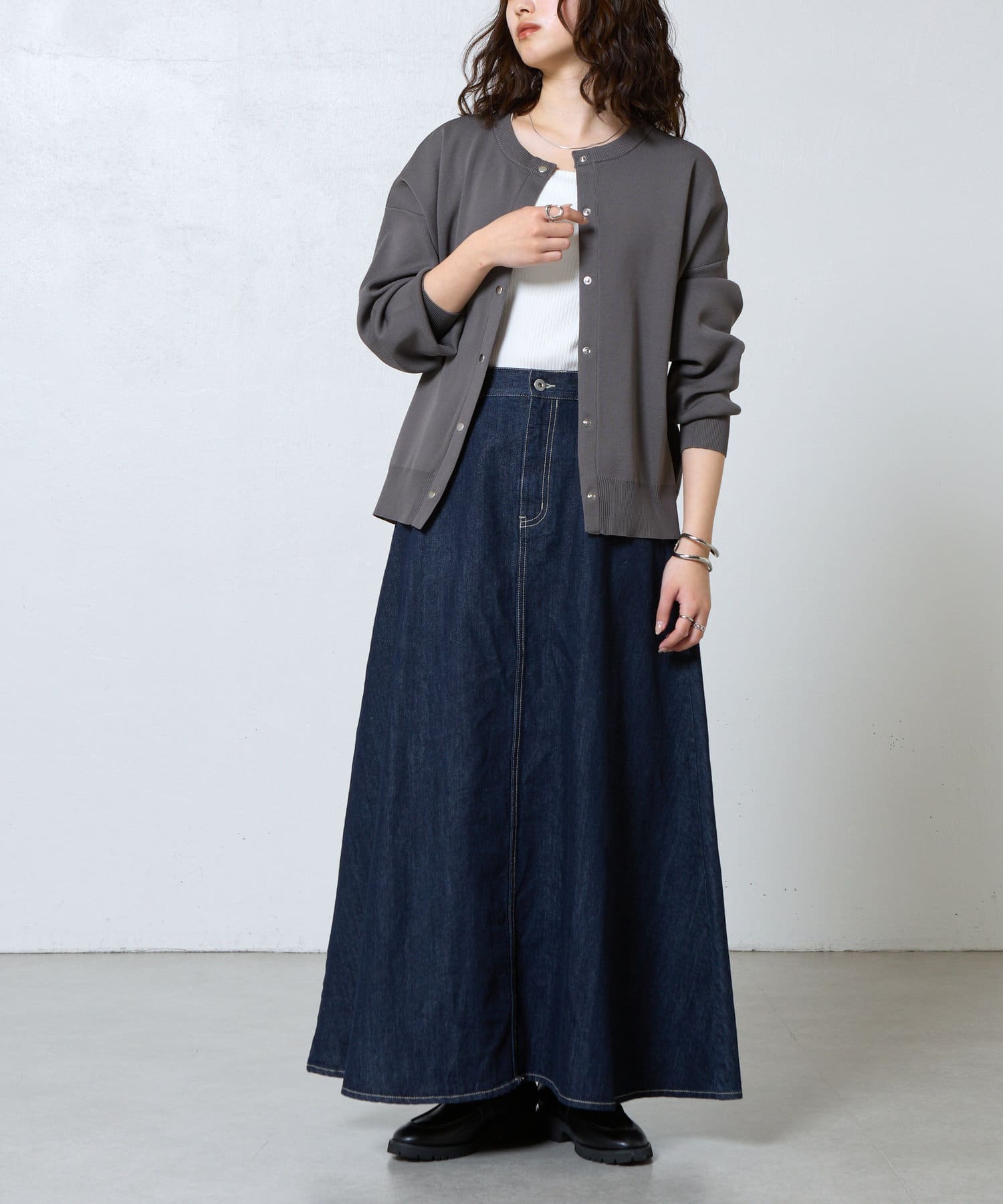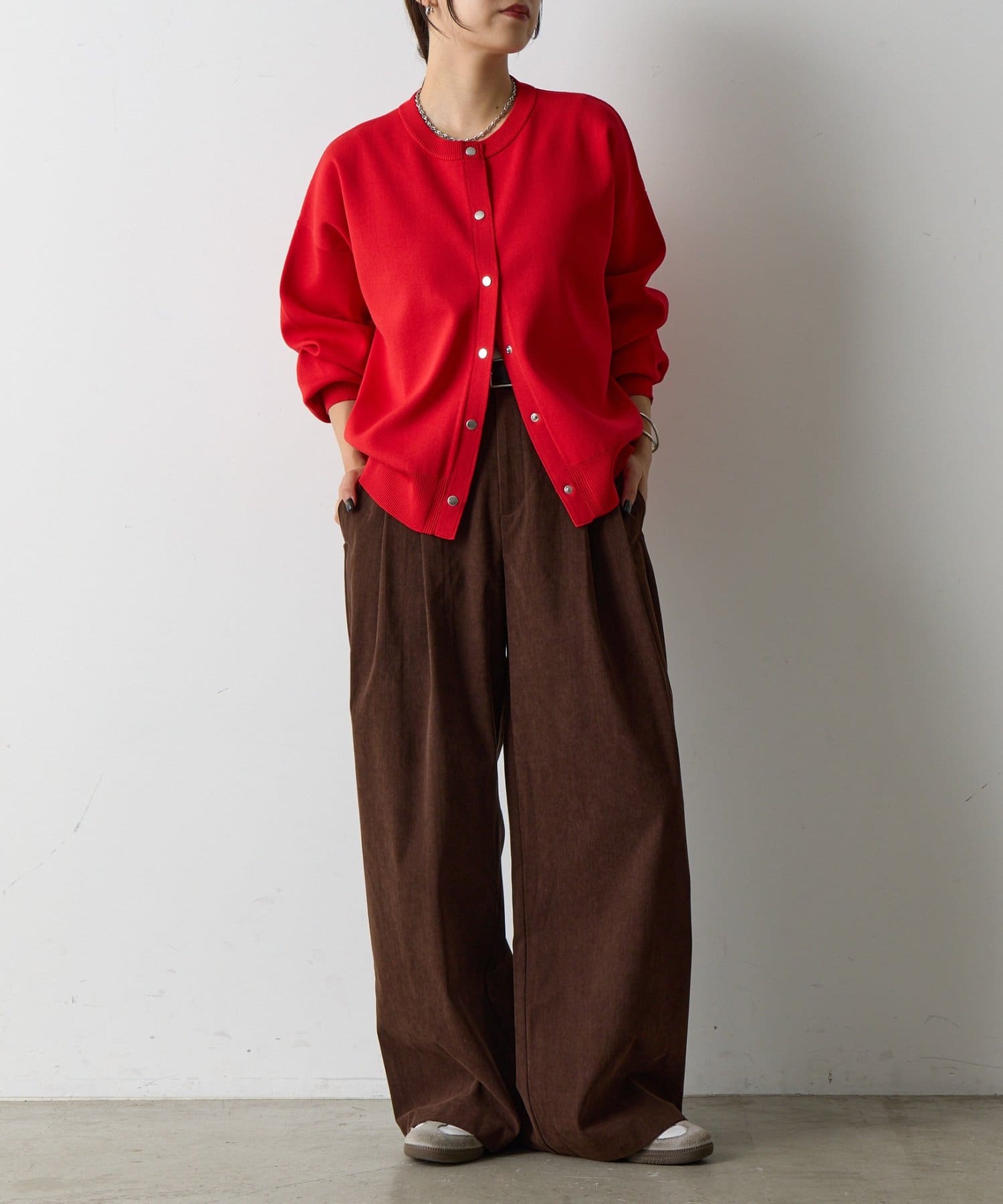 シンプルなデザインで、着回し力抜群のカーディガン。