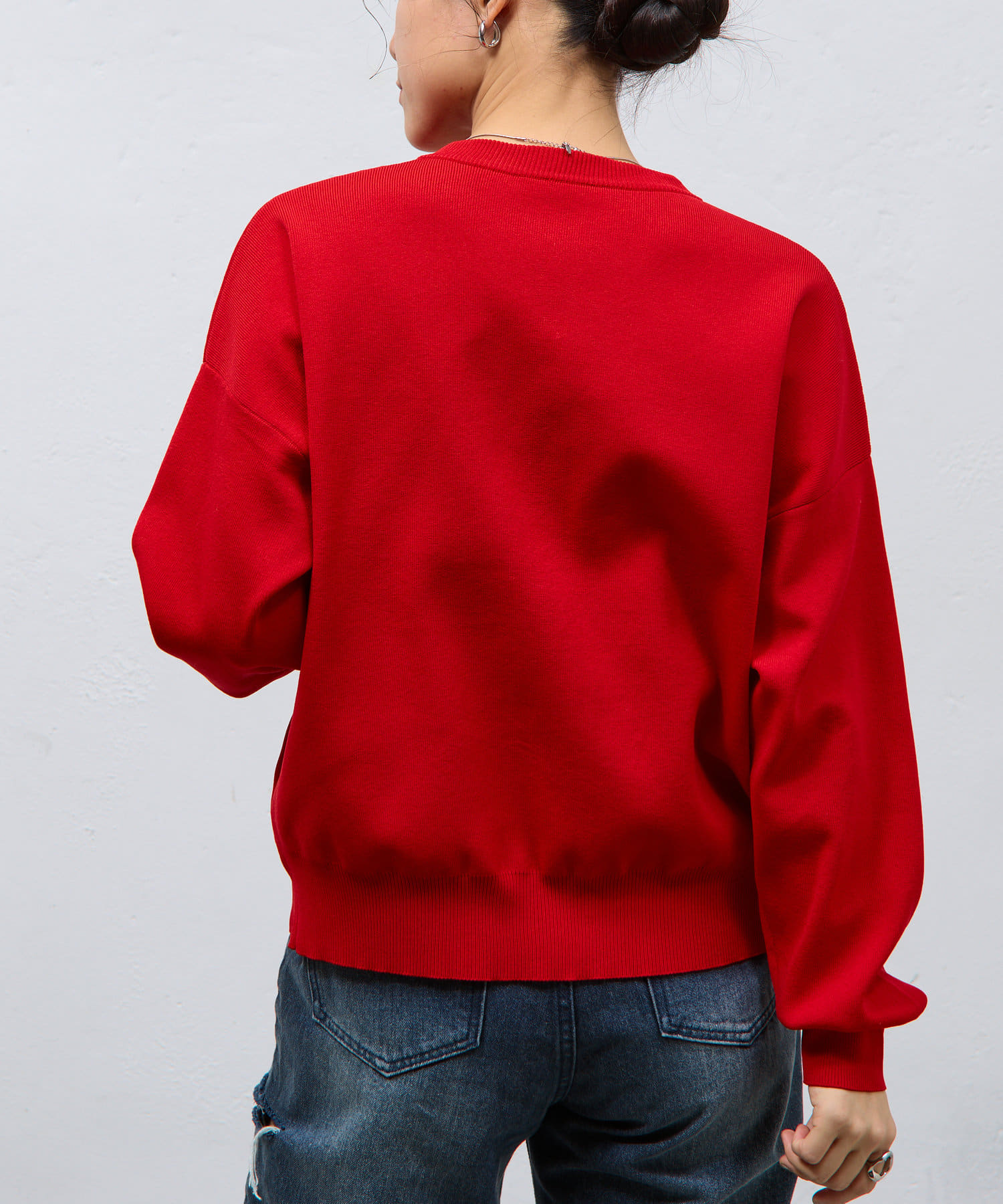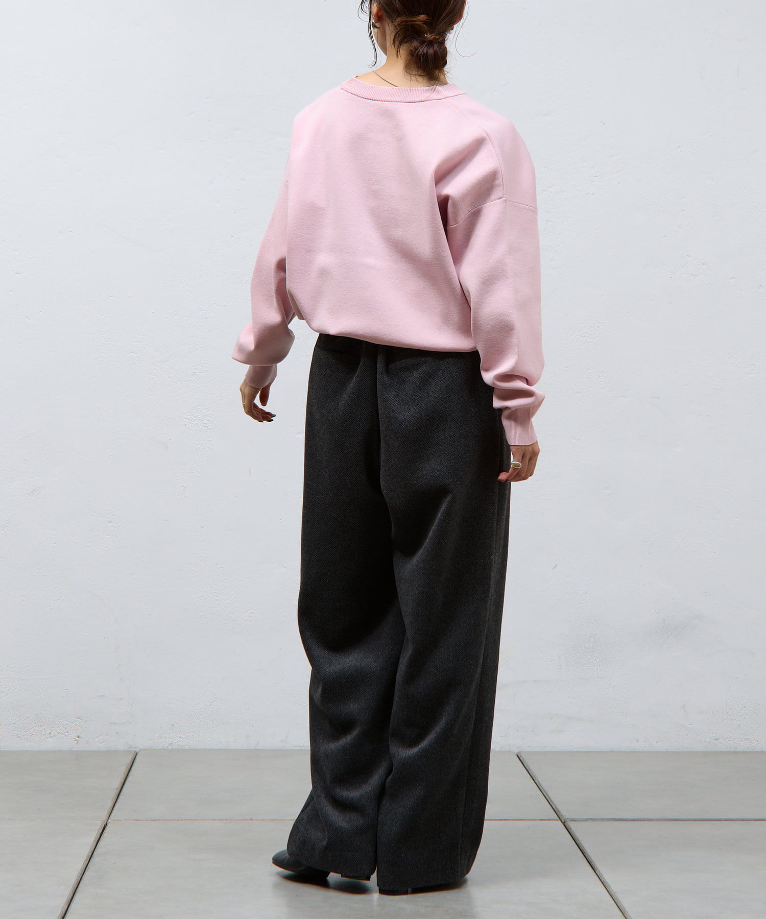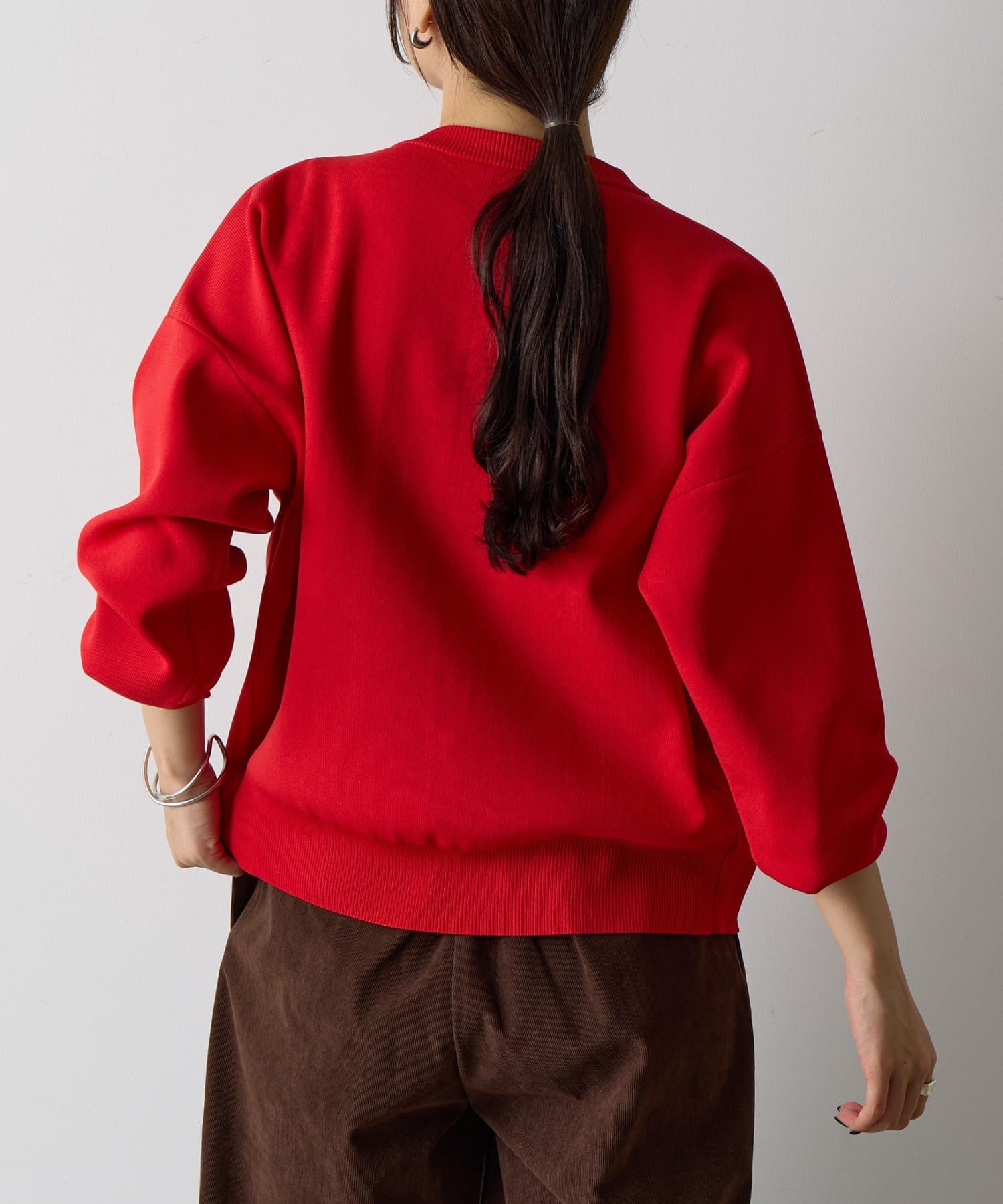 デコルテや顔周りをすっきりと見せてくれるクルーネックタイプです。