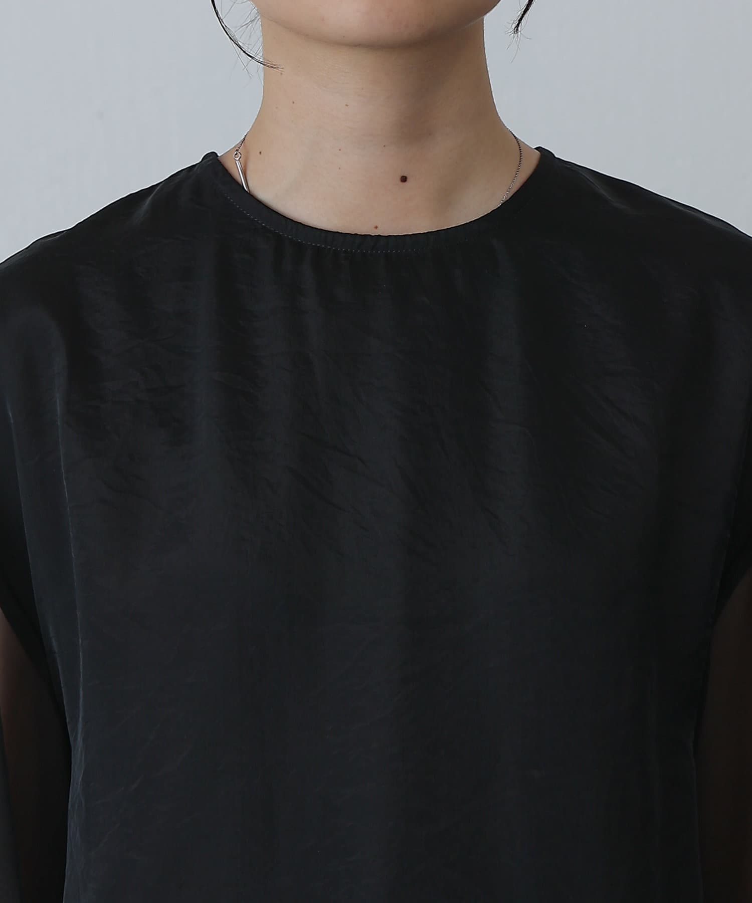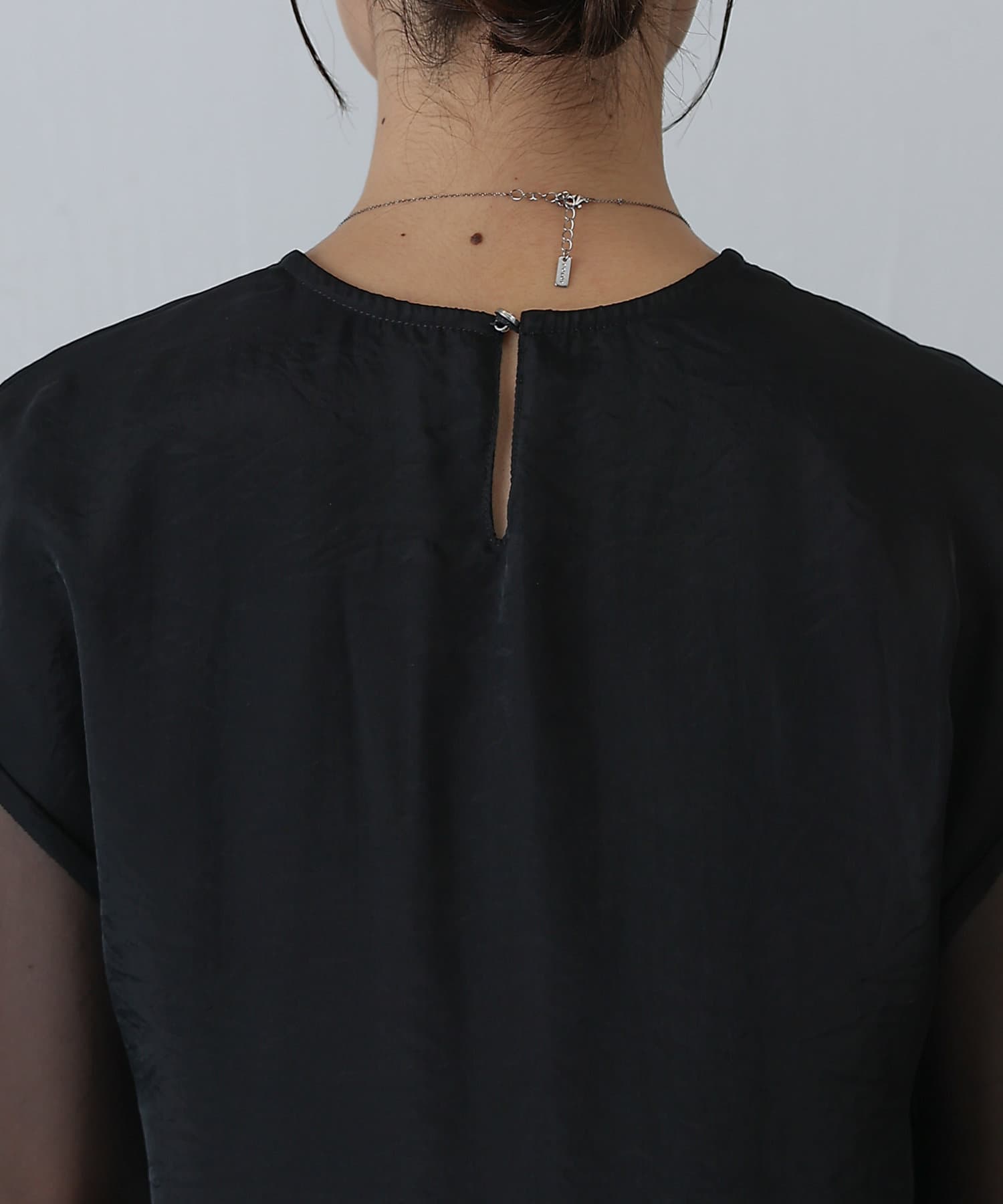 オーガンジー中の素材がカットソー素材なので着やすいと思います。