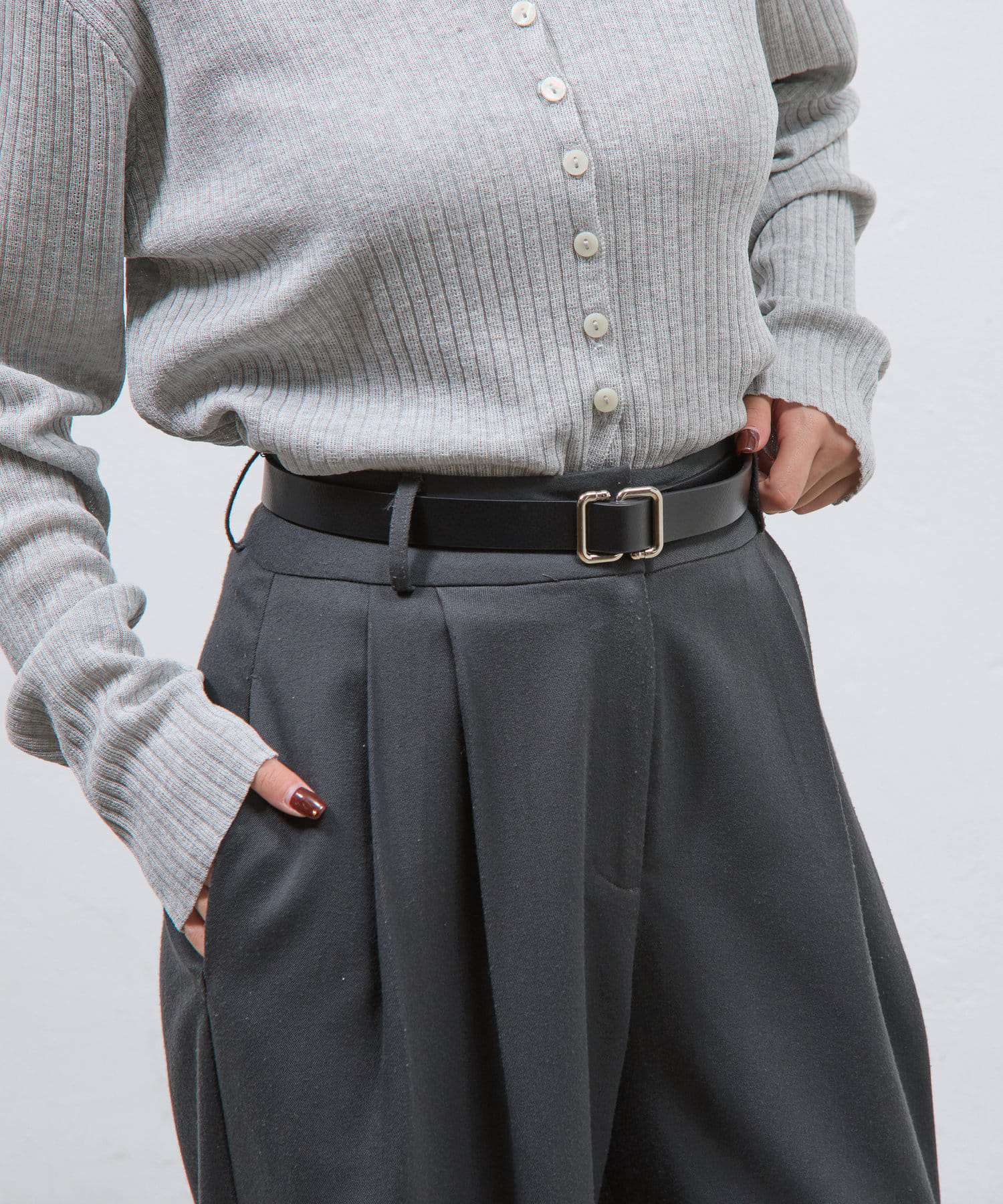 いつもの服装にウエストマークするだけでスタイルにメリハリが生まれて、おしゃれ度がアップします