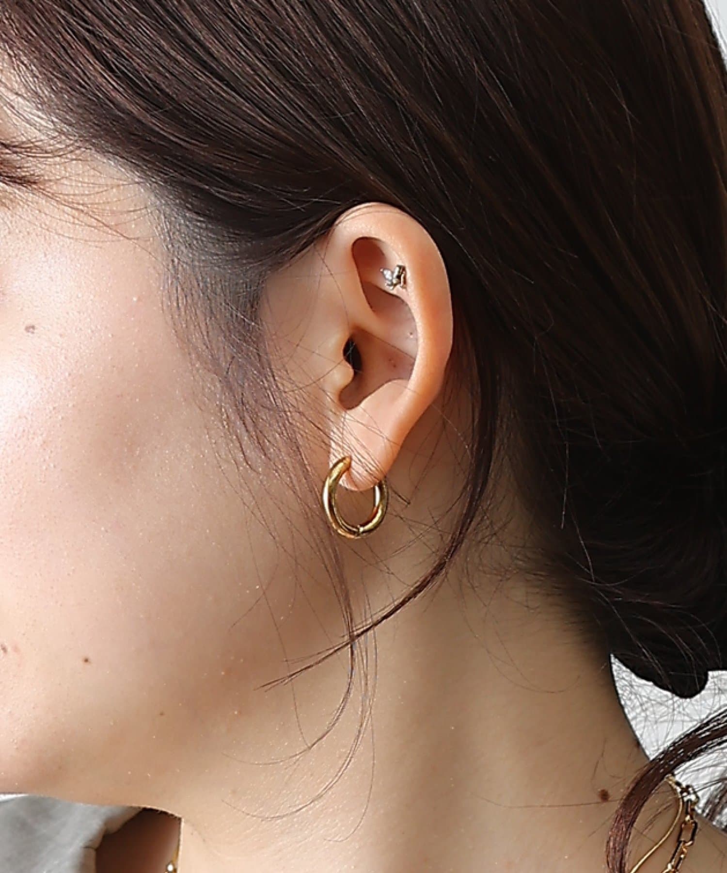 ちょうど良いサイズで使いやすく、飽きのこないシンプルさが魅力のフープピアス。