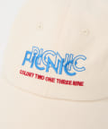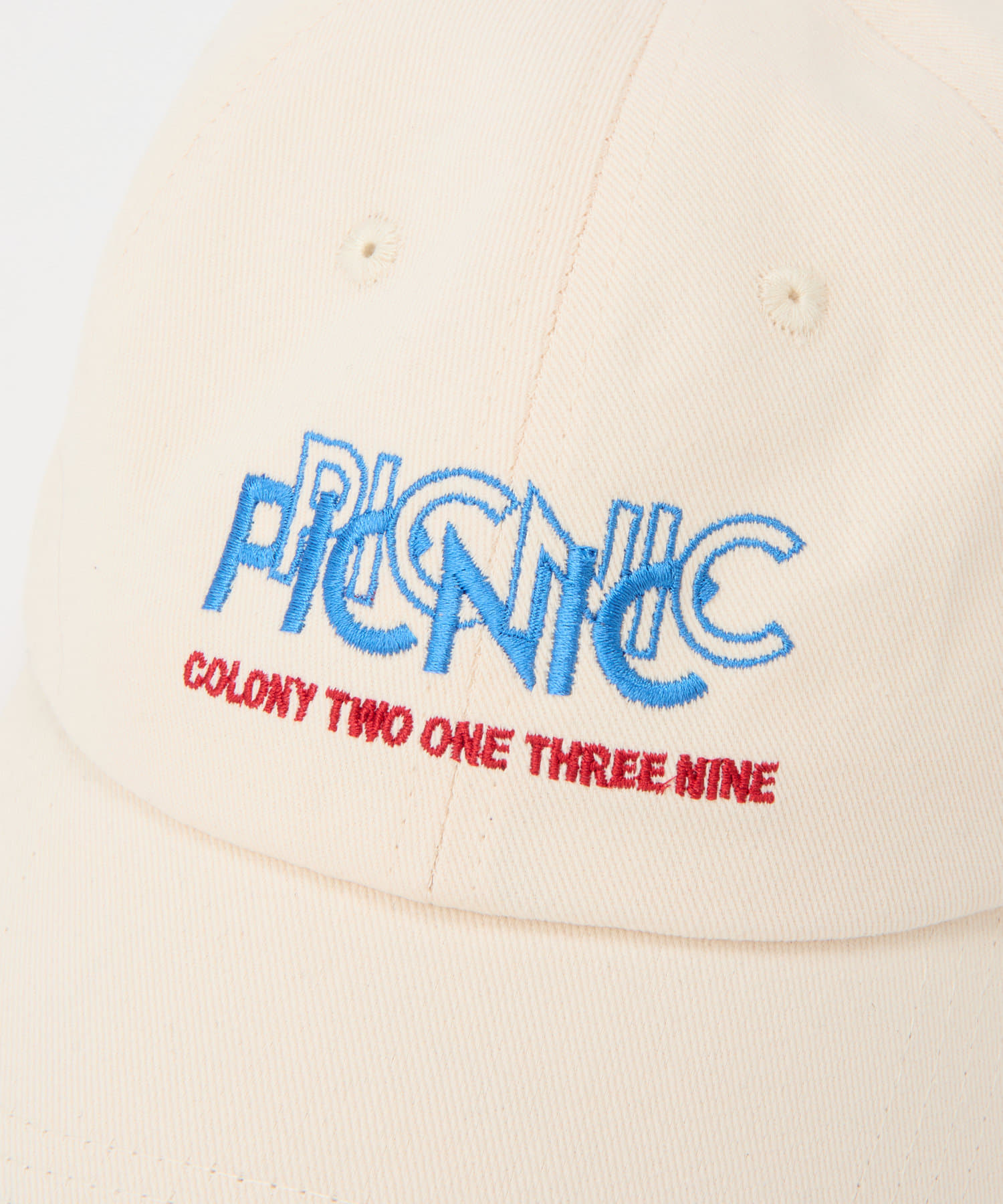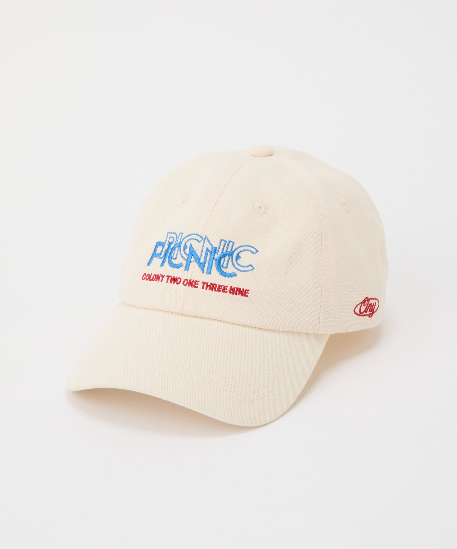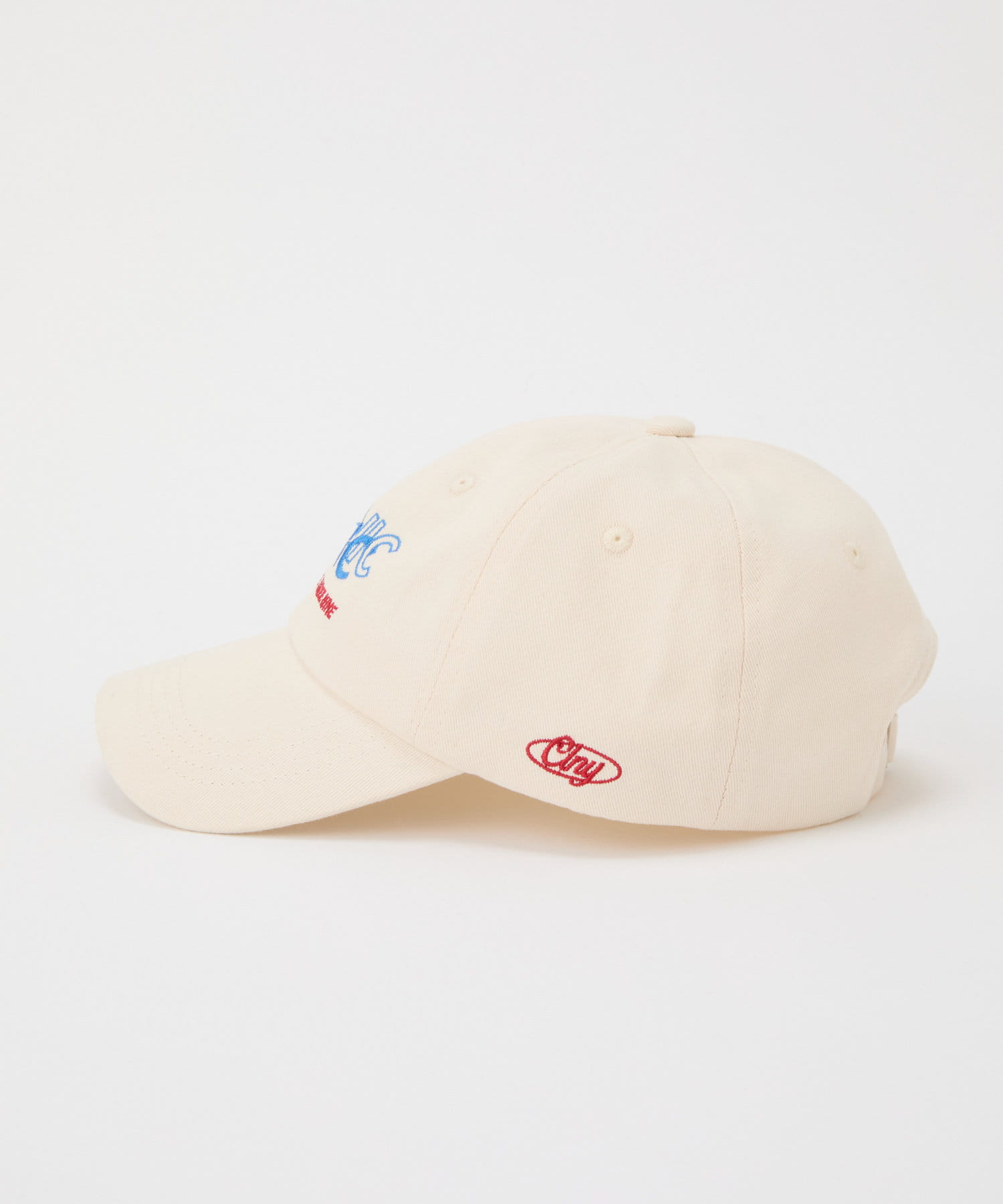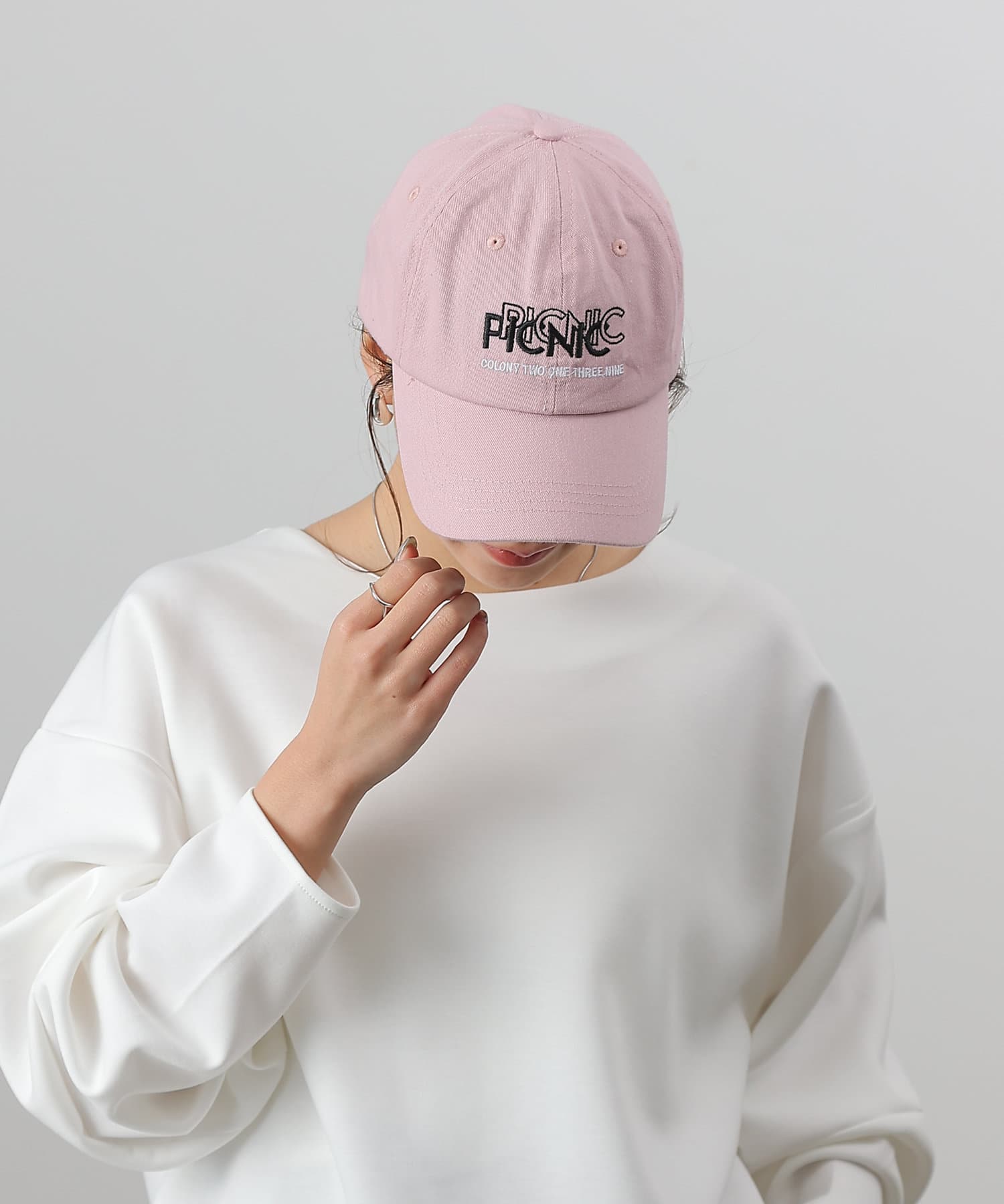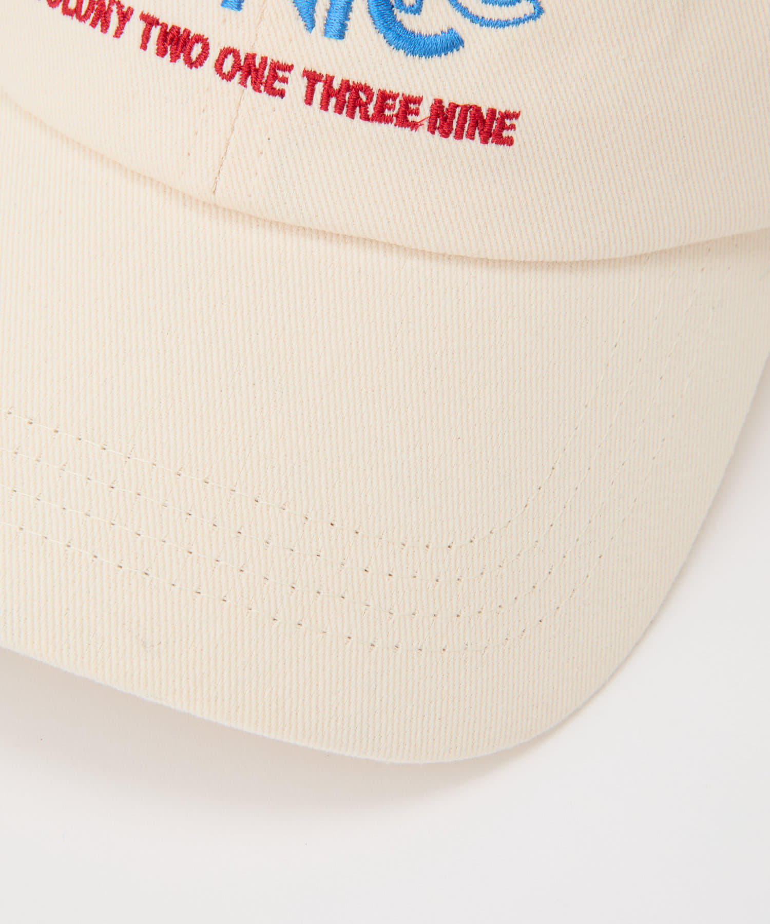 【大きめのロゴ刺繍がポイントのツイル刺繍キャップ】