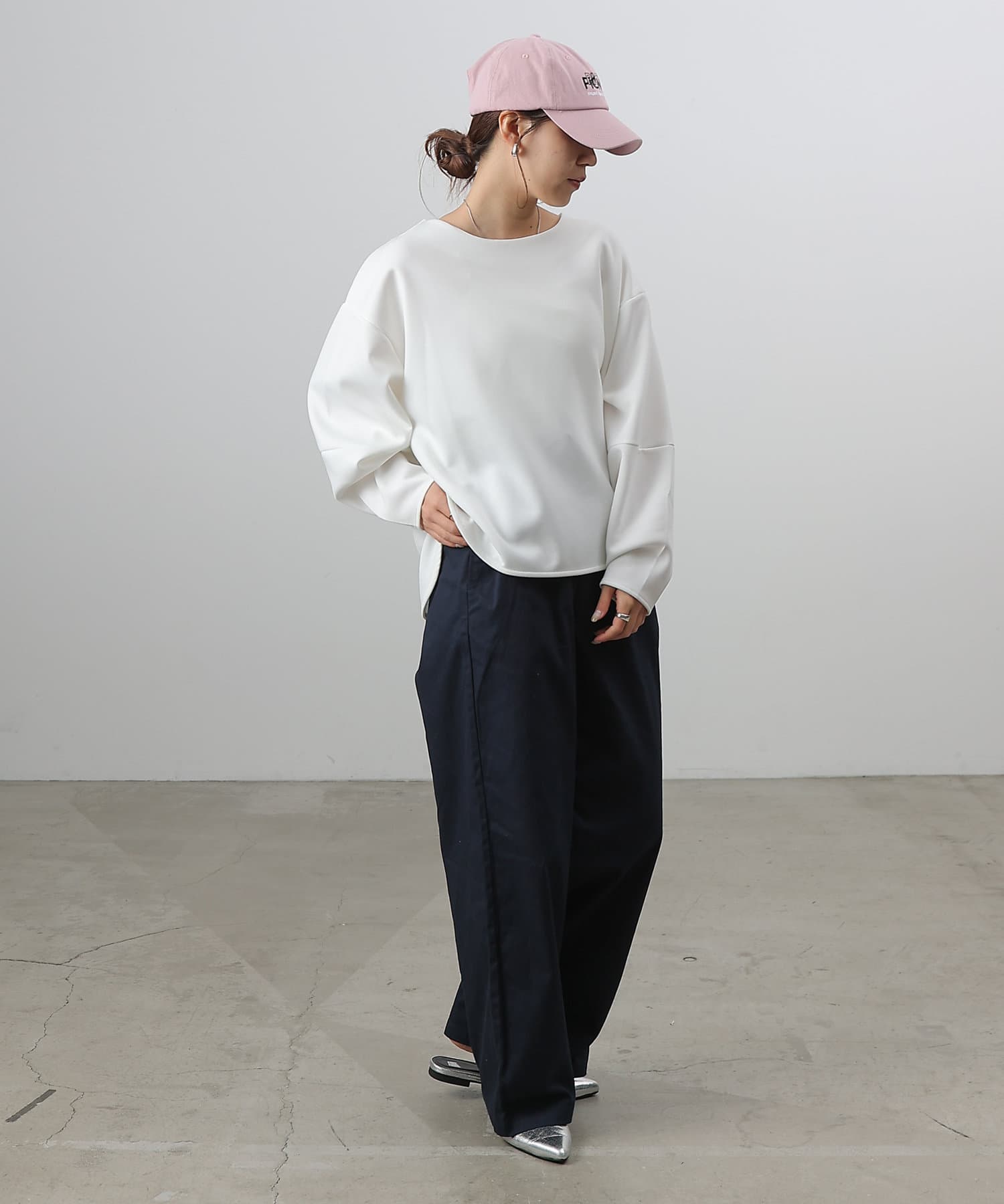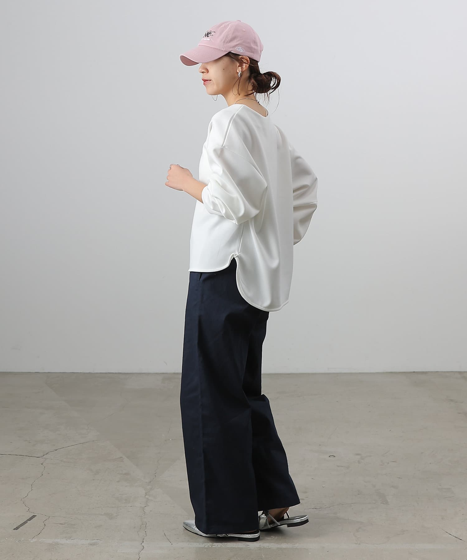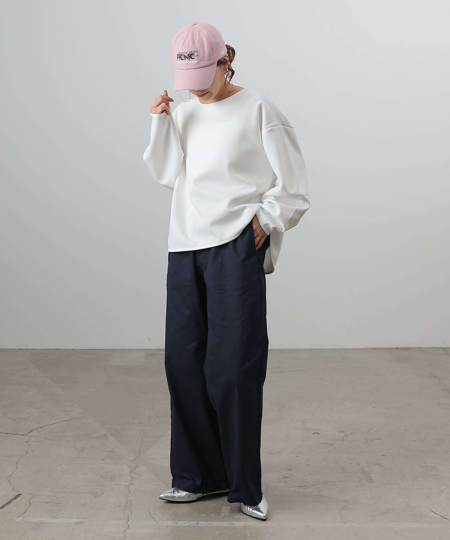 ・センターの大きめのロゴ刺繍がコーデのアクセントに