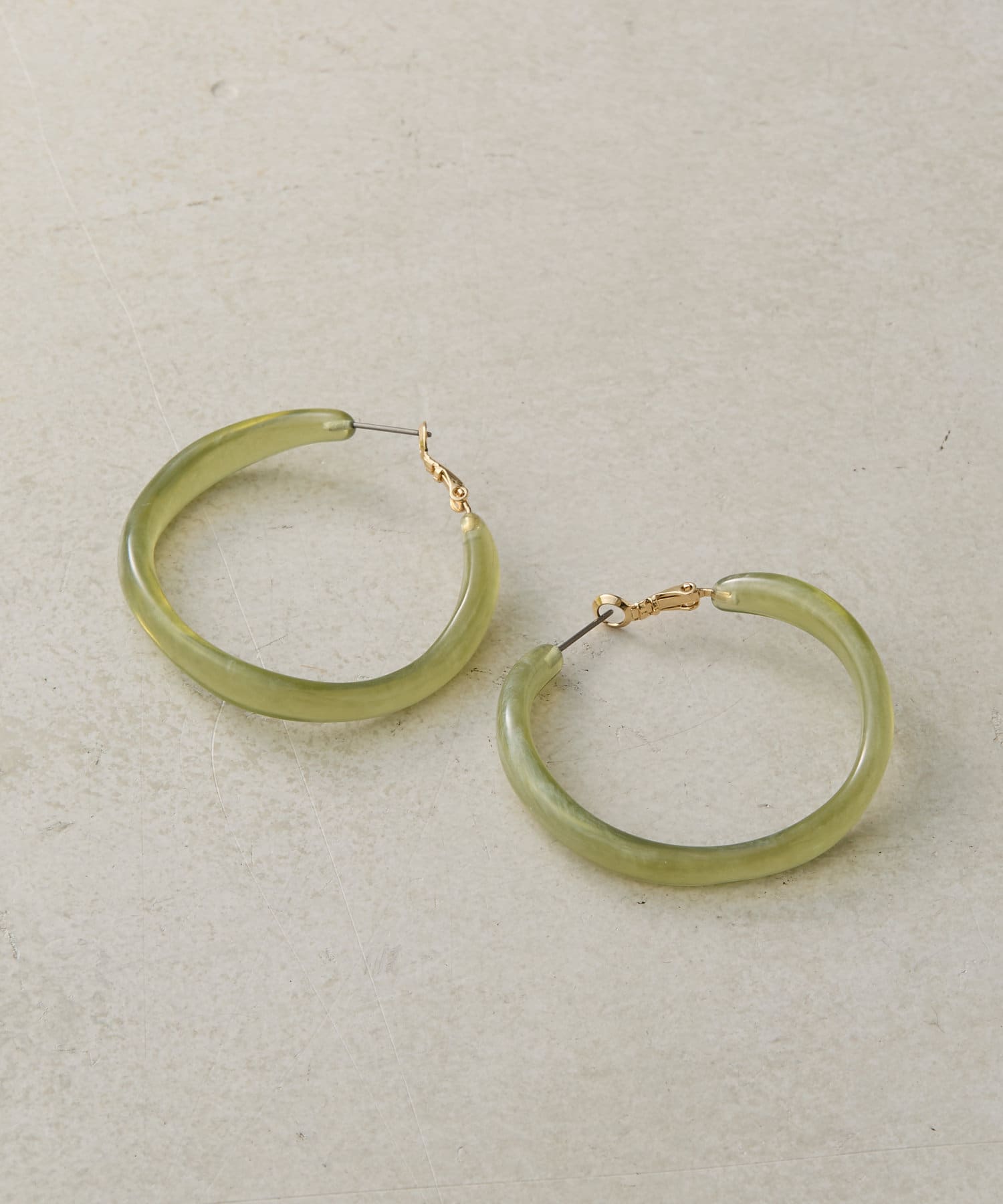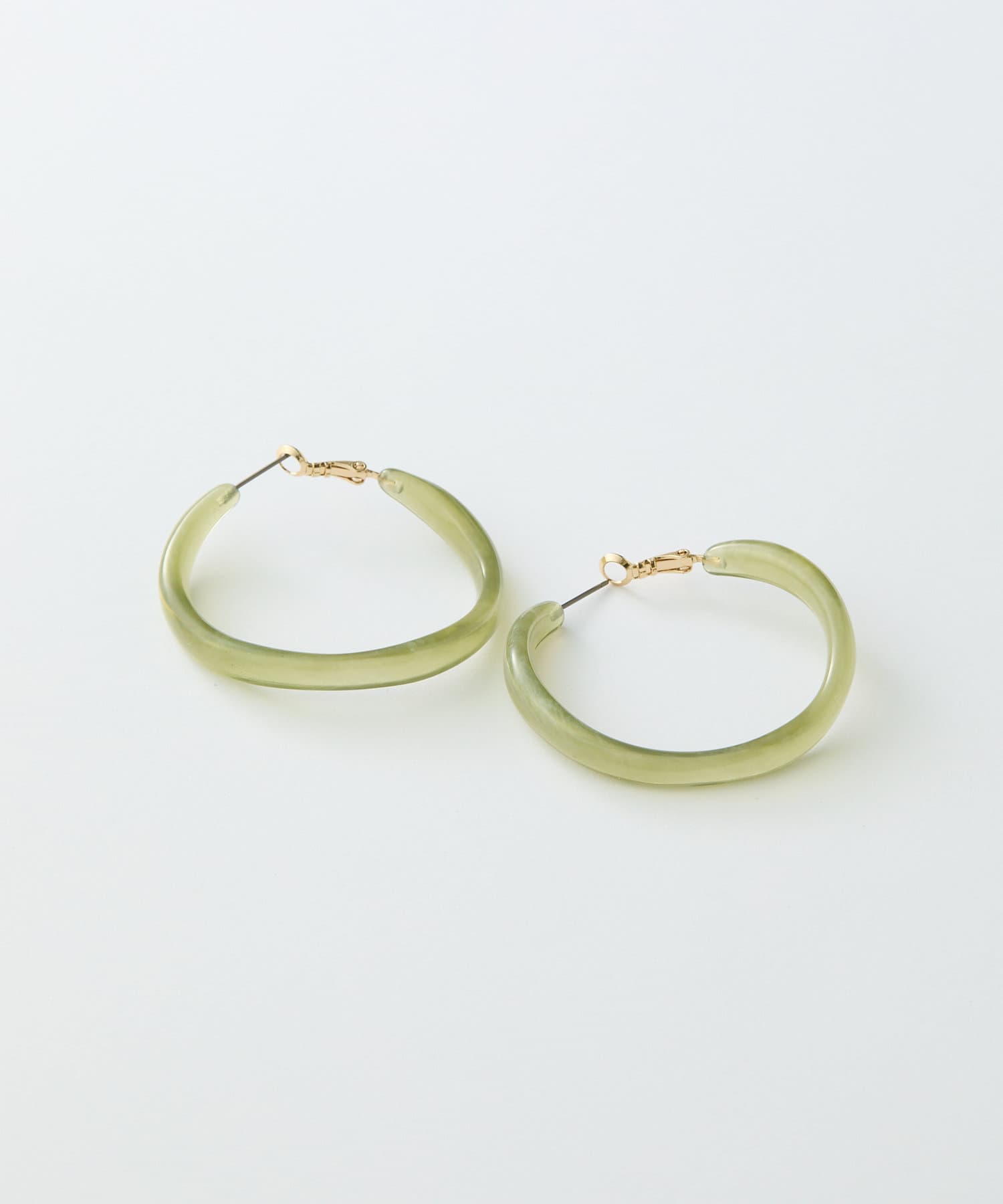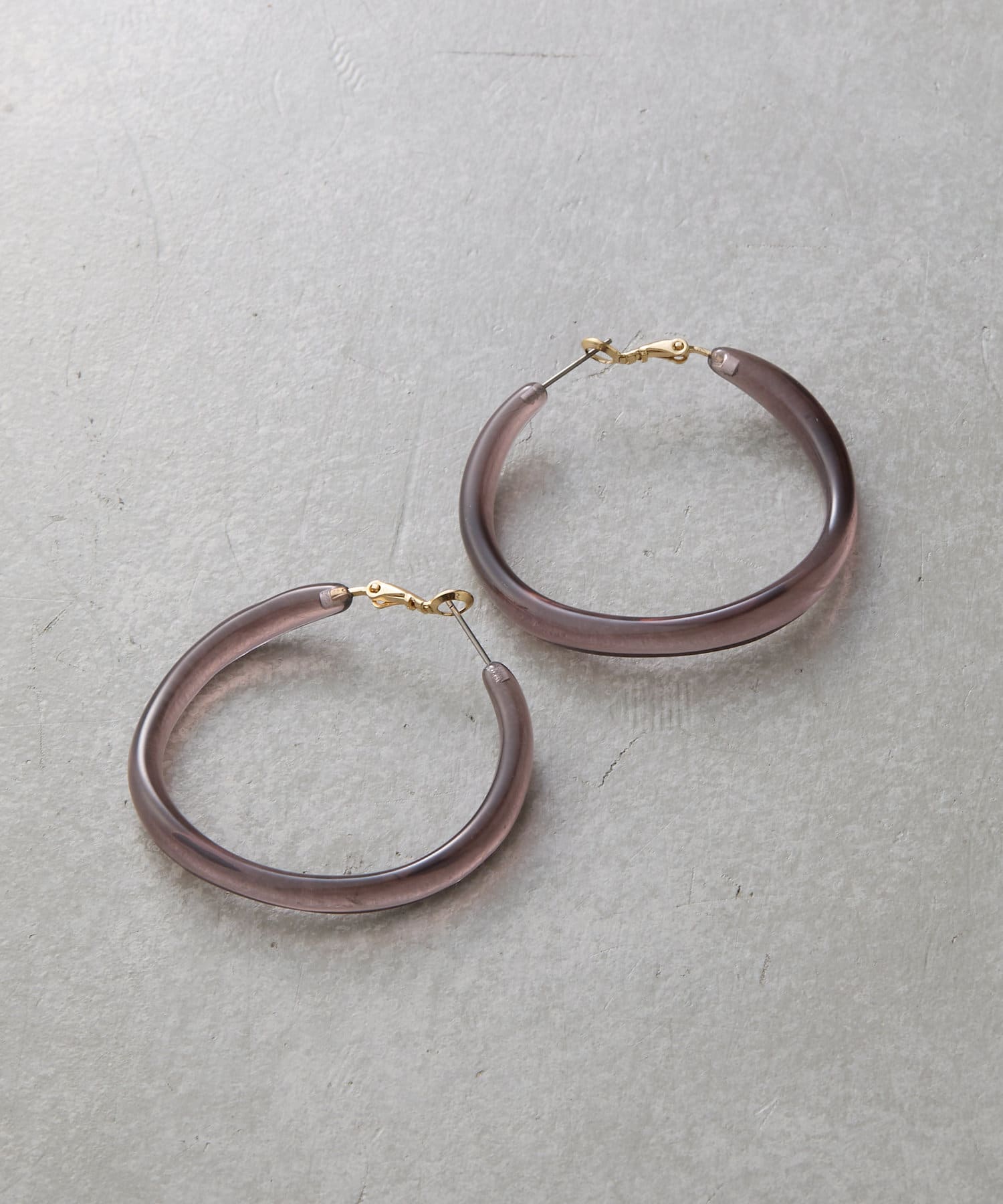 しなやかなラインの大ぶりなフープピアスは透け感のあるカラーリングが魅力的なデザイン。