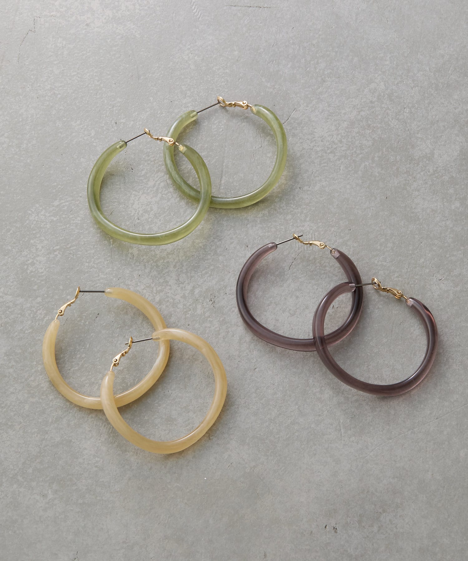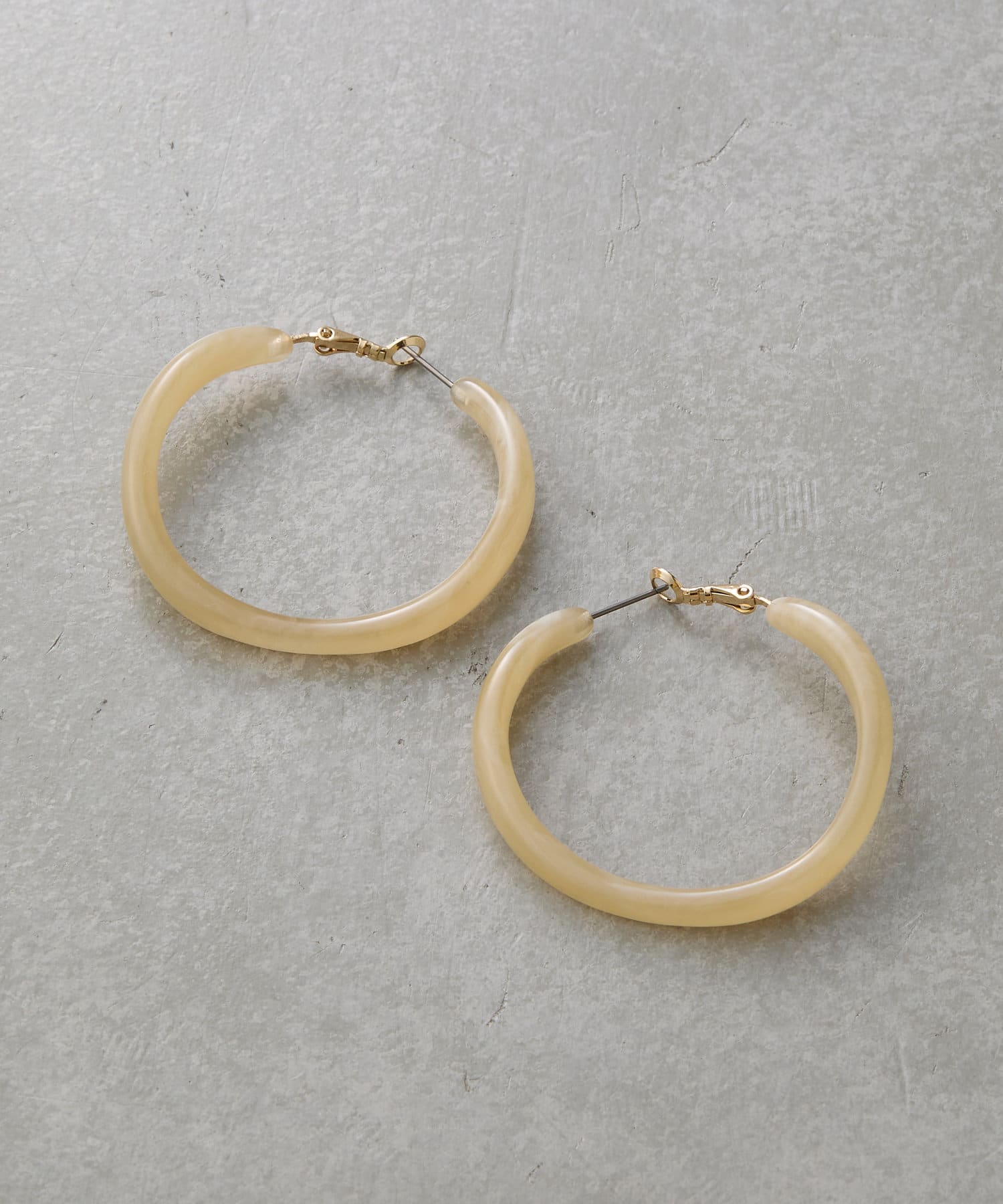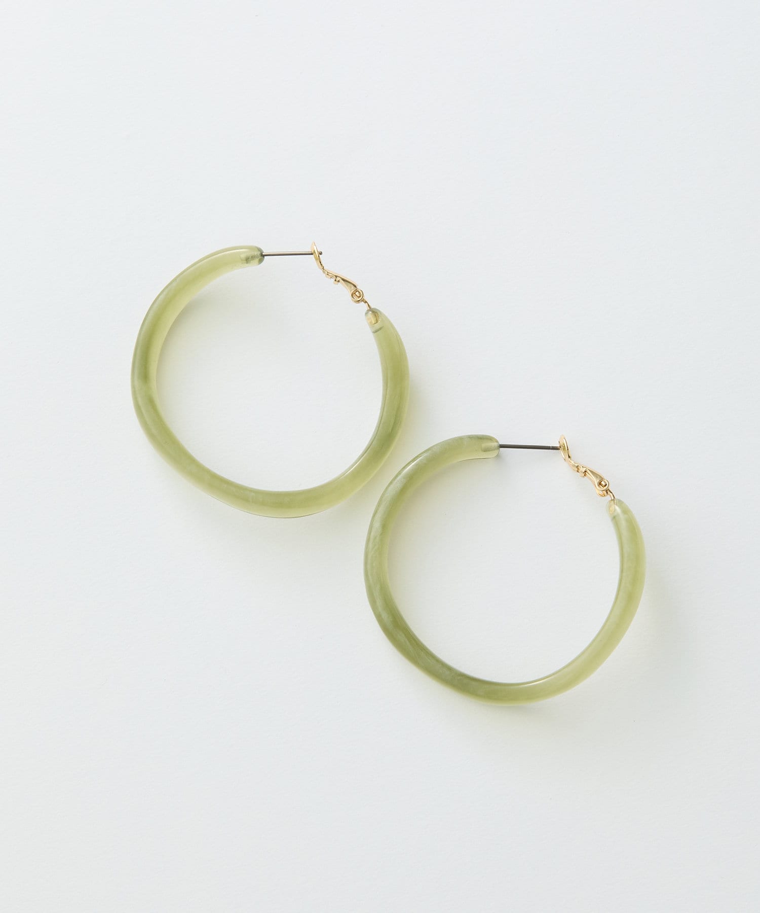 しなやかなラインの大ぶりなフープピアスは透け感のあるカラーリングが魅力的なデザイン。