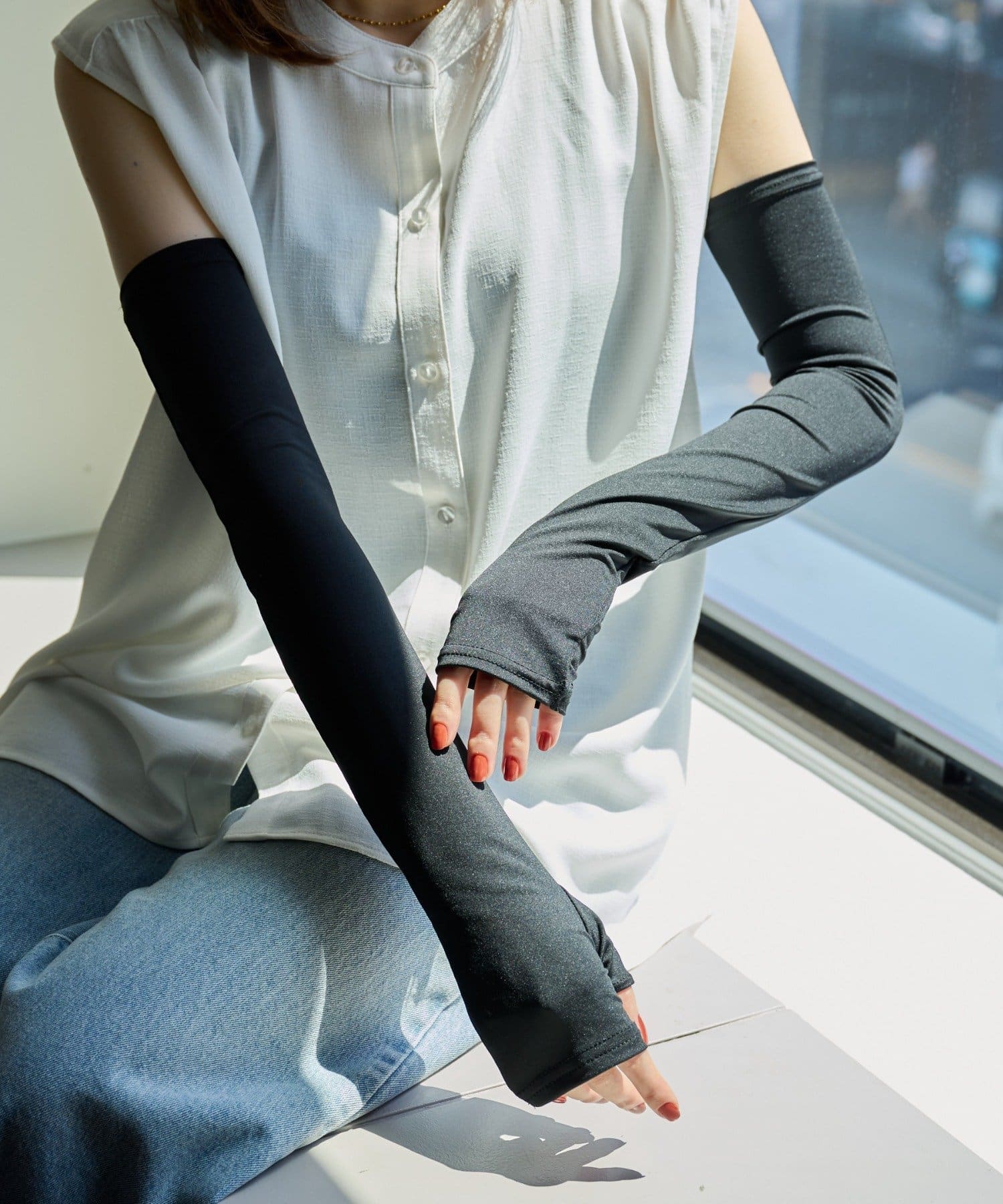 紫外線が強くなる季節も指先長め設計で手の甲から肘上までしっかりカバー。