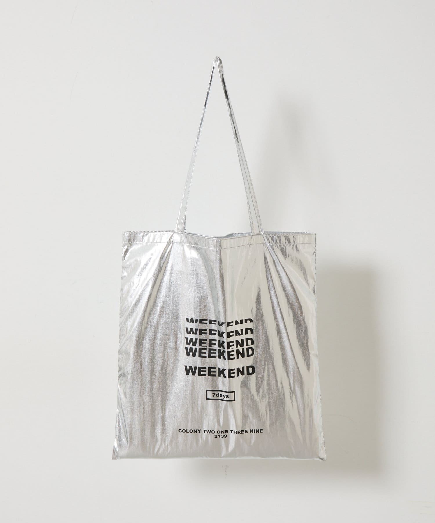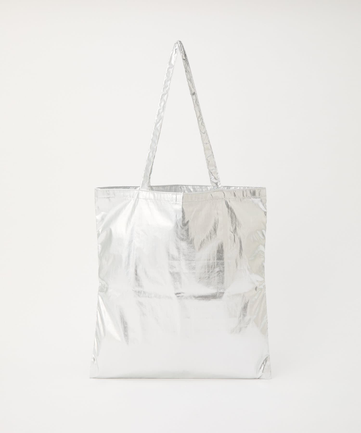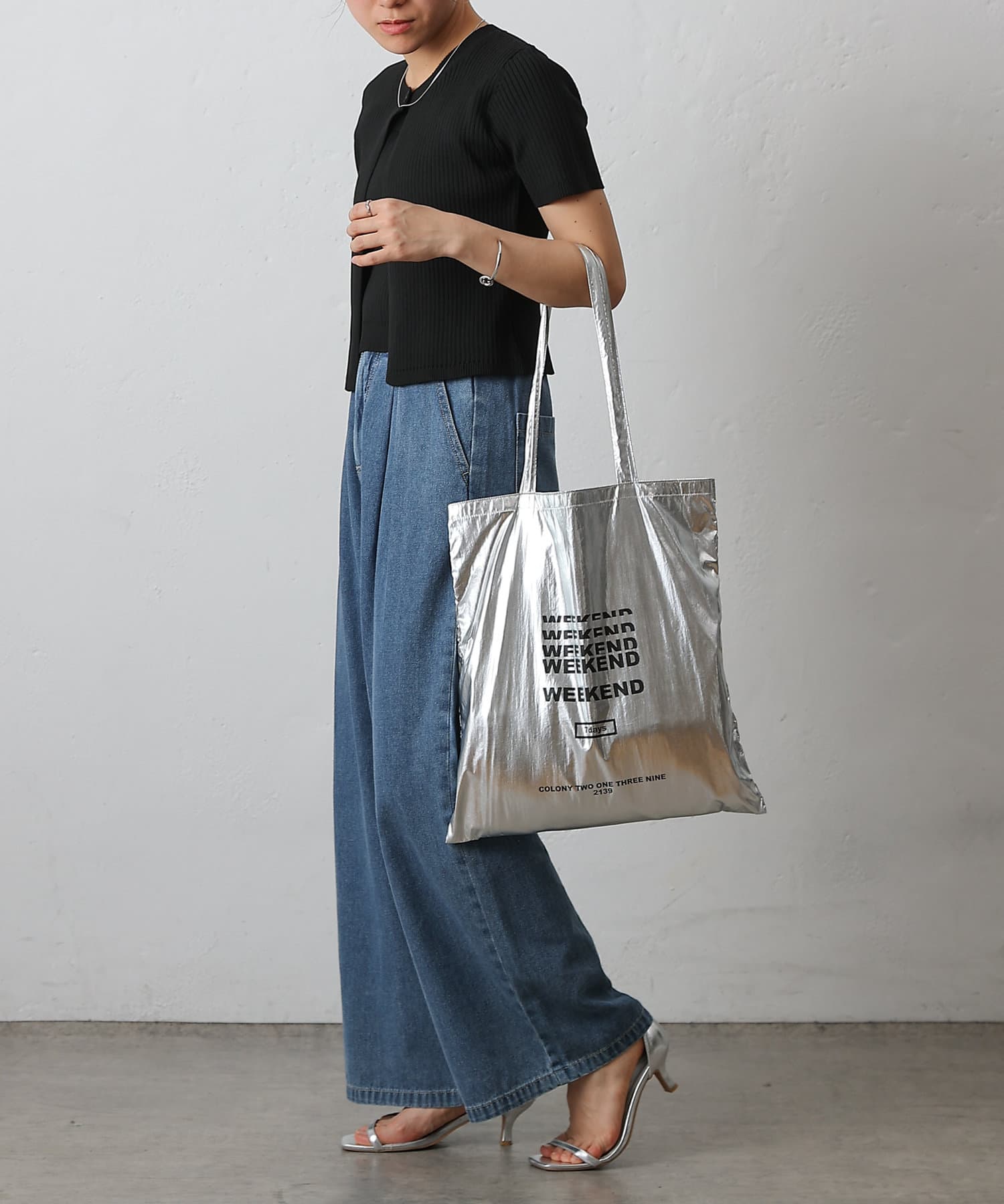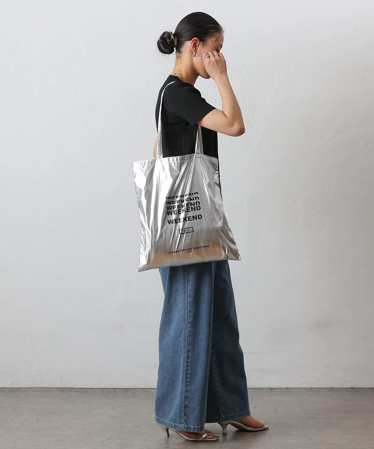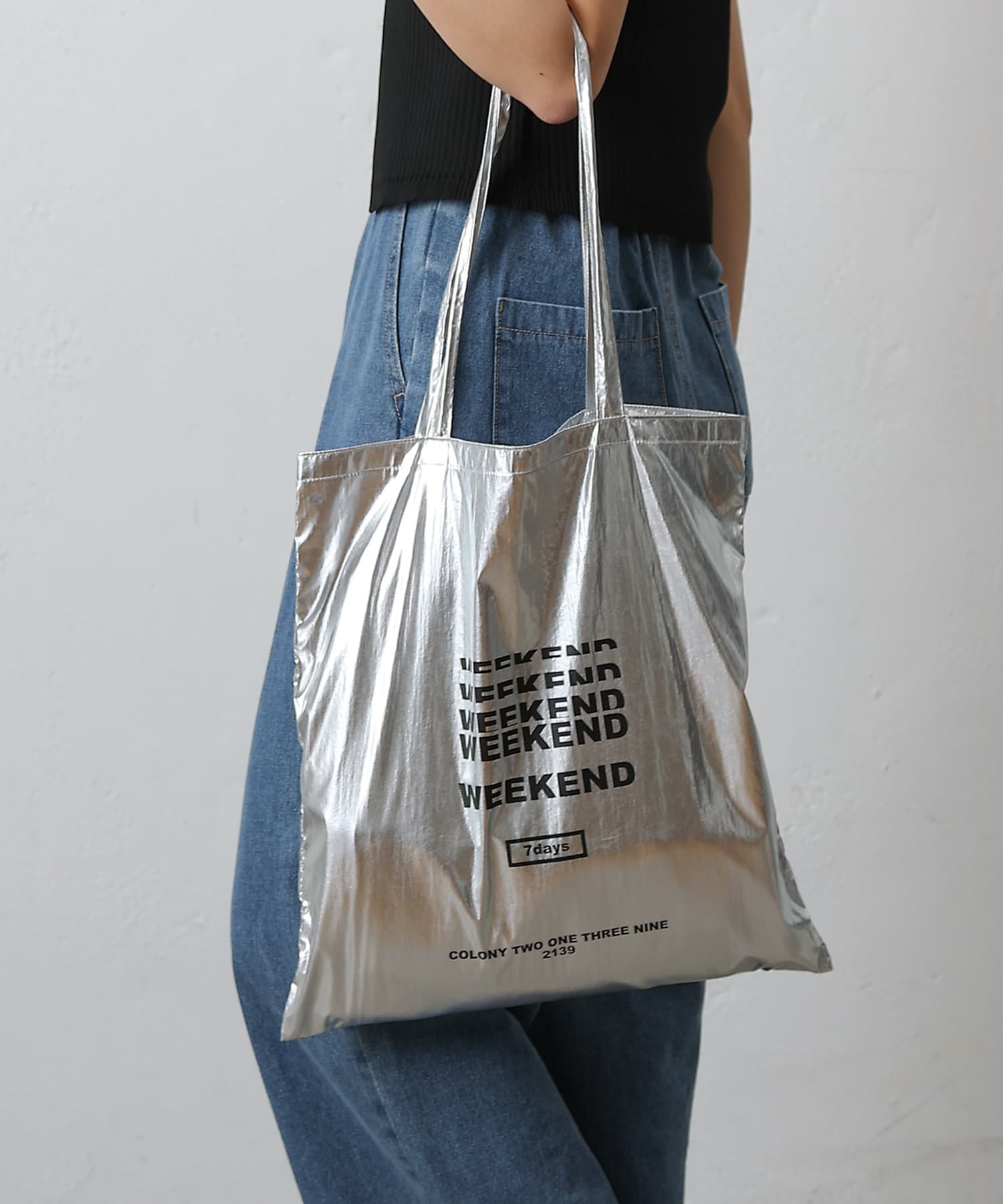 特別なカラーで特別な週末をたのしむような、存在感のあるシルバーが目を引くトートバッグ