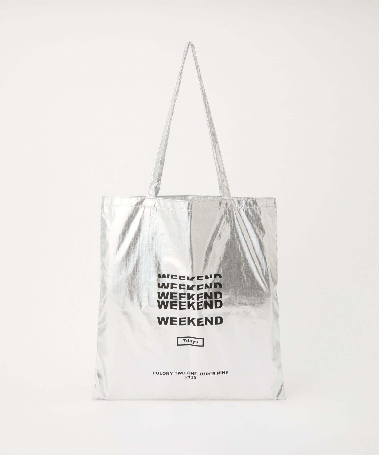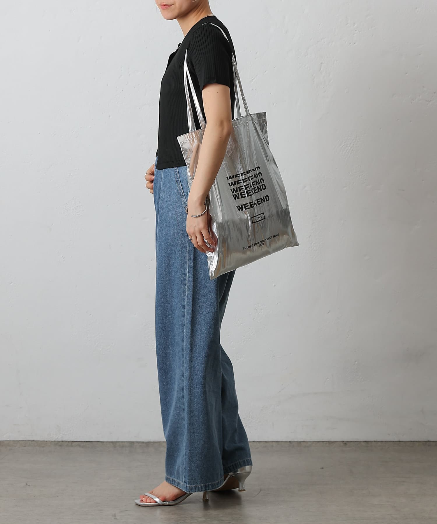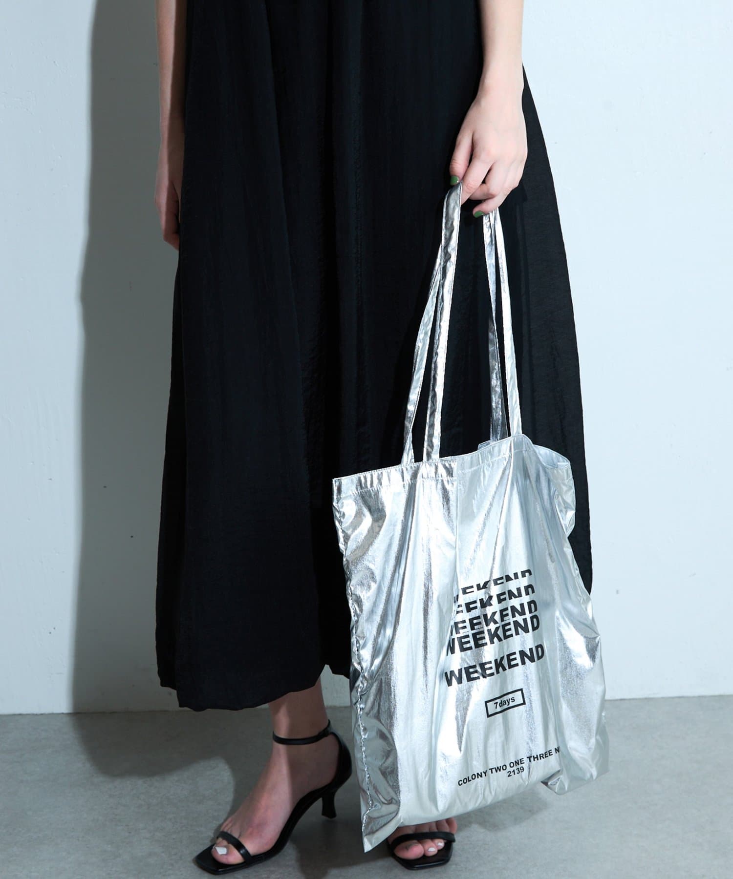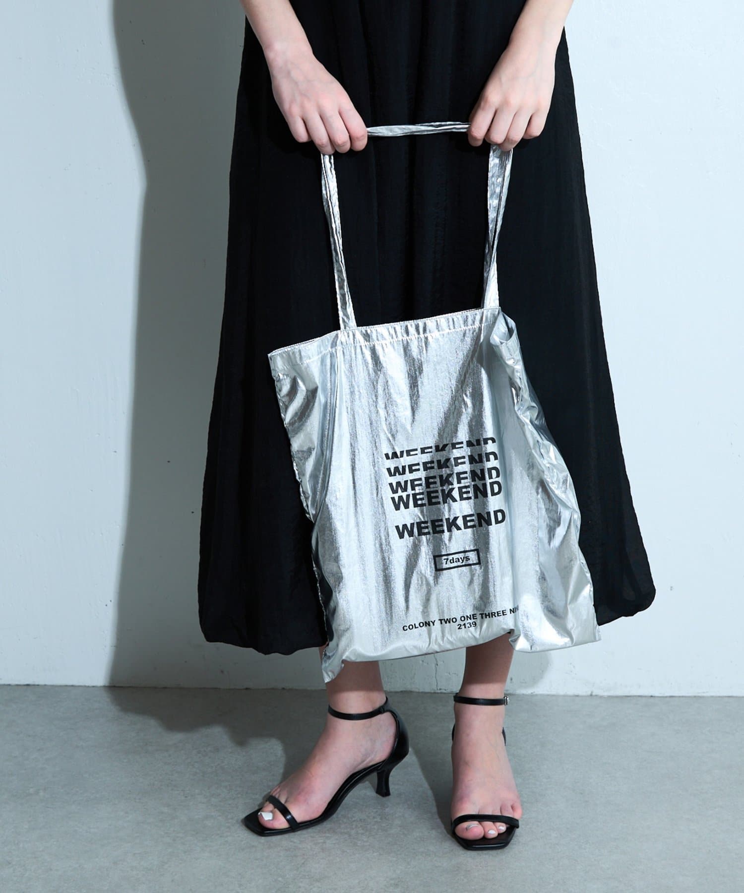 特別なカラーで特別な週末をたのしむような、存在感のあるシルバーが目を引くトートバッグ
