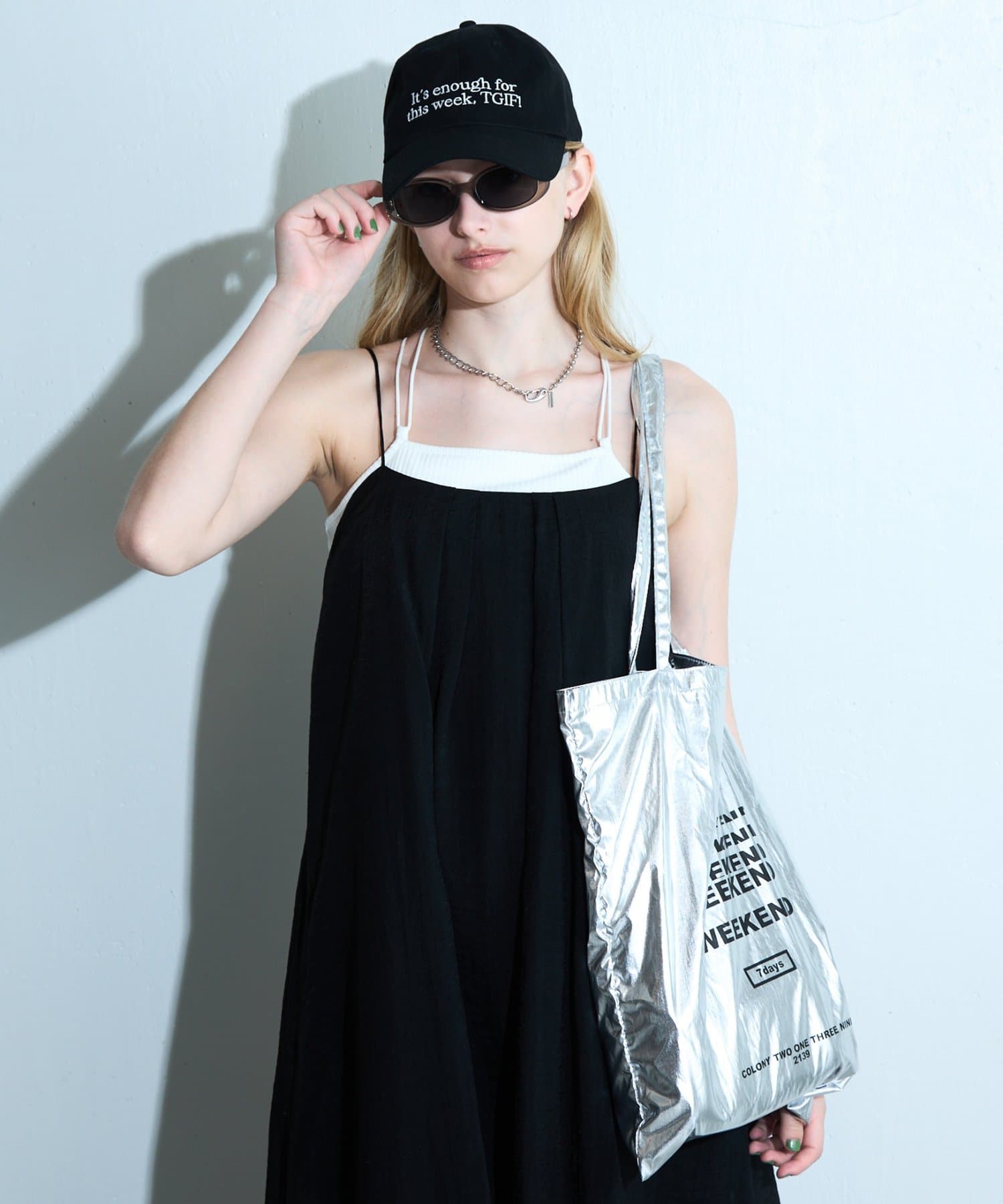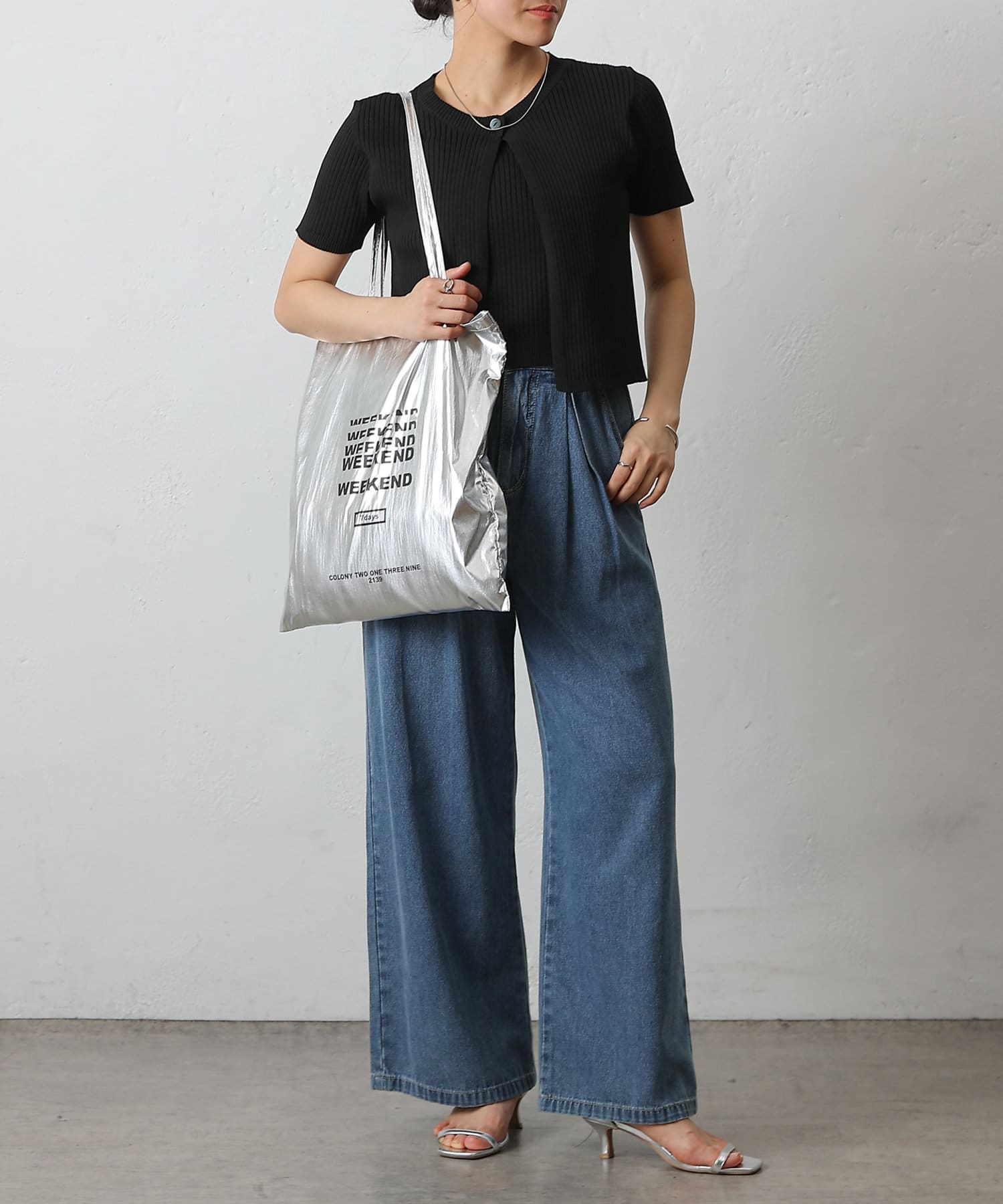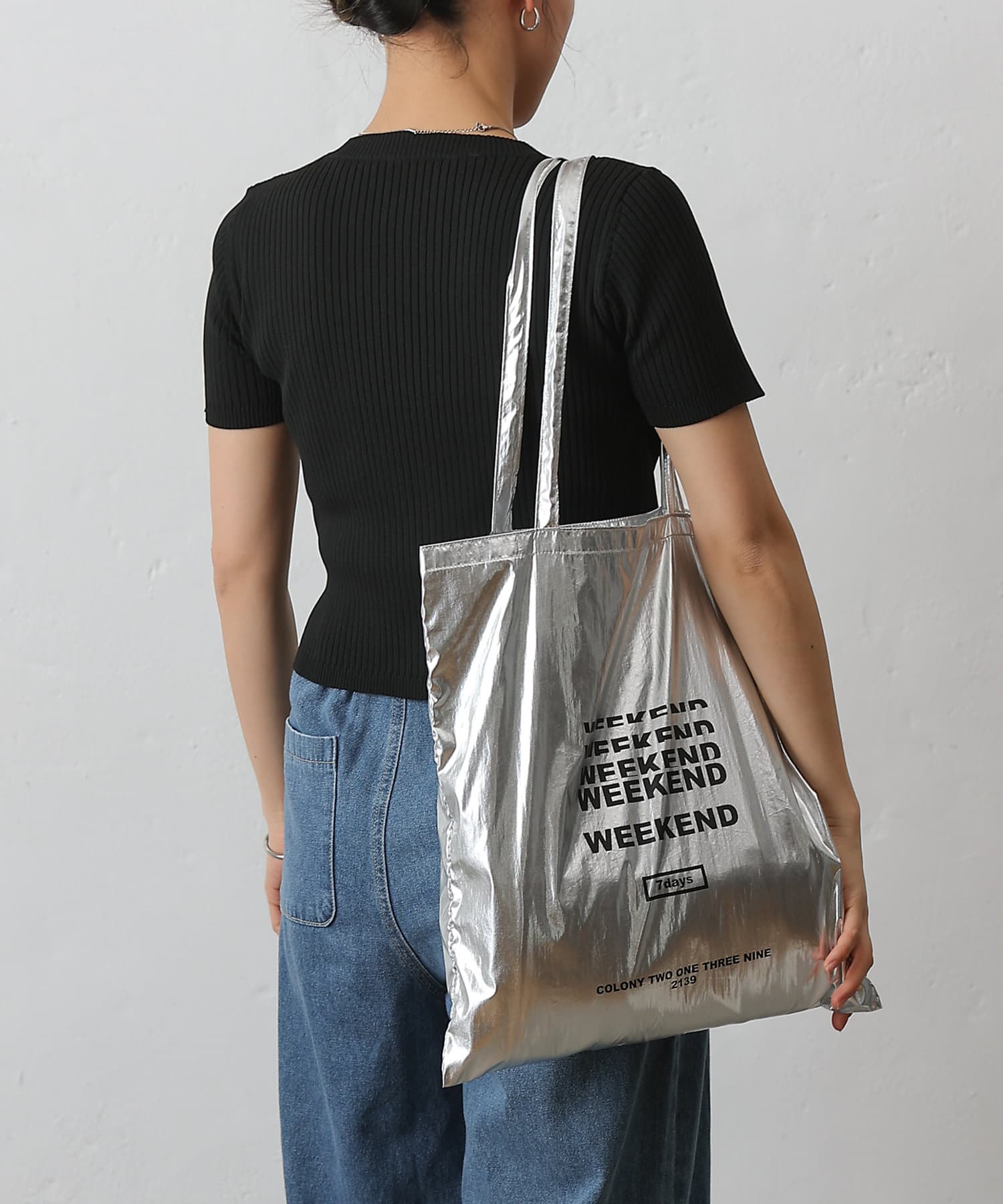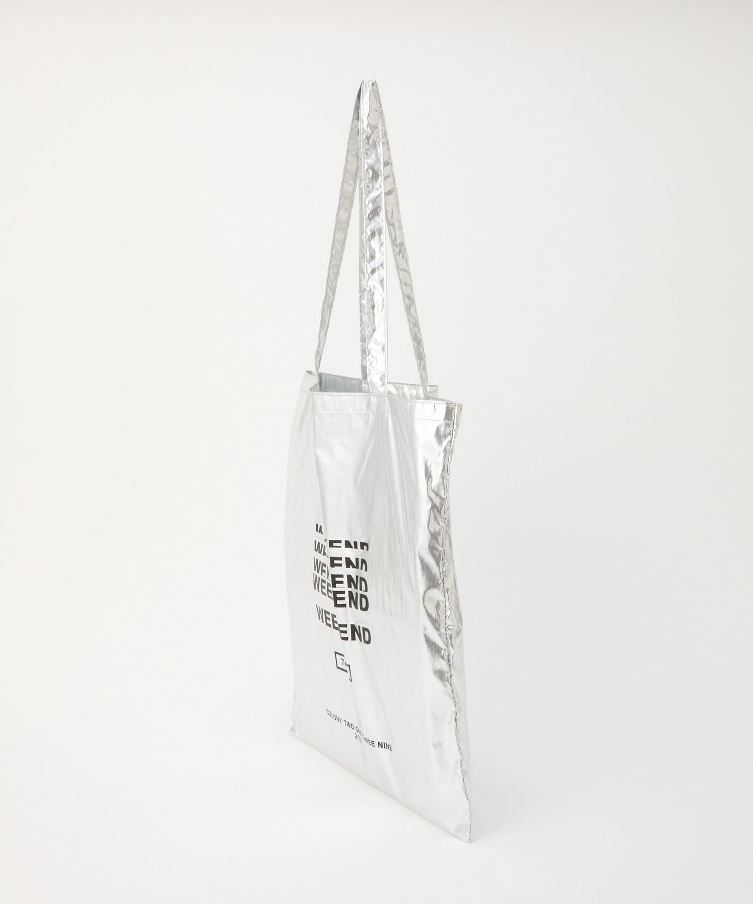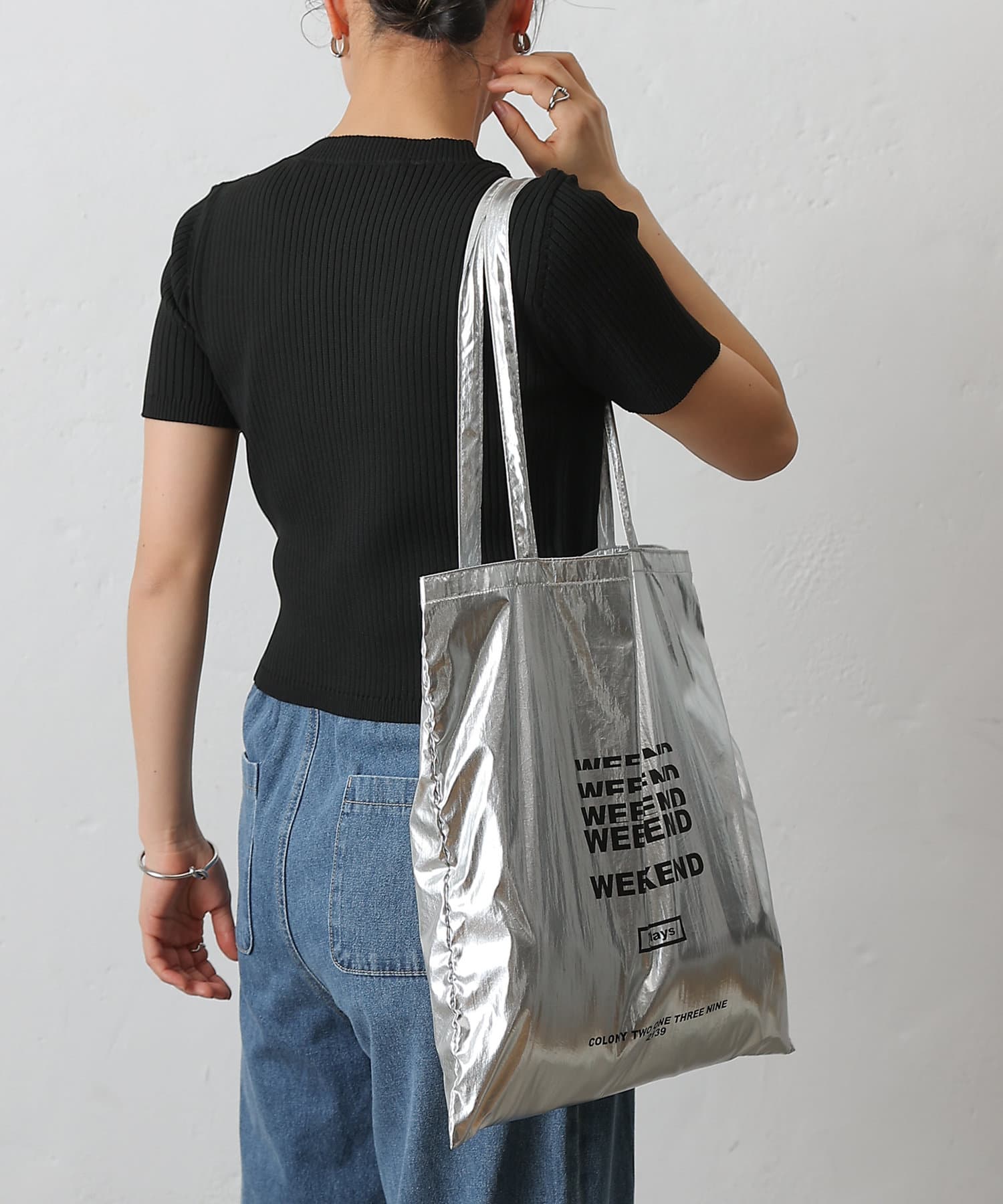 特別なカラーで特別な週末をたのしむような、存在感のあるシルバーが目を引くトートバッグ