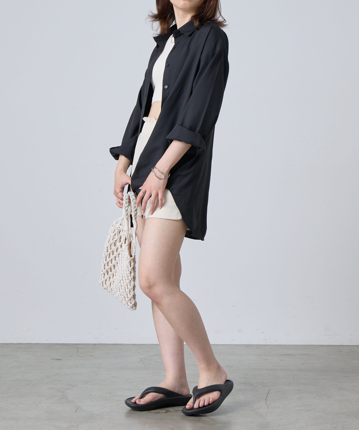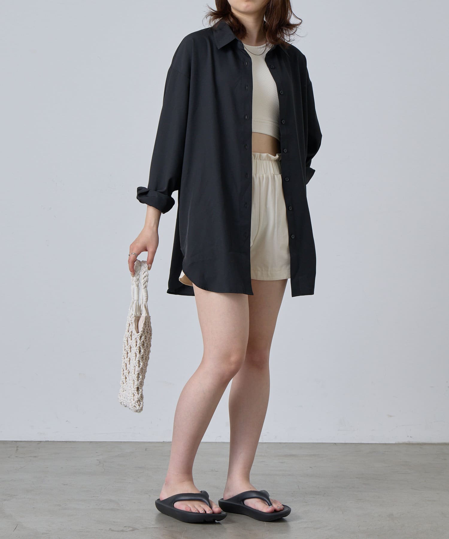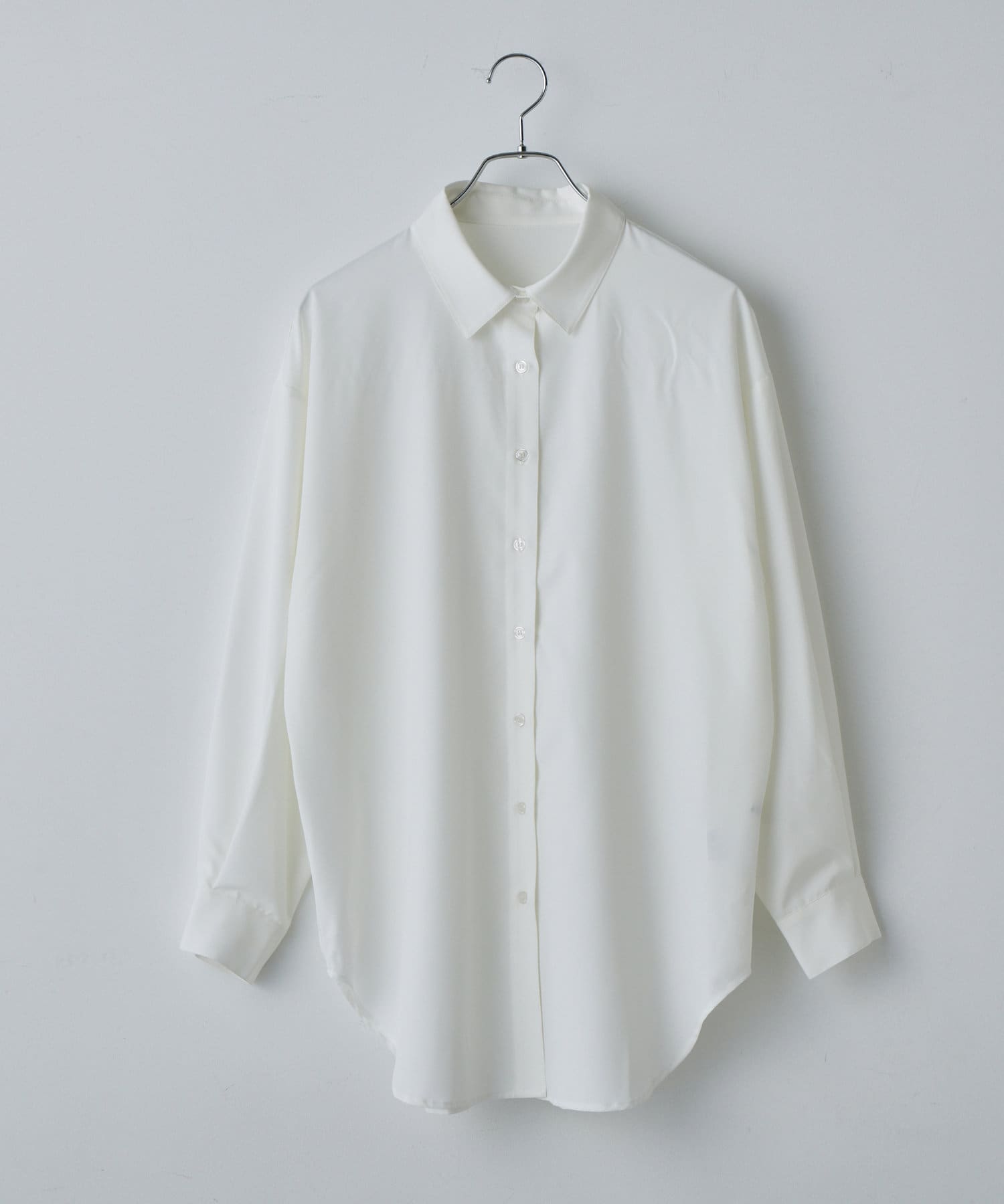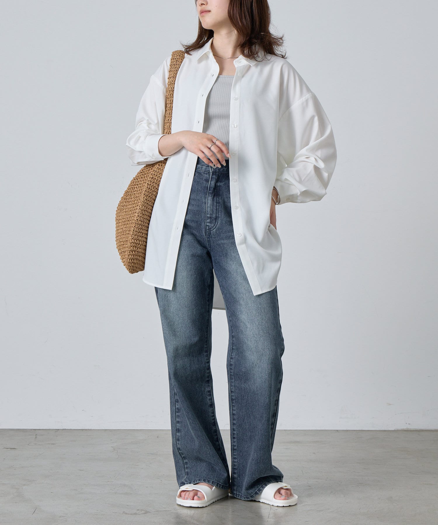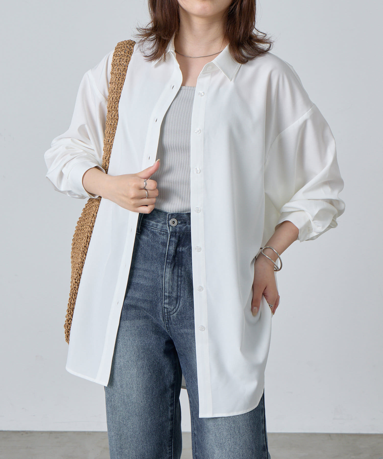 シャープな見た目なのにゆるいシャツは羽織りアイテムとしてもこれからの季節に欠かせないアイテム。