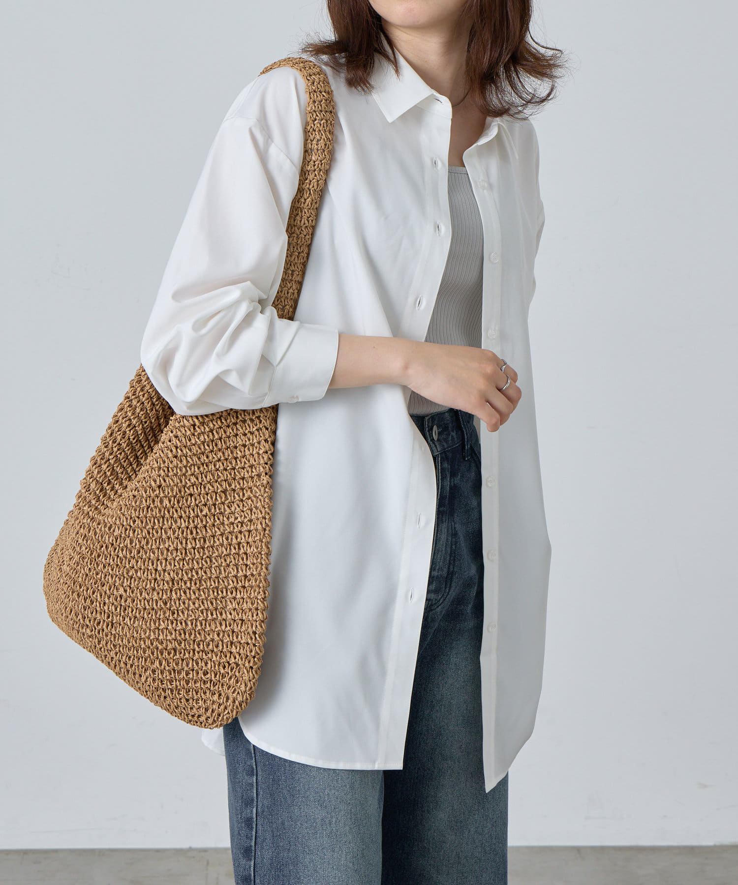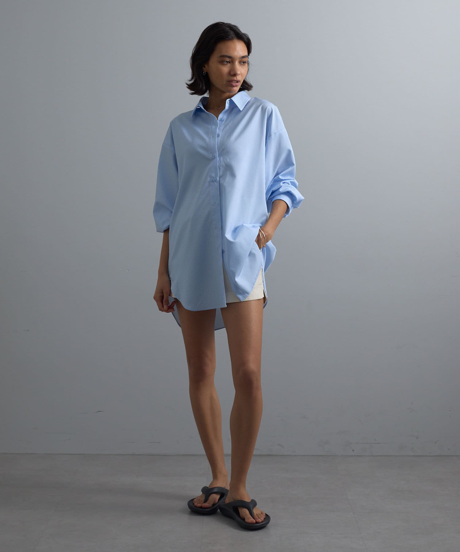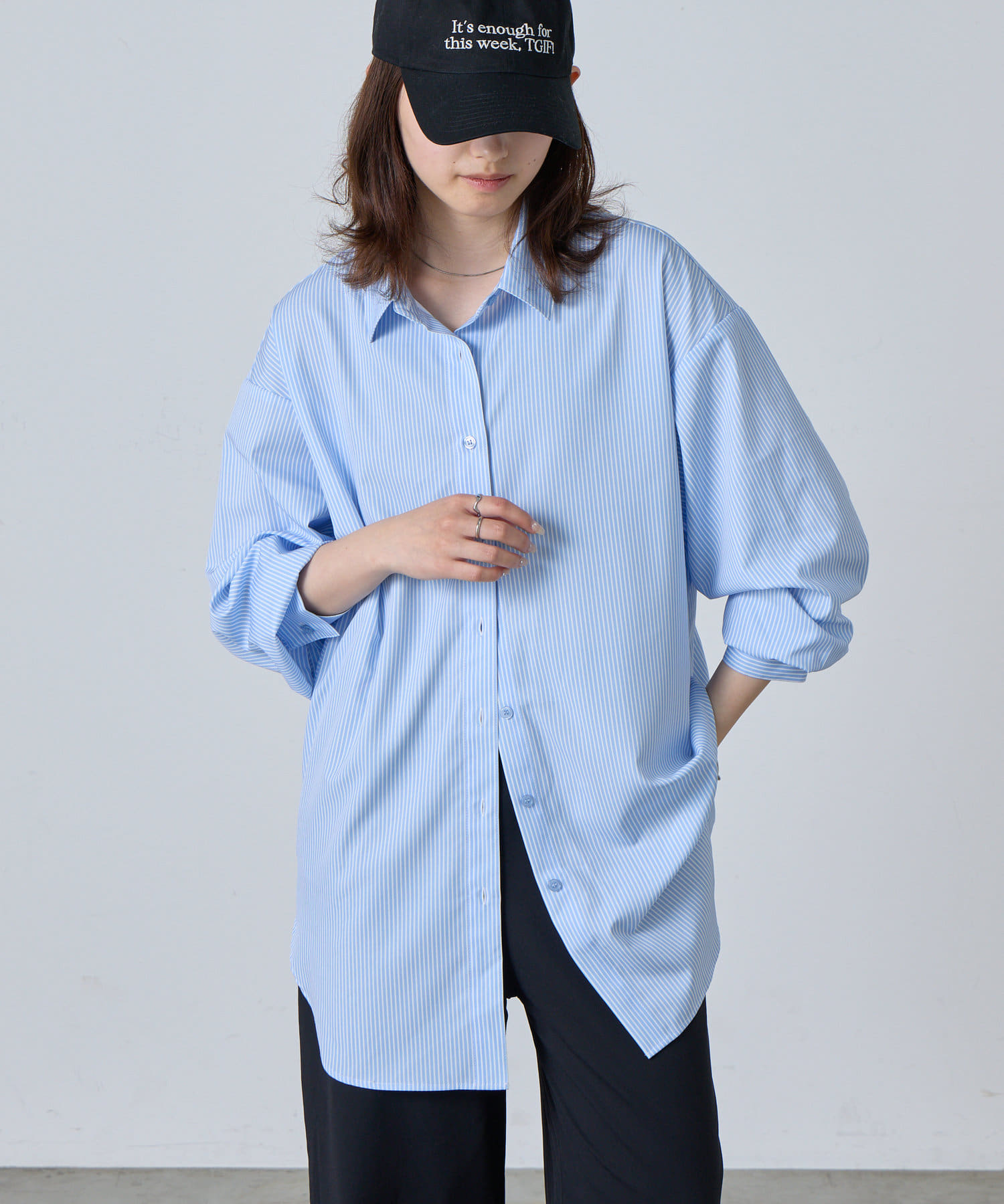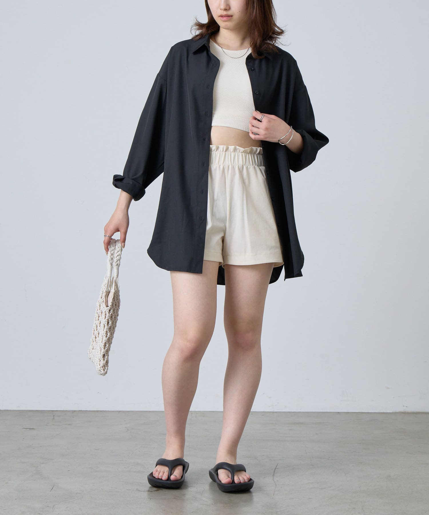 シャープな見た目なのにゆるいシャツは羽織りアイテムとしてもこれからの季節に欠かせないアイテム。