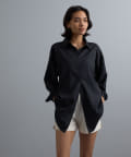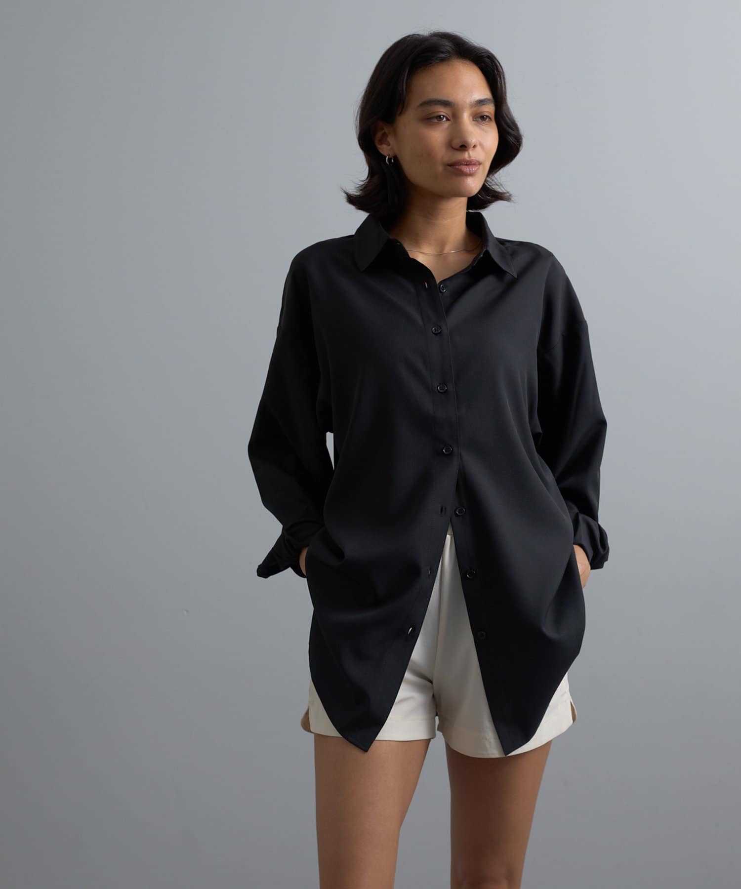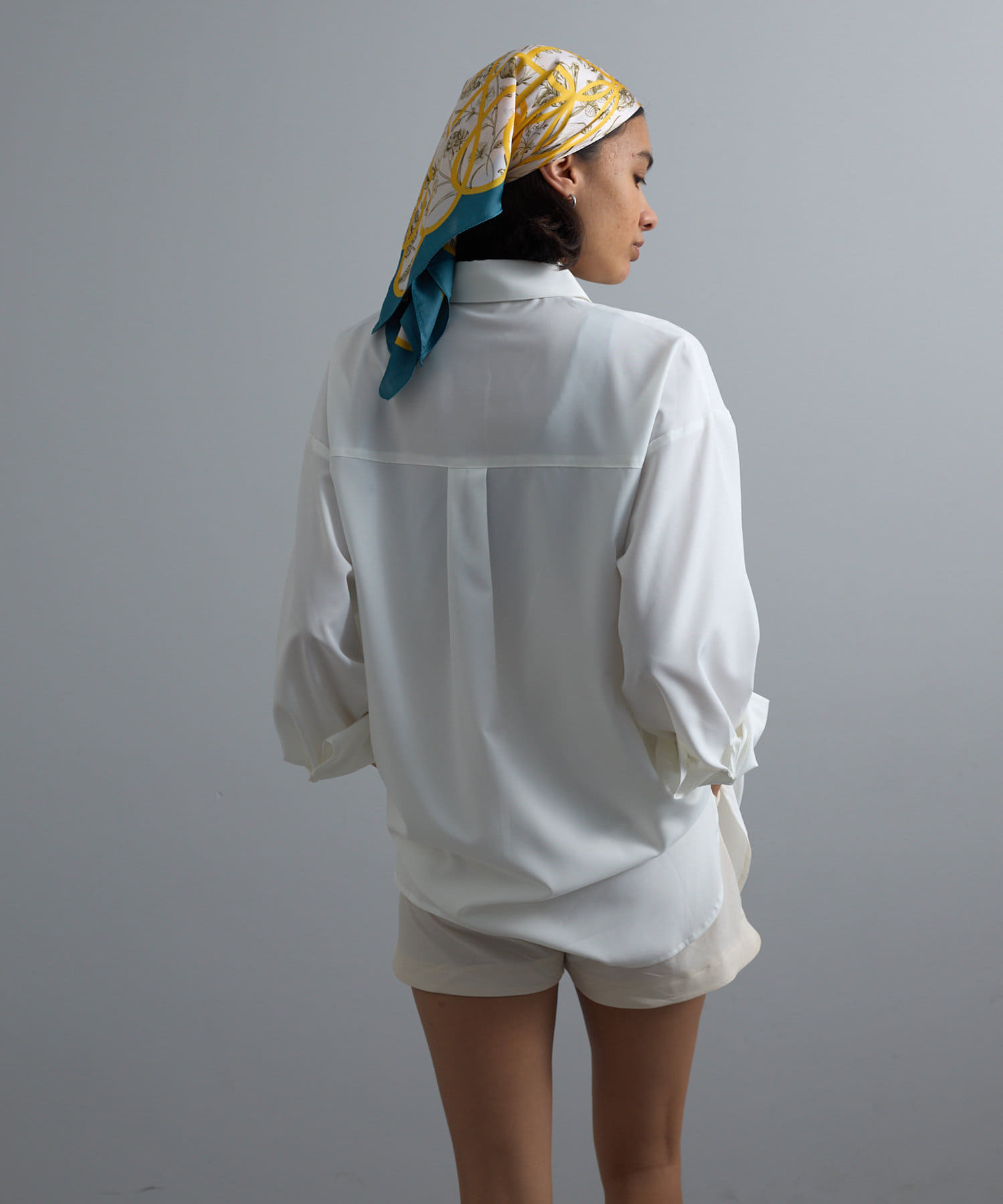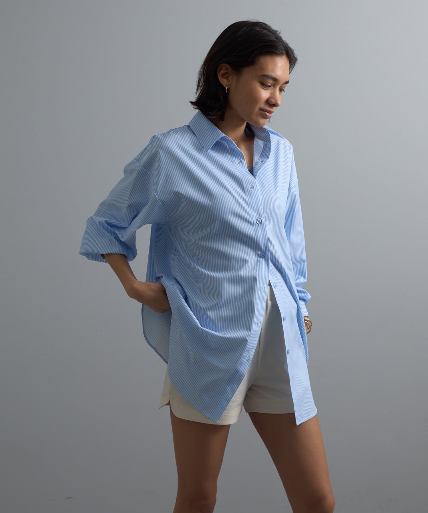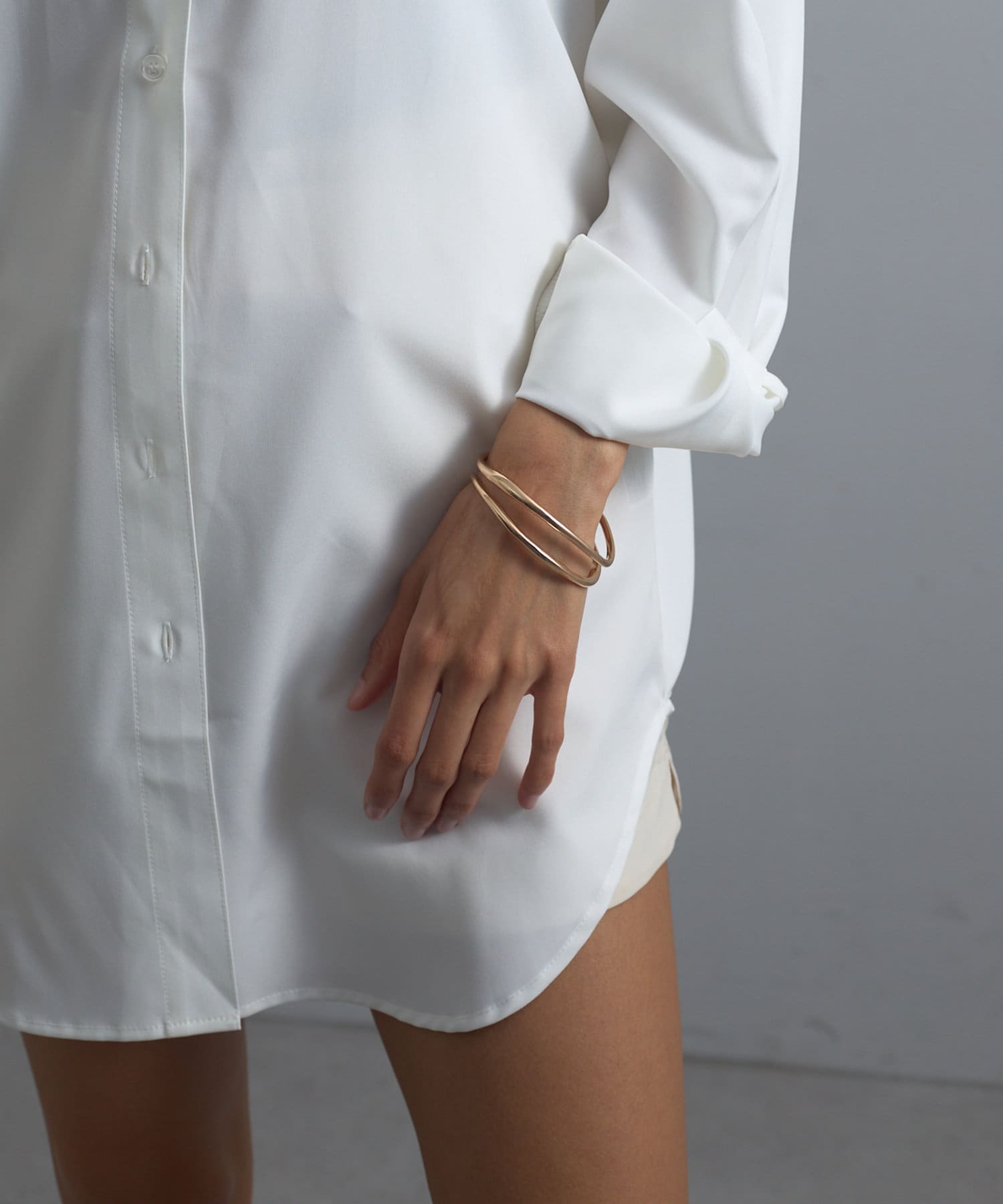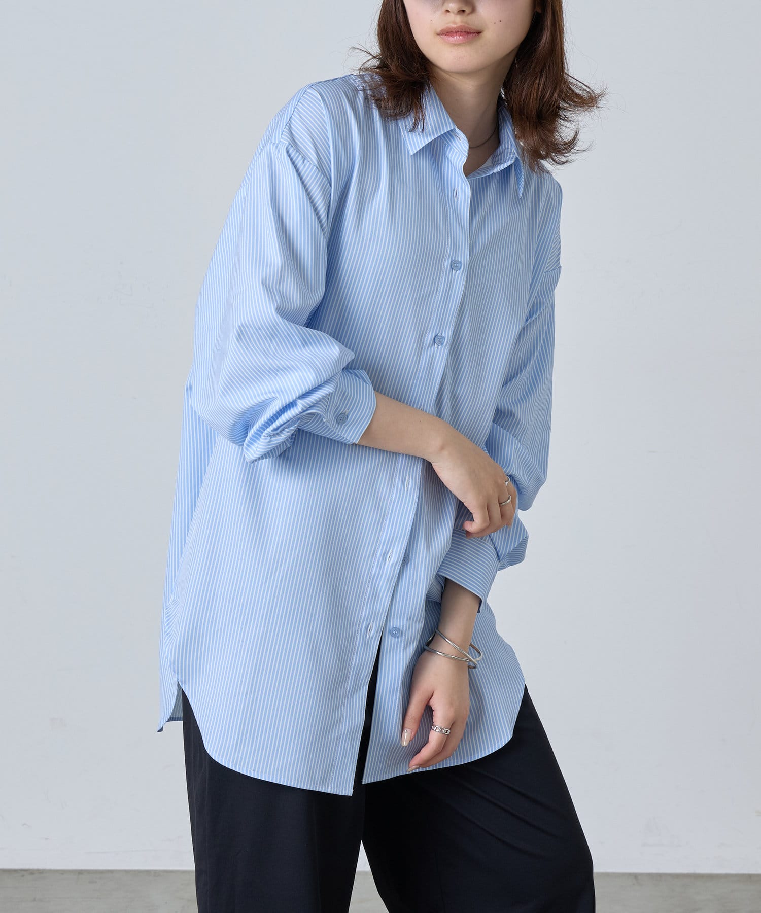 シャープな見た目なのにゆるいシャツは羽織りアイテムとしてもこれからの季節に欠かせないアイテム。