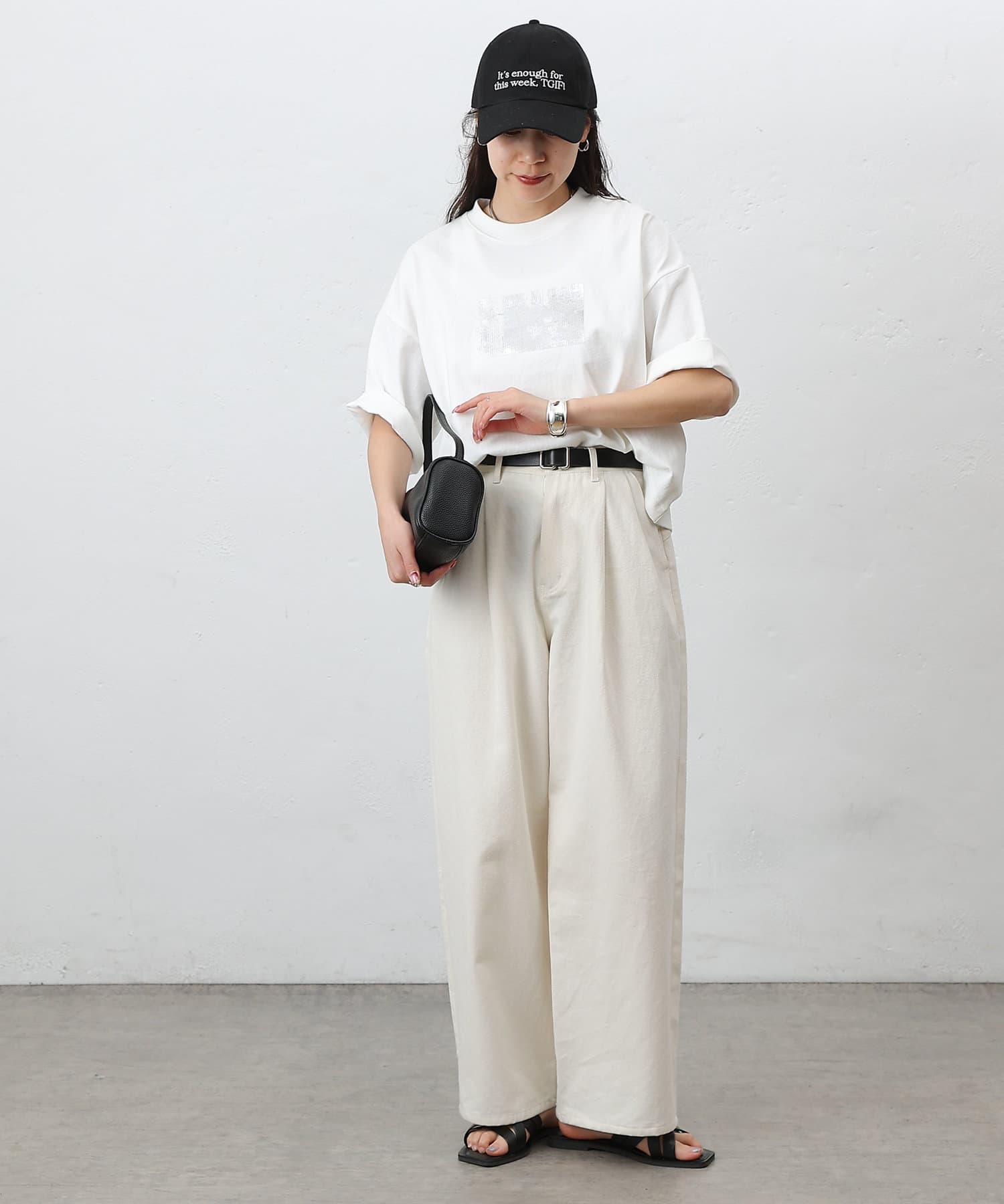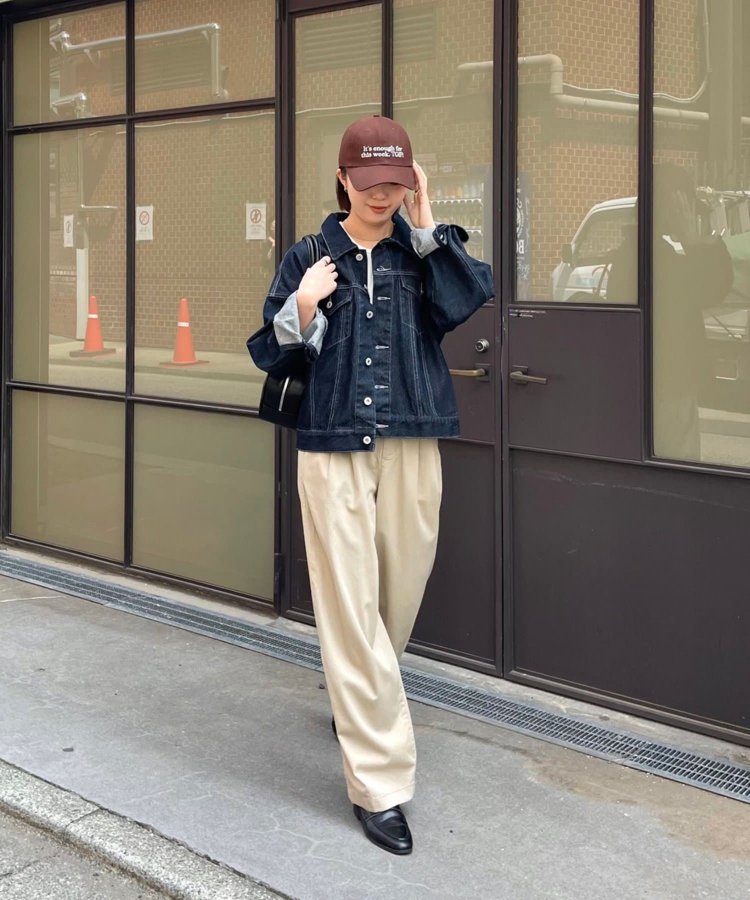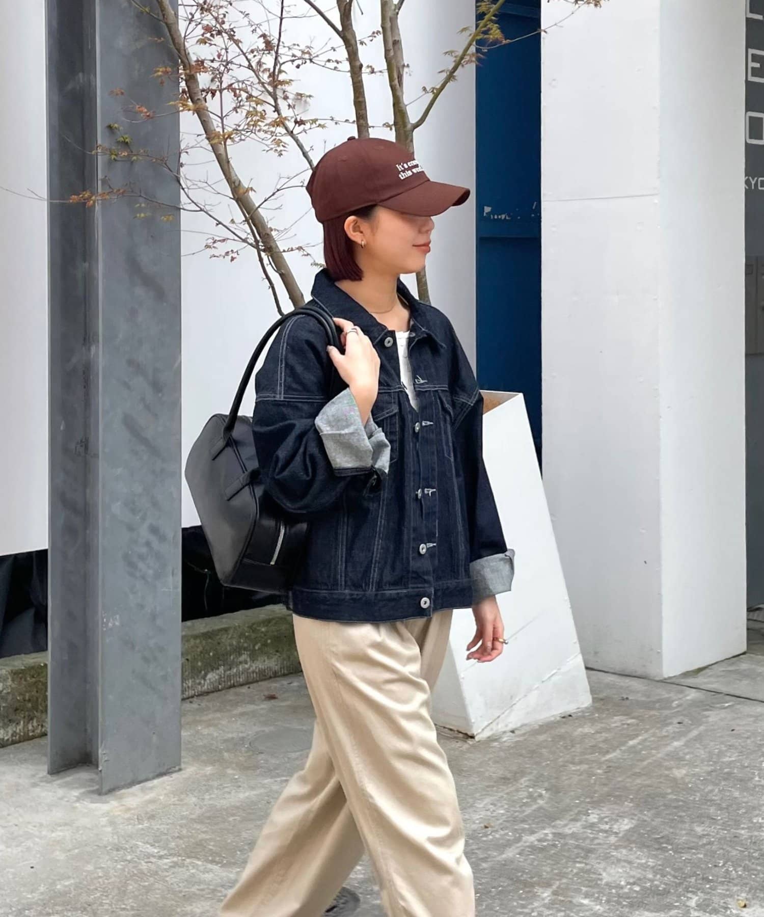 ・センターの大きめのロゴ刺繍がコーデのアクセントに