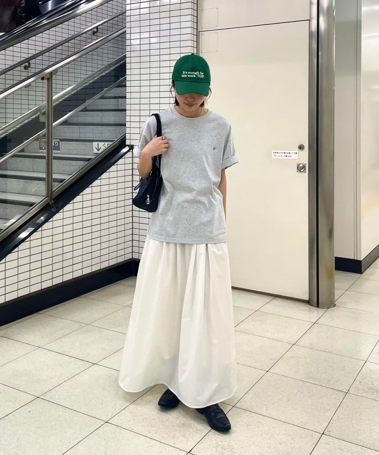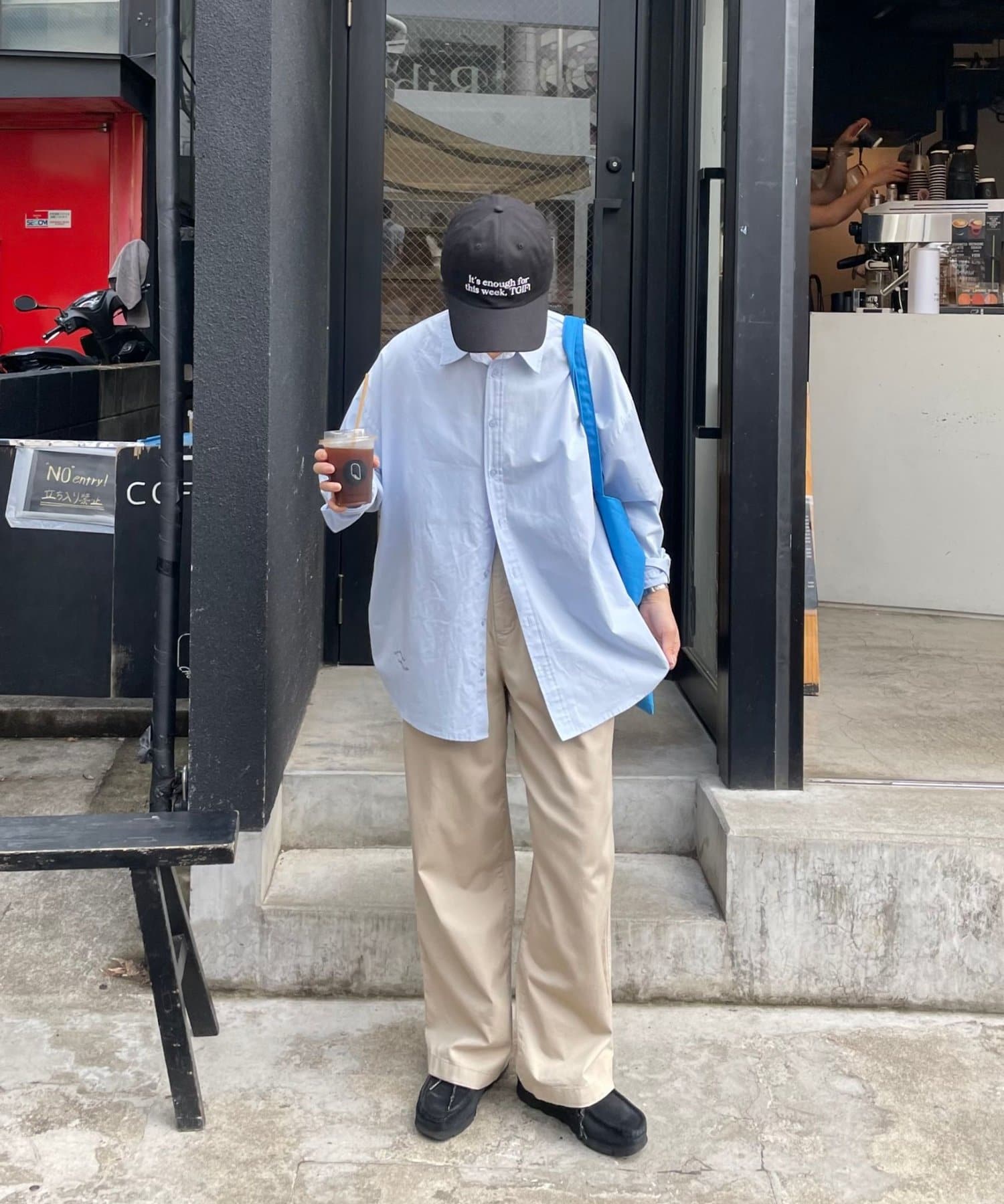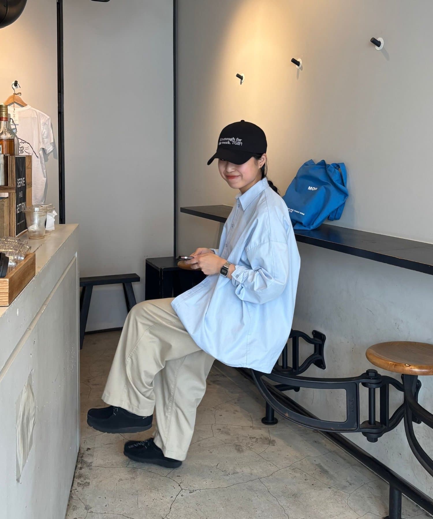 ・センターの大きめのロゴ刺繍がコーデのアクセントに