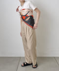 モノトーンと暖色系のカラーが織りなすデザインは、コーディネートに洗練された印象を与えます。